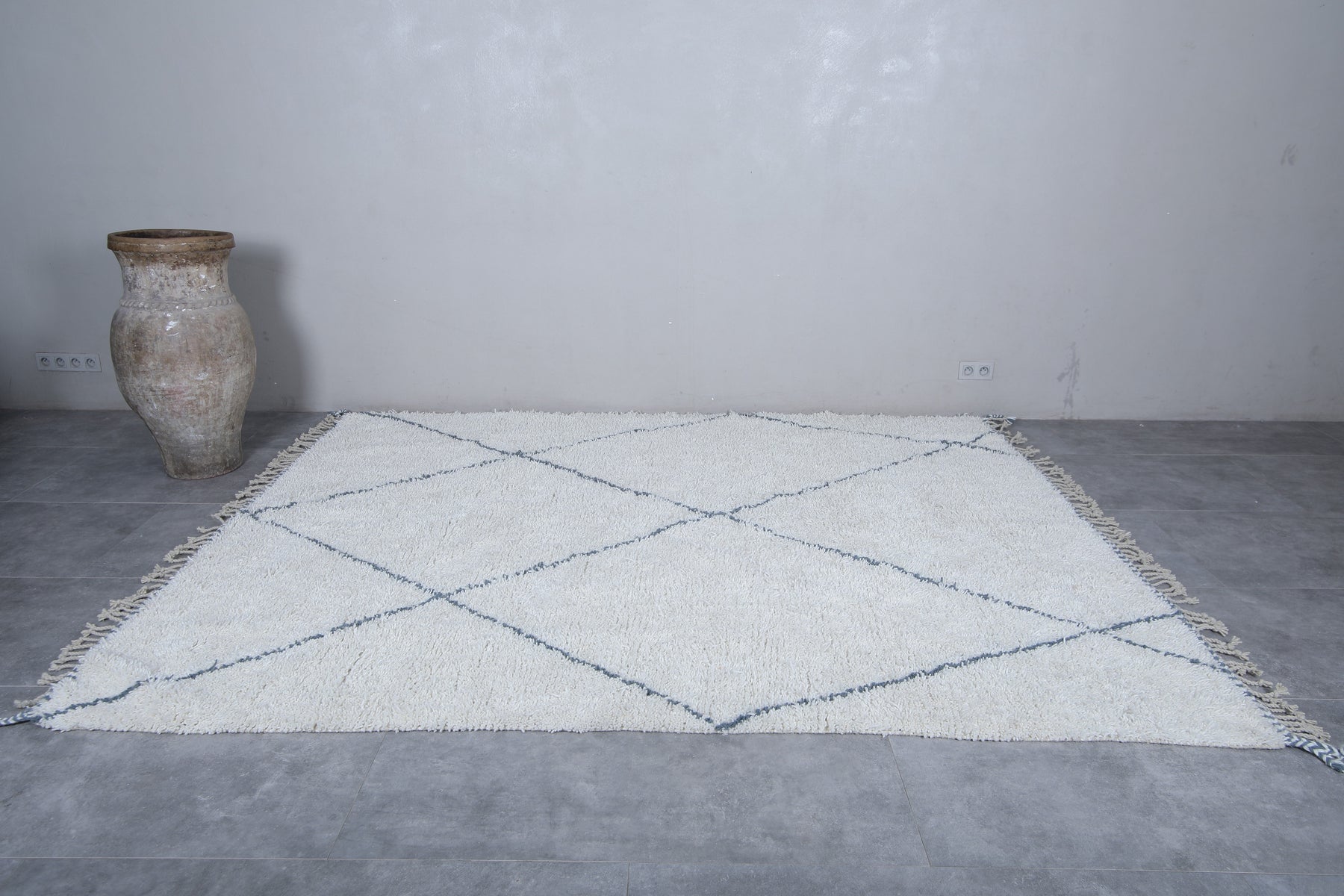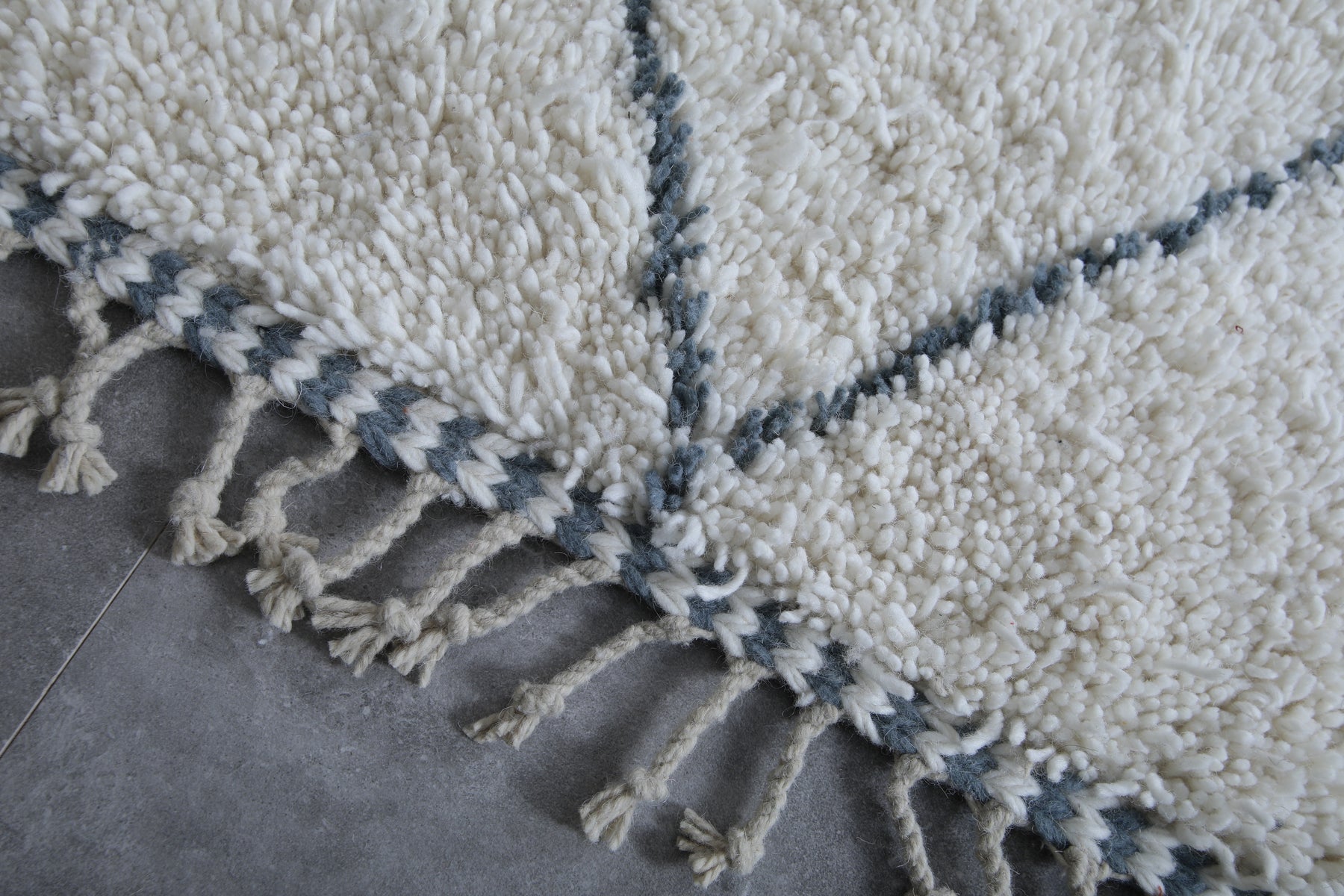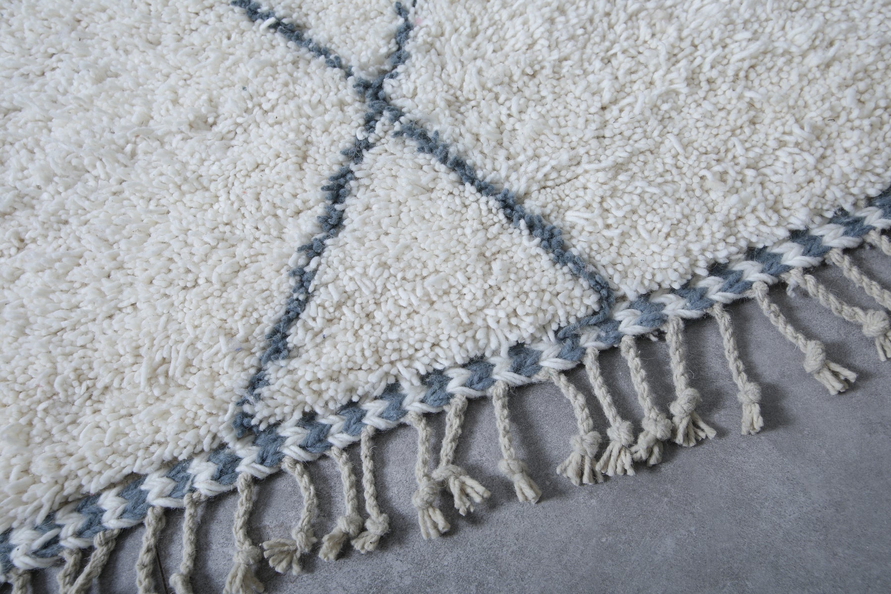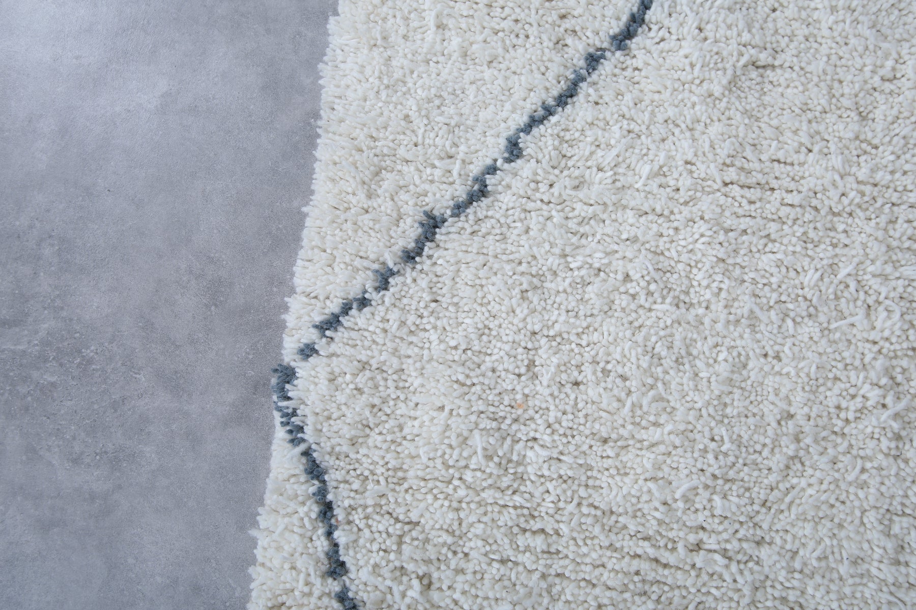 Add a touch of style to any room with this traditional Beni Ourain rug, made of 100% natural white wool and featuring a classic diamond pattern in grey. Beni Ourain rugs boast soft pile and minimalist geometric patterns, and that is why they are loved by so many in both modern and traditional interiors. Featuring clean lines and soft pile, this rug brings warmth, texture, and truly authentic Moroccan craftsmanship into any room, whether it's a cozy living space, a serene bedroom, or a setting with minimalist decor.