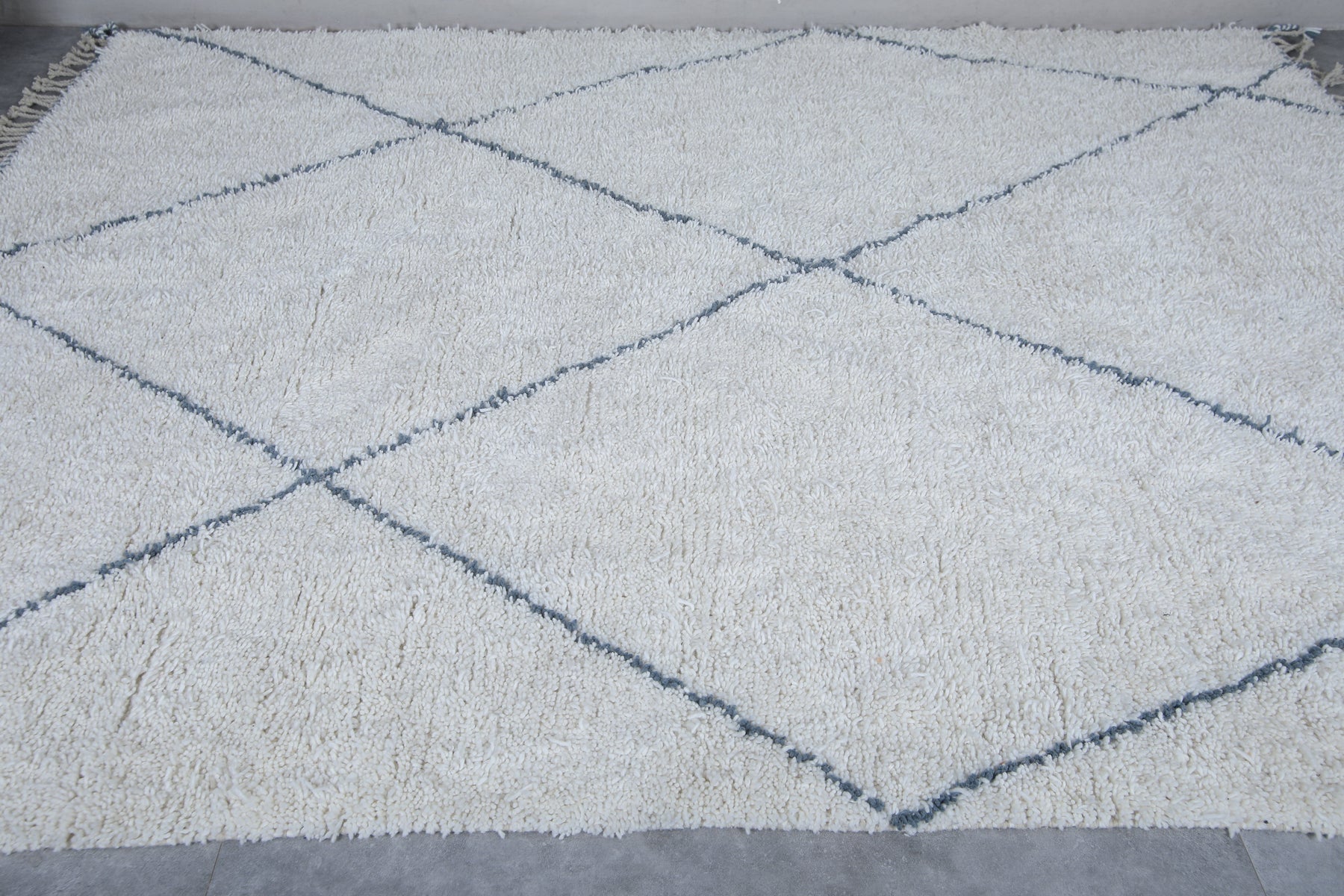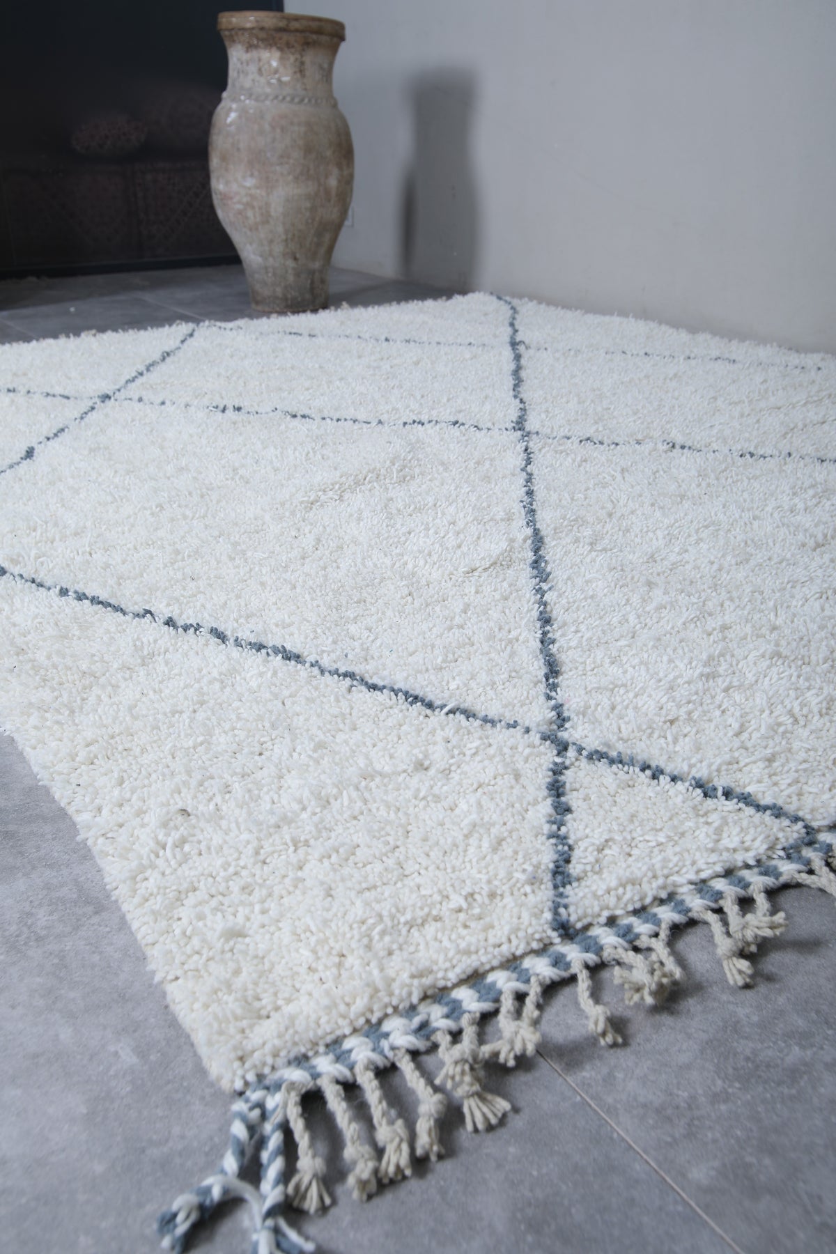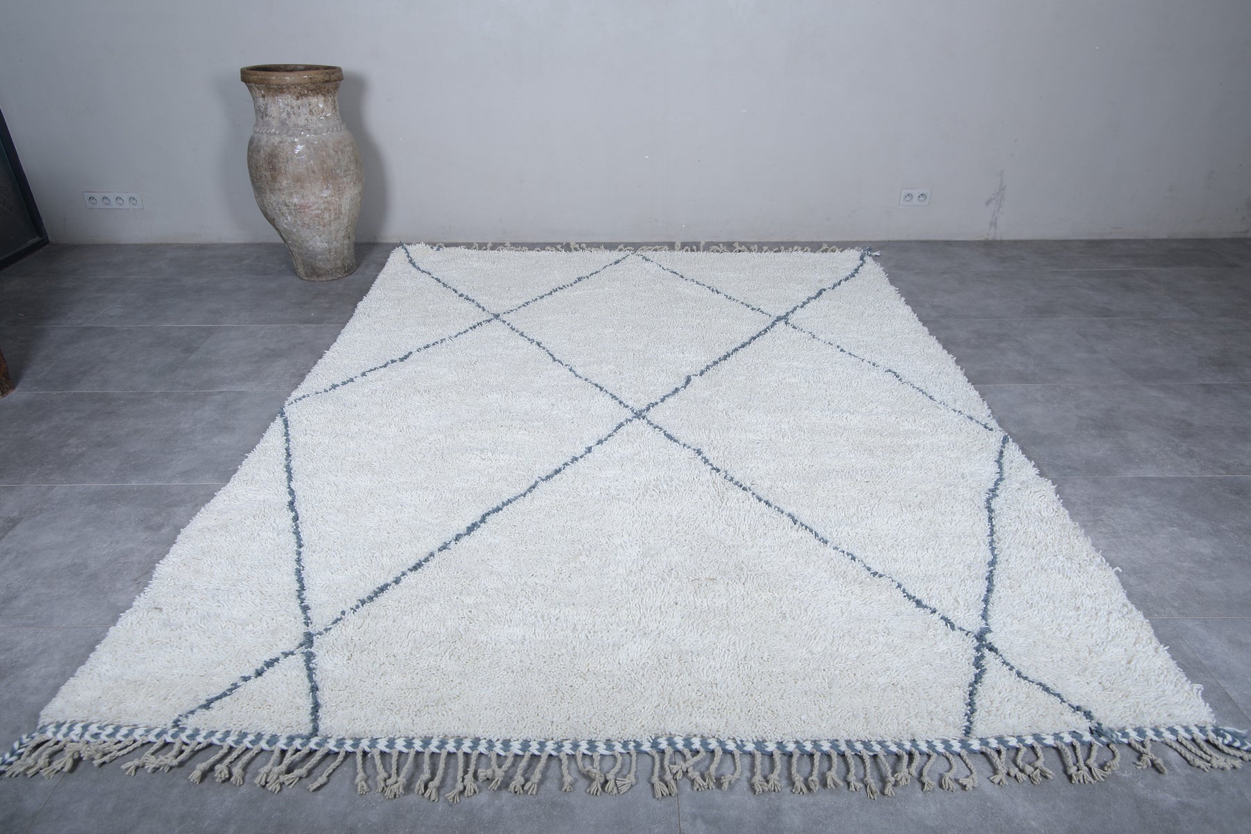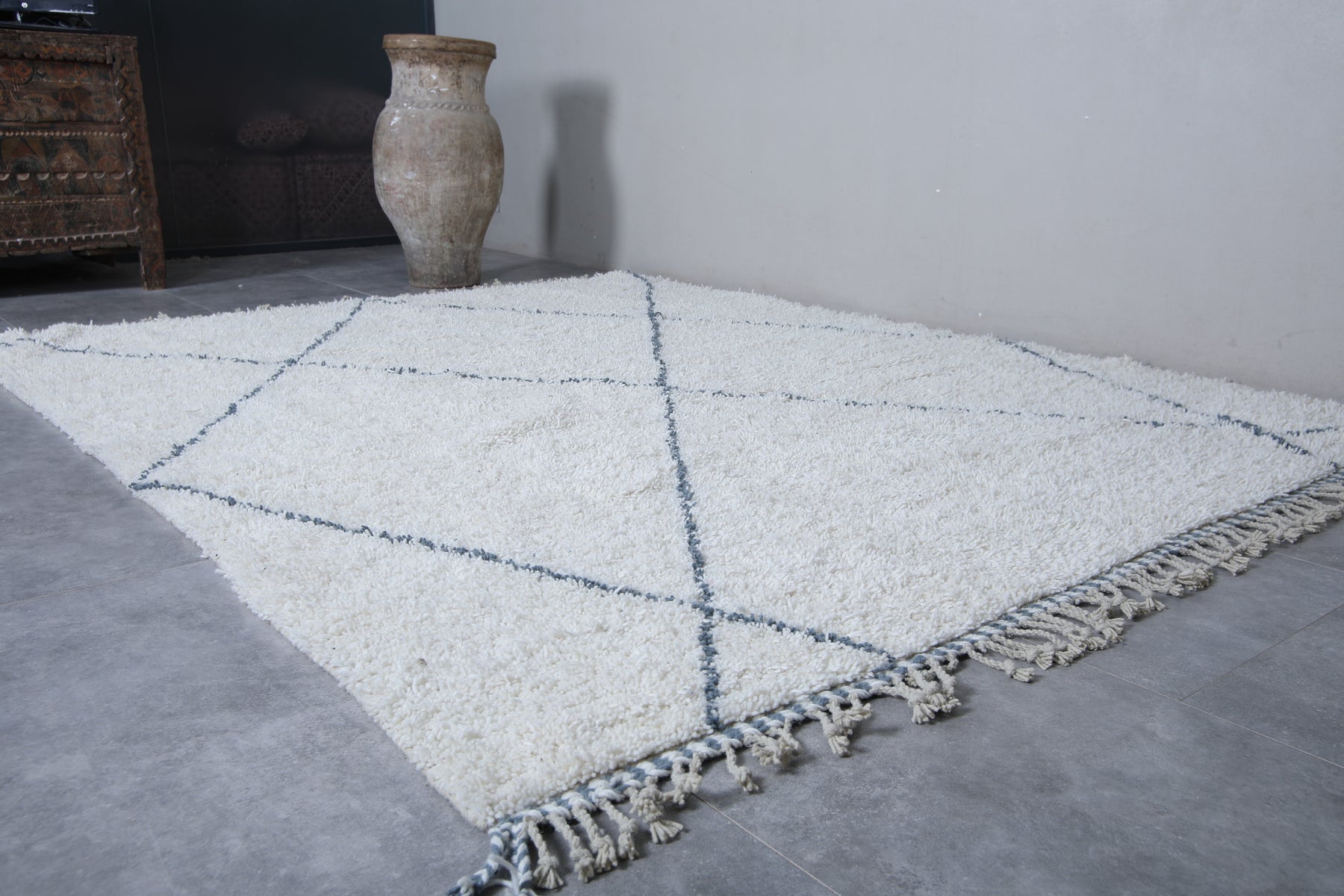 Add a touch of style to any room with this traditional Beni Ourain rug, made of 100% natural white wool and featuring a classic diamond pattern in grey. Beni Ourain rugs boast soft pile and minimalist geometric patterns, and that is why they are loved by so many in both modern and traditional interiors. Featuring clean lines and soft pile, this rug brings warmth, texture, and truly authentic Moroccan craftsmanship into any room, whether it's a cozy living space, a serene bedroom, or a setting with minimalist decor.