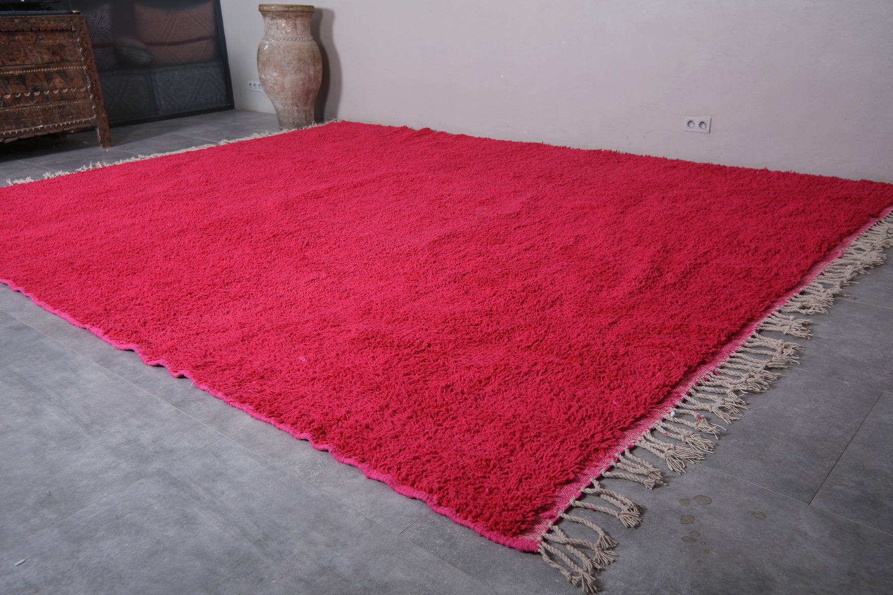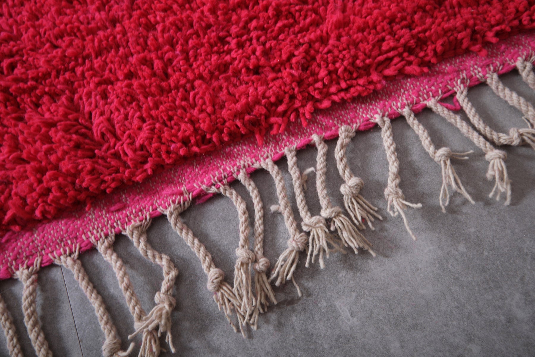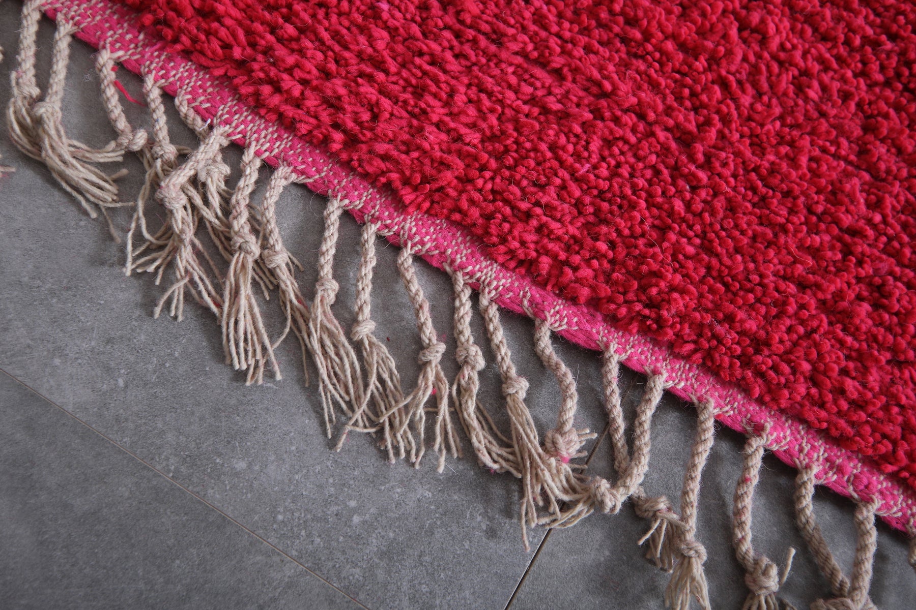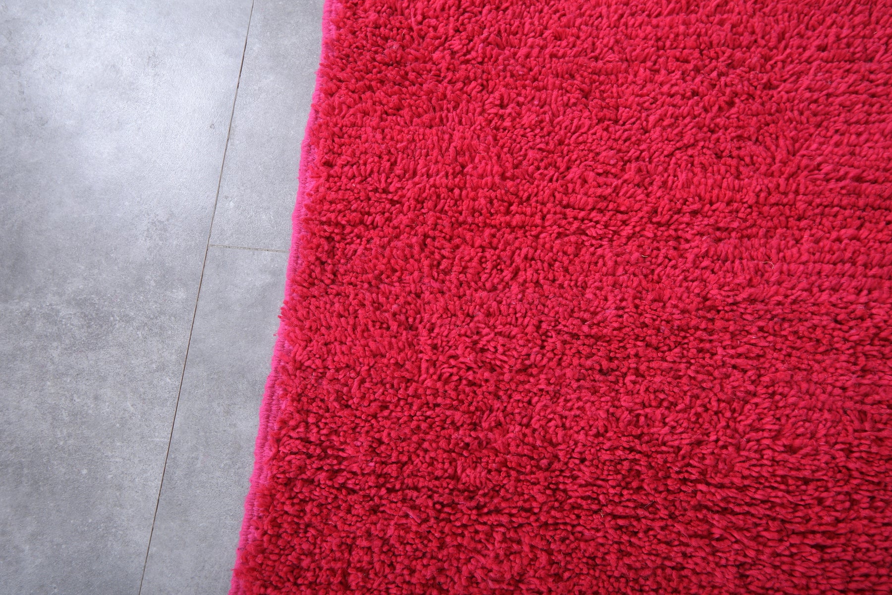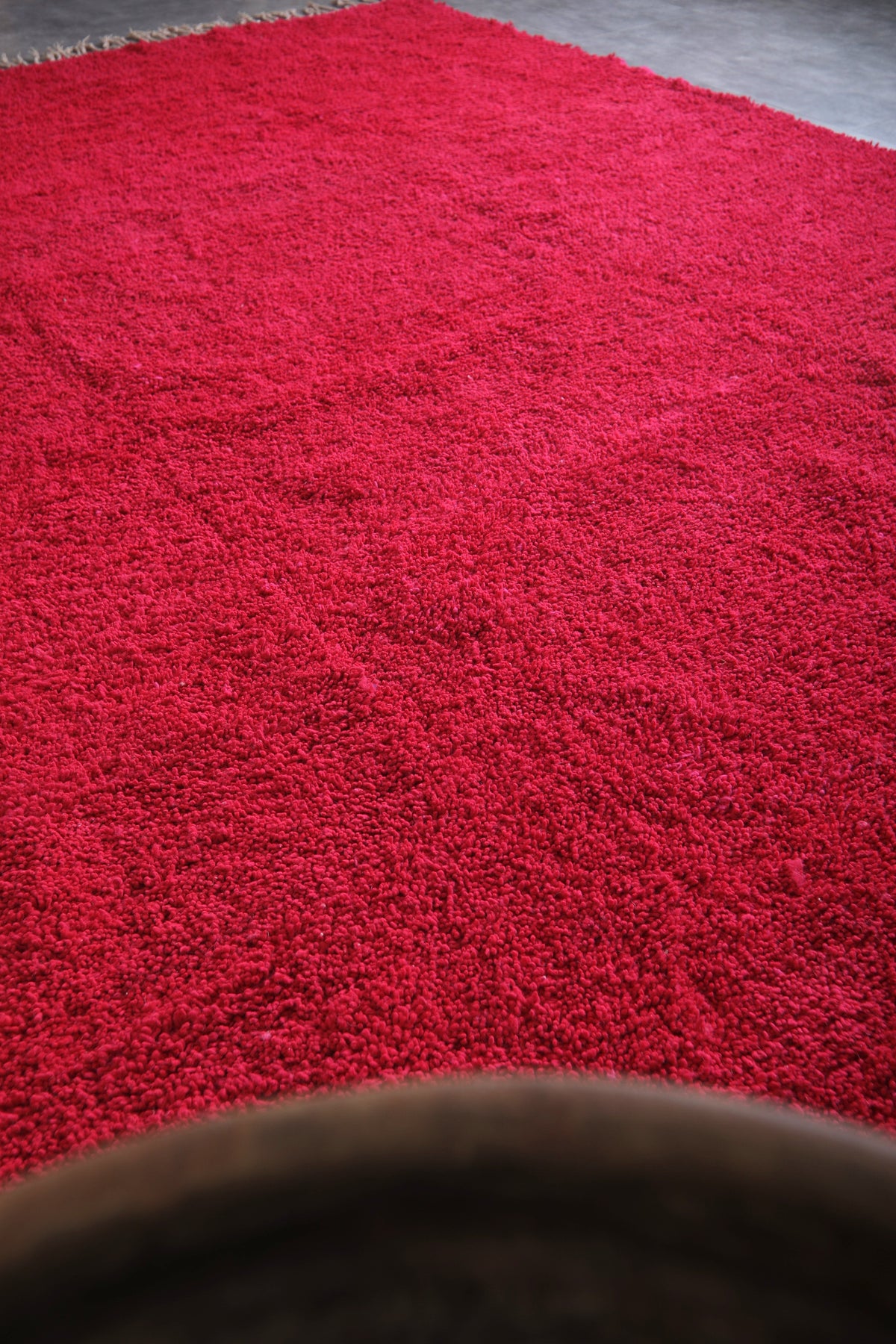 Add a bold statement to your interior with this handcrafted bright red Moroccan rug. Made from 100% wool, its rich crimson hue and plush texture bring warmth, character, and a pop of color to modern or bohemian spaces. Perfect for living rooms or bedrooms, this rug blends traditional craftsmanship with contemporary minimalism for timeless appeal.