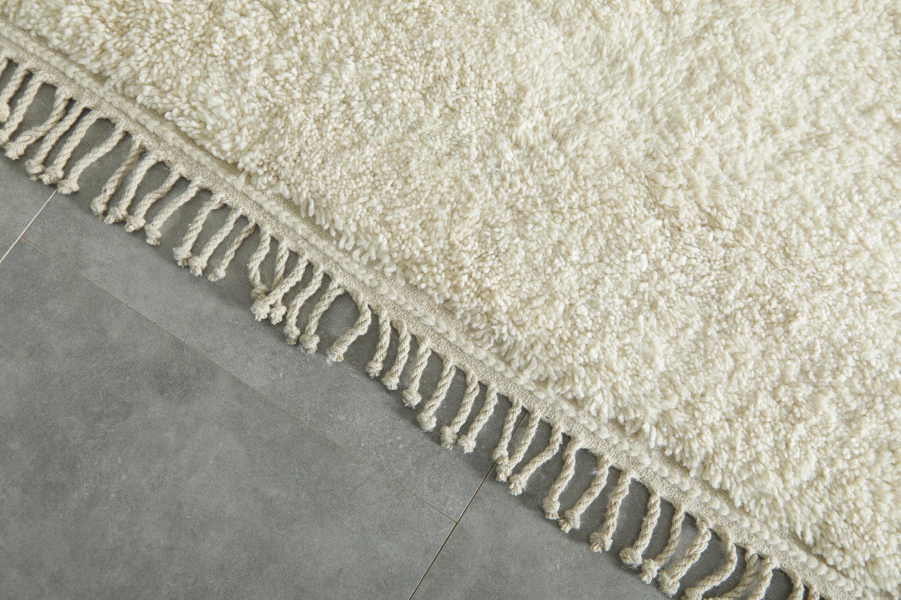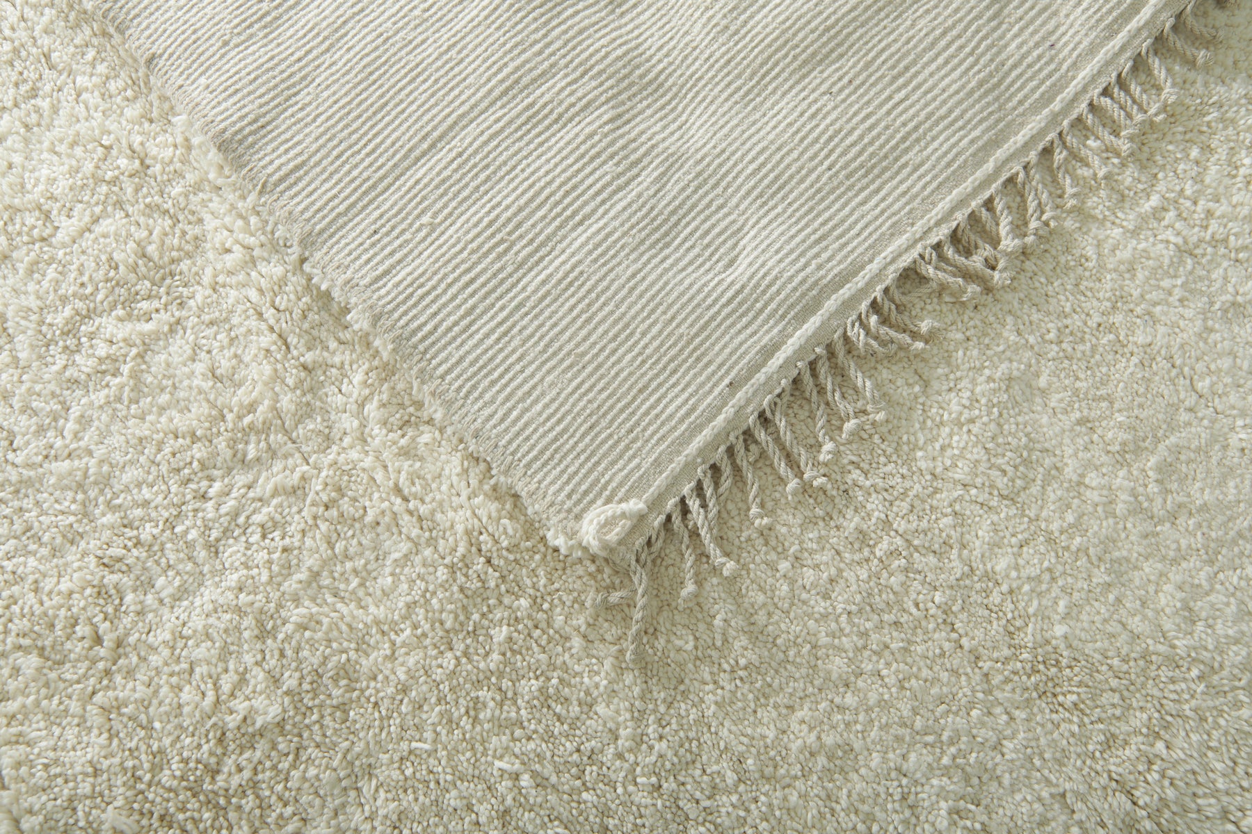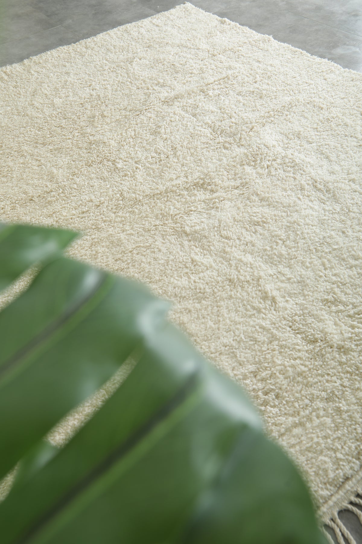 Elevate your living space with this luxurious handmade Moroccan shaggy rug and matching pillow set. Crafted from 100% natural wool, the set includes a plush ivory rug and three soft pillows, designed to bring warmth, comfort, and timeless elegance to your home.