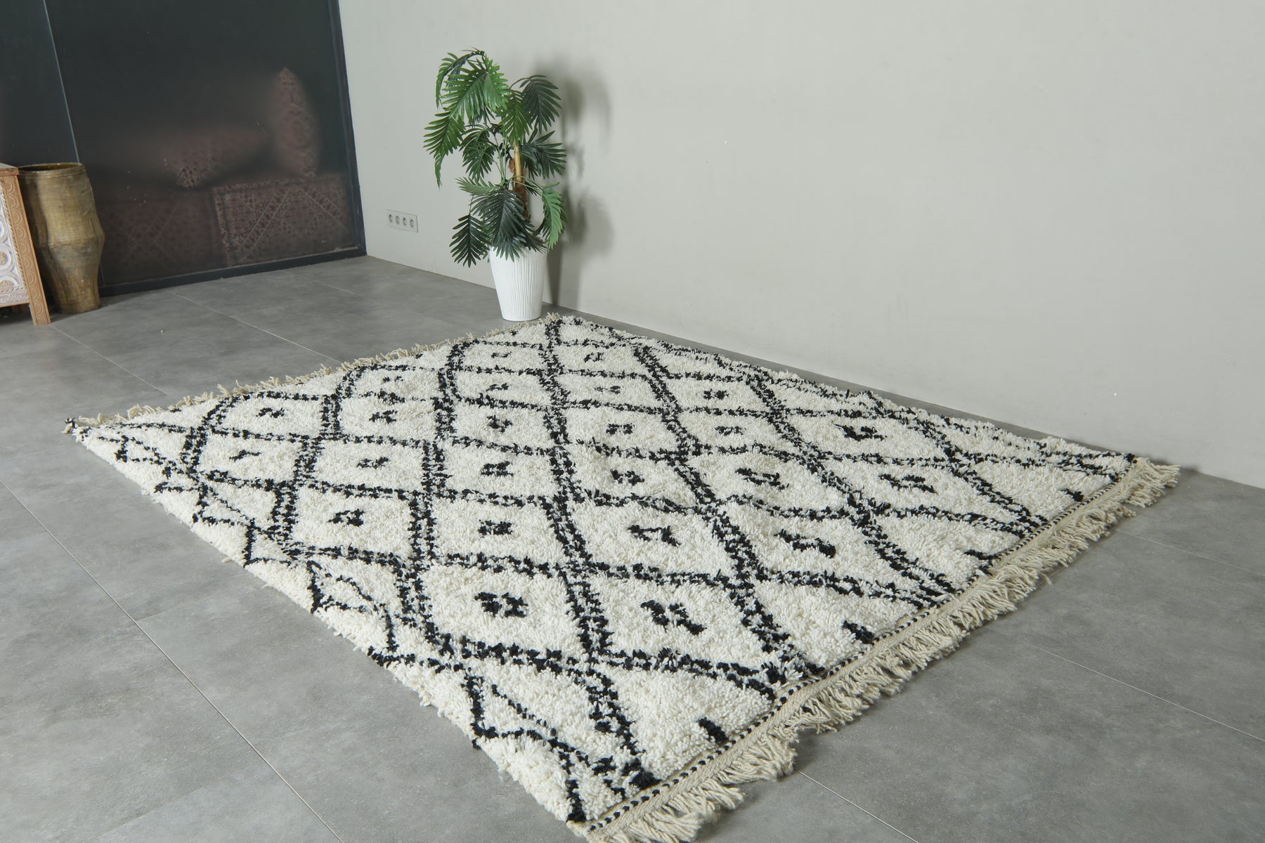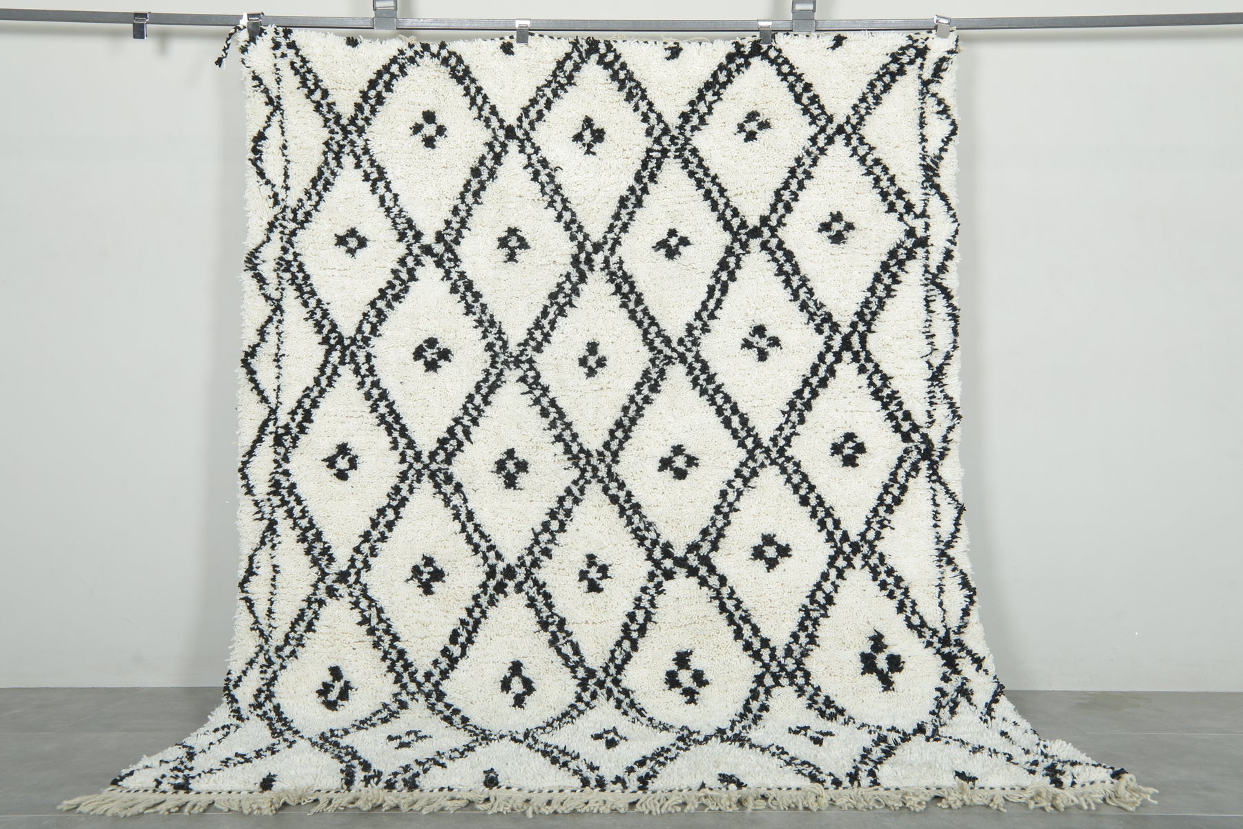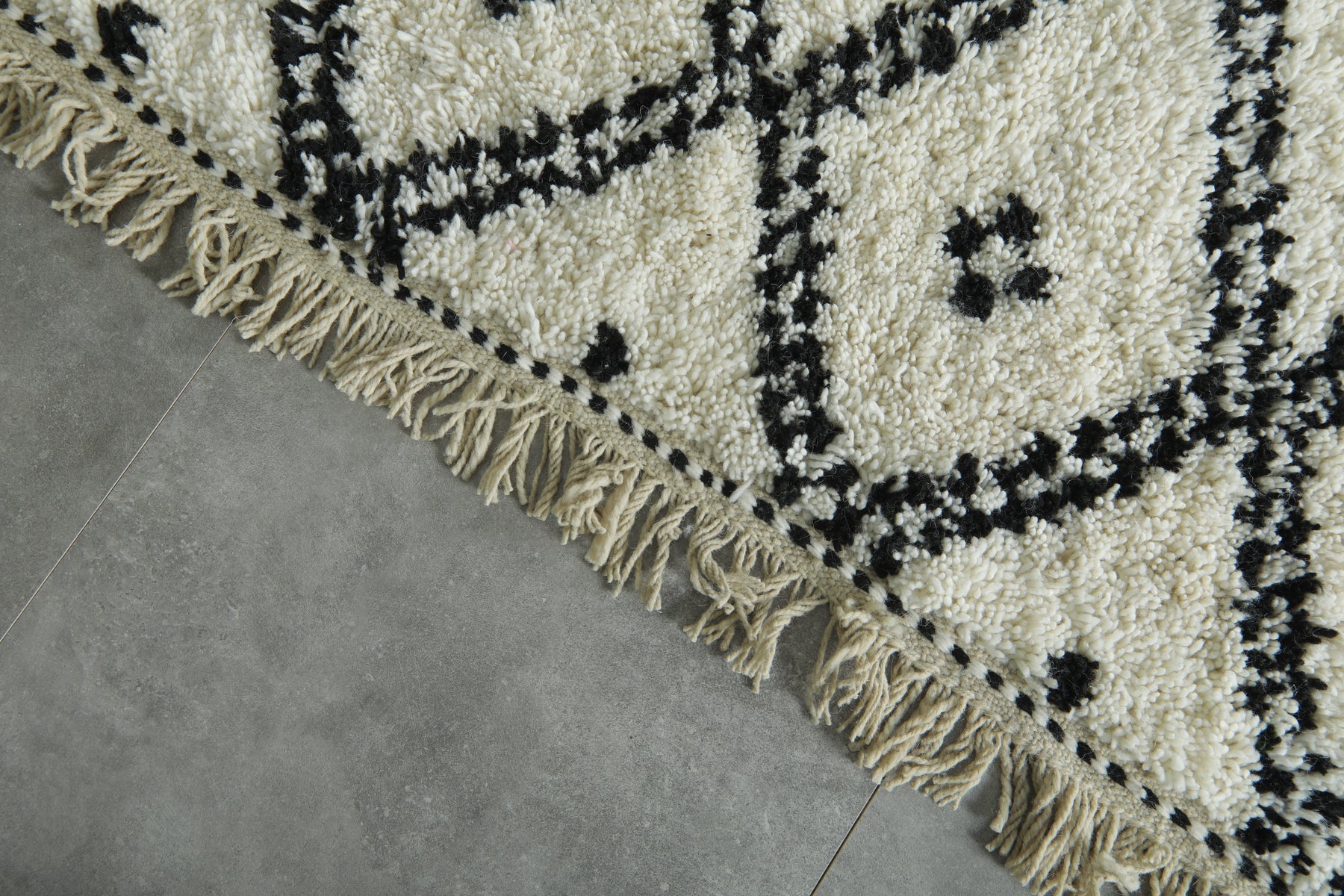 Custom Handwoven Moroccan Rug – Classic Black & White Diamond - Beni Ourain Wool Carpet