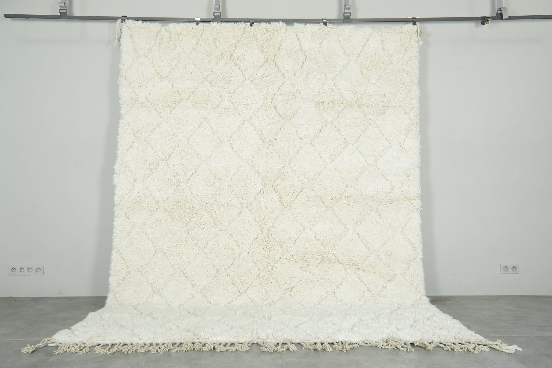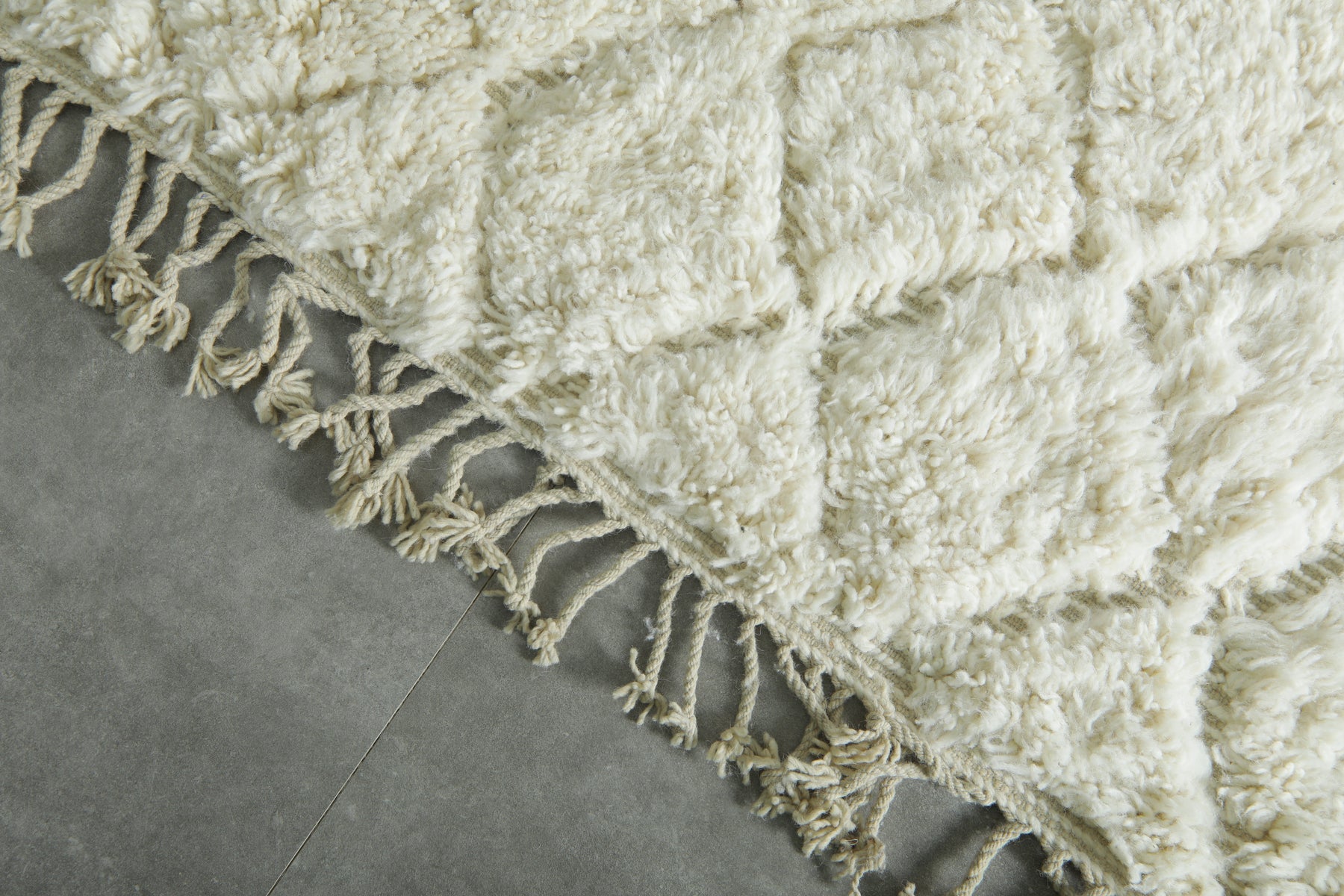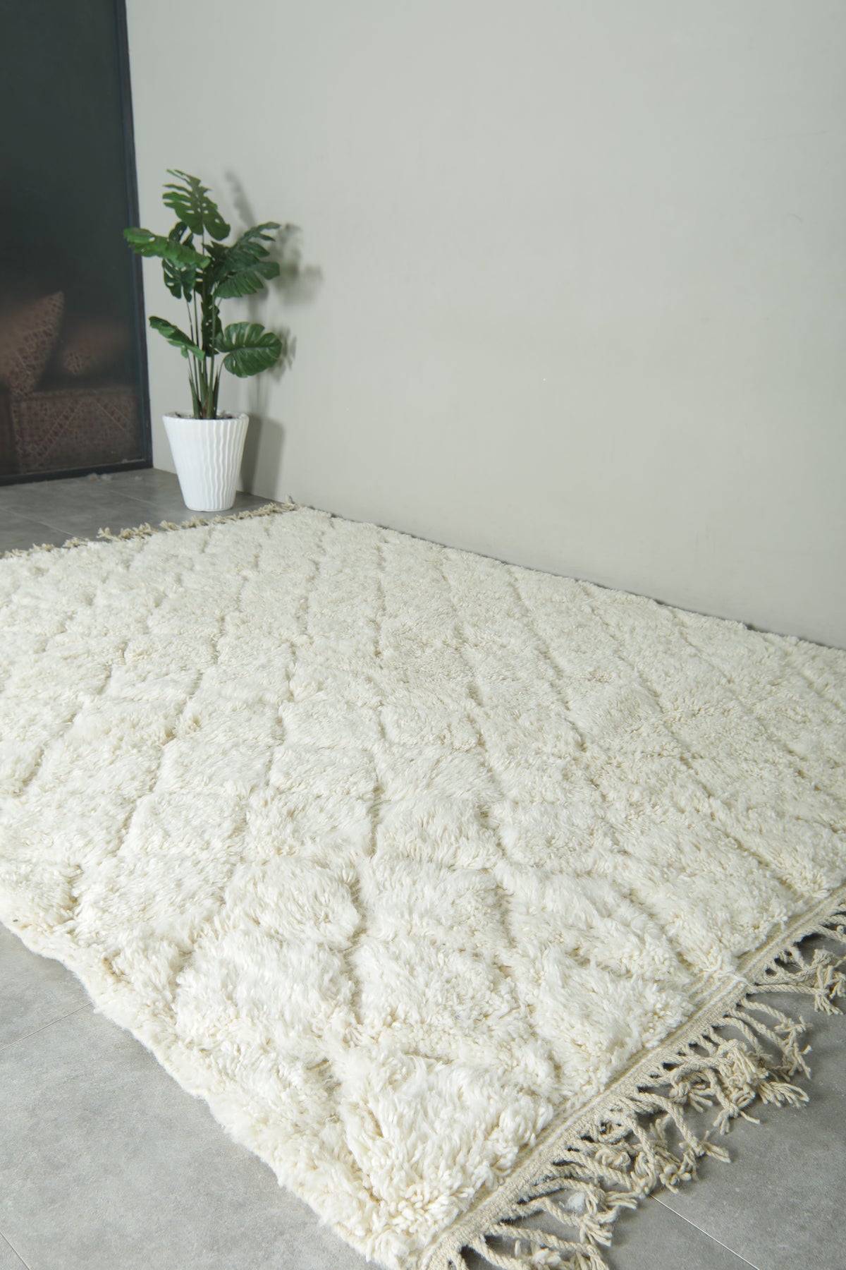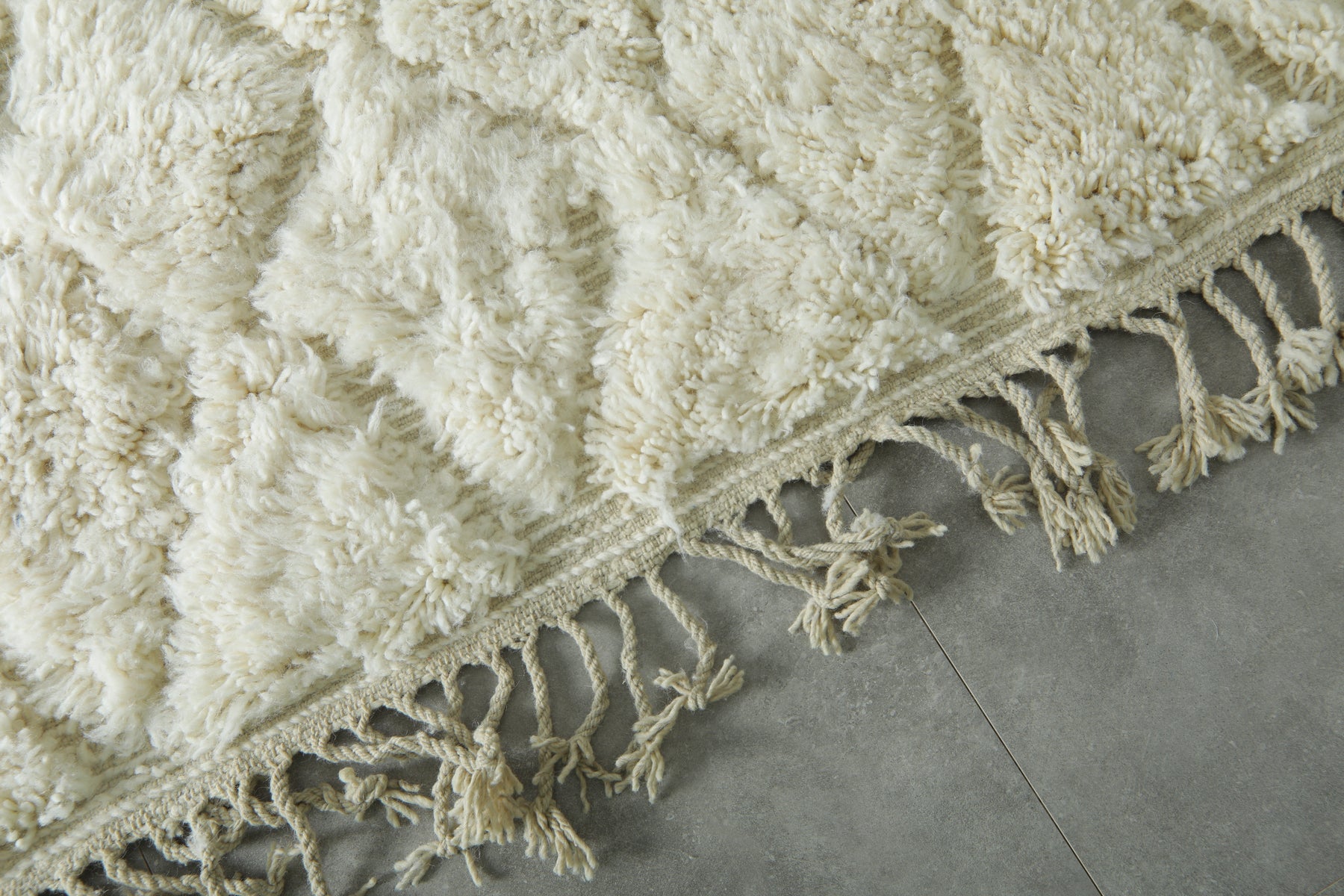 Custom Handwoven Moroccan Rug – Minimalist Cream/White Shaggy Wool Carpet