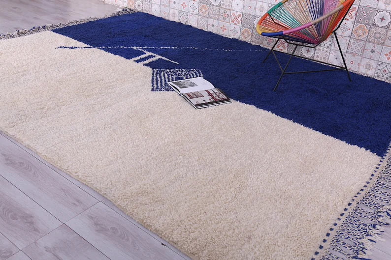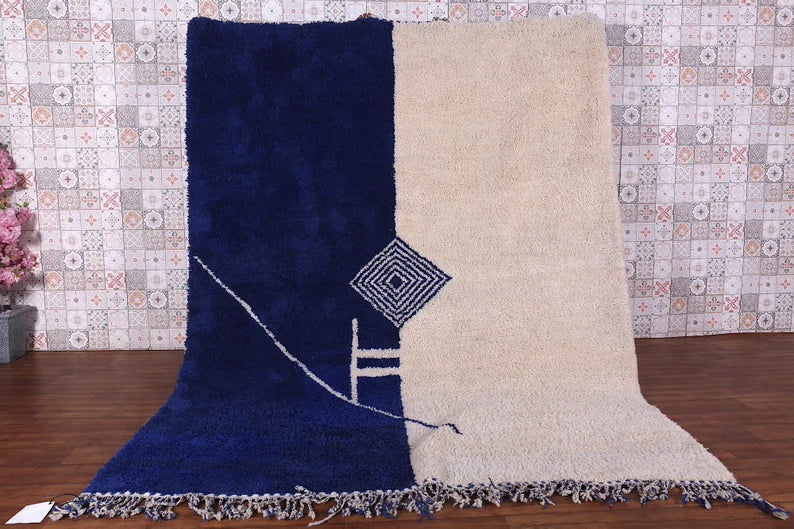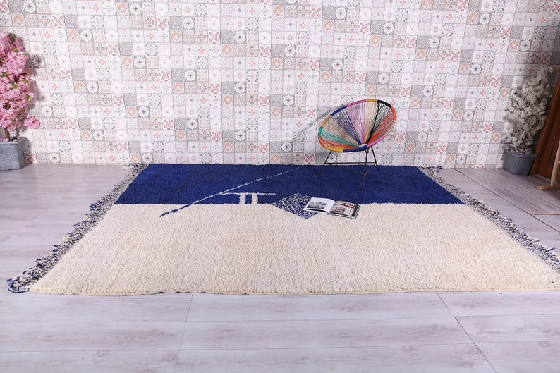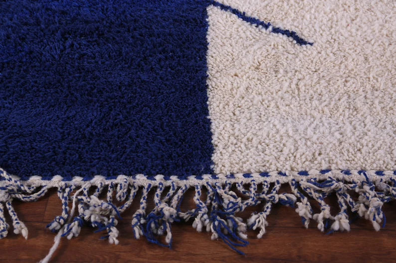 Custom Moroccan rug - Handmade berber rug - Blue and Beige Wool