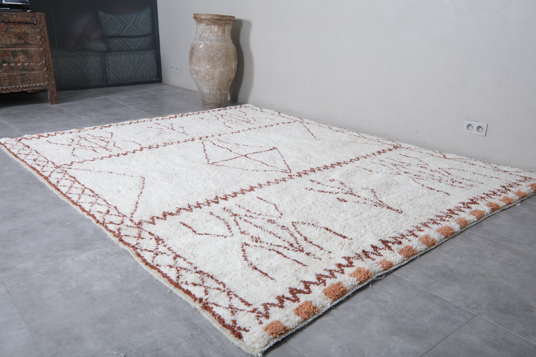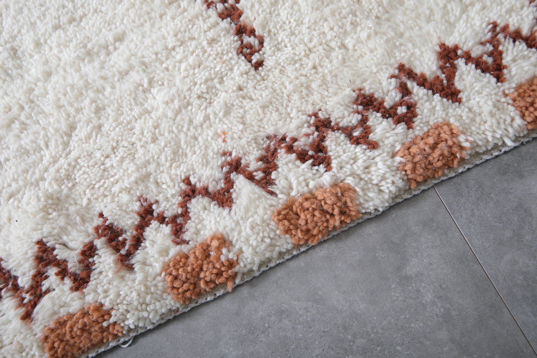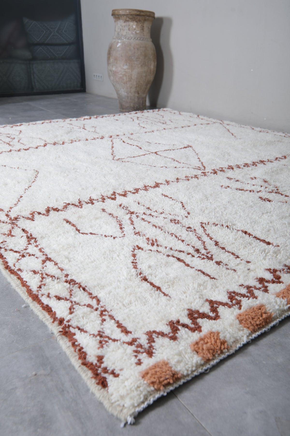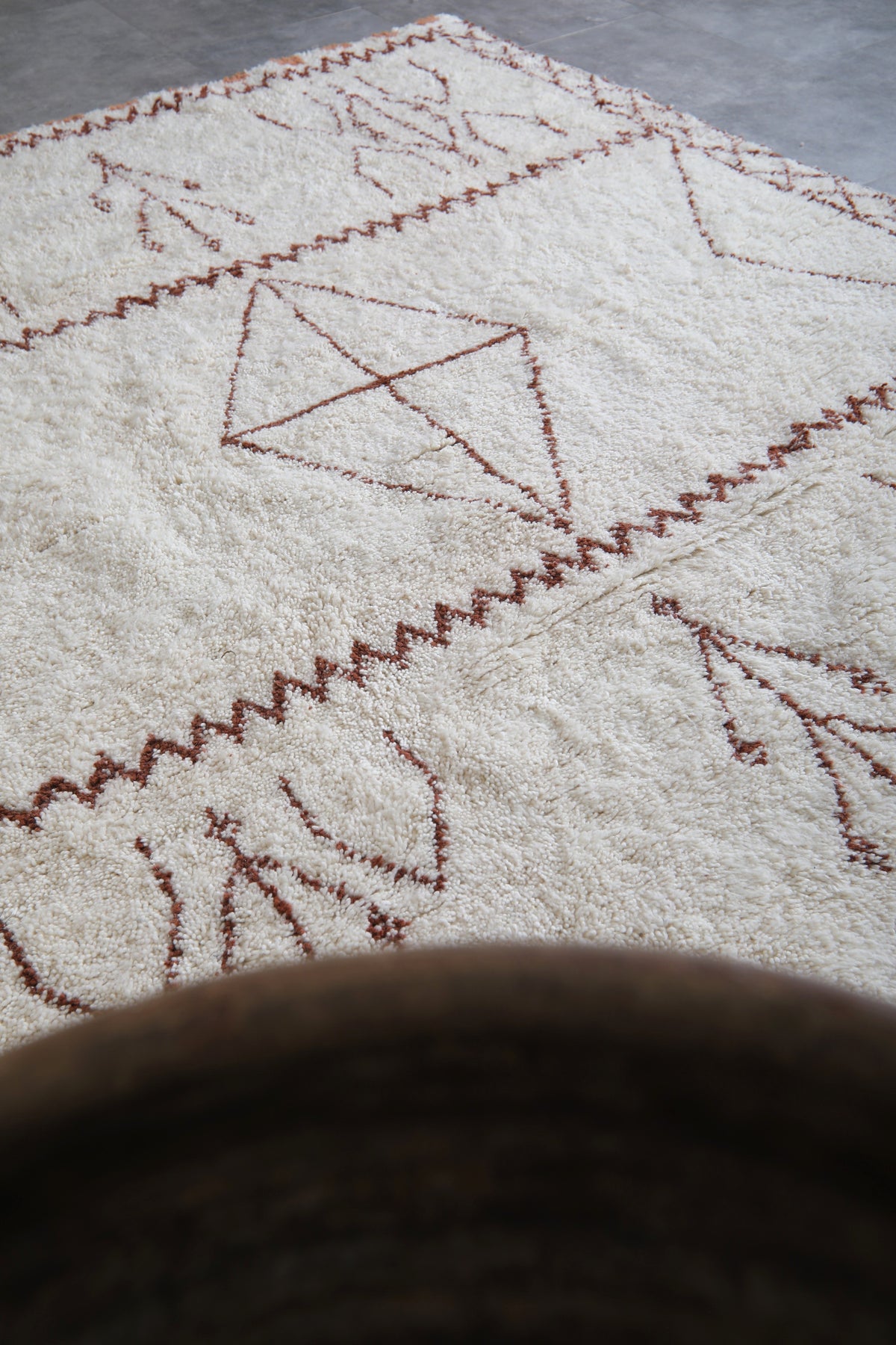 Custom Moroccan wool rug with rust tribal symbols – Handwoven white carpet