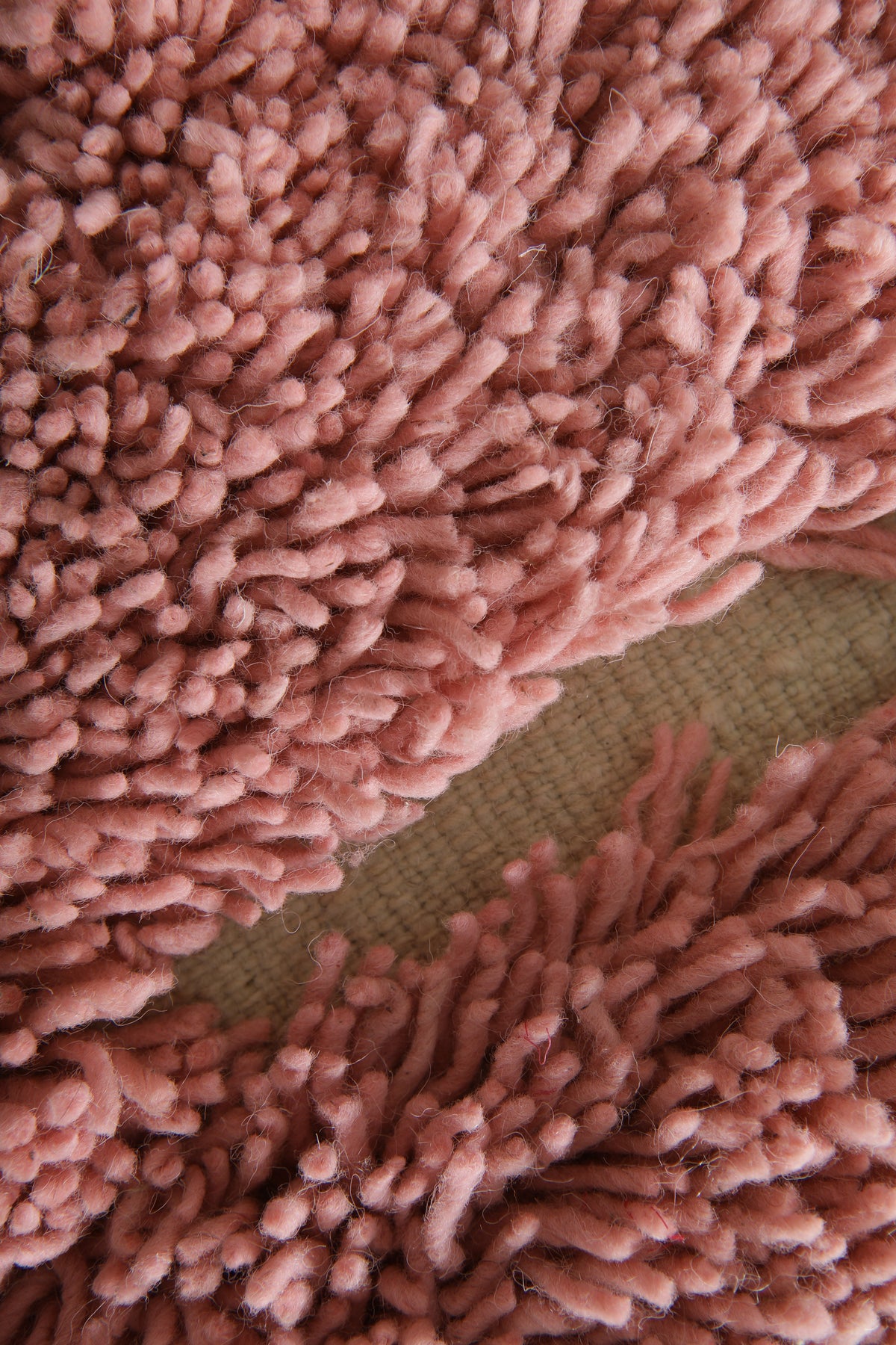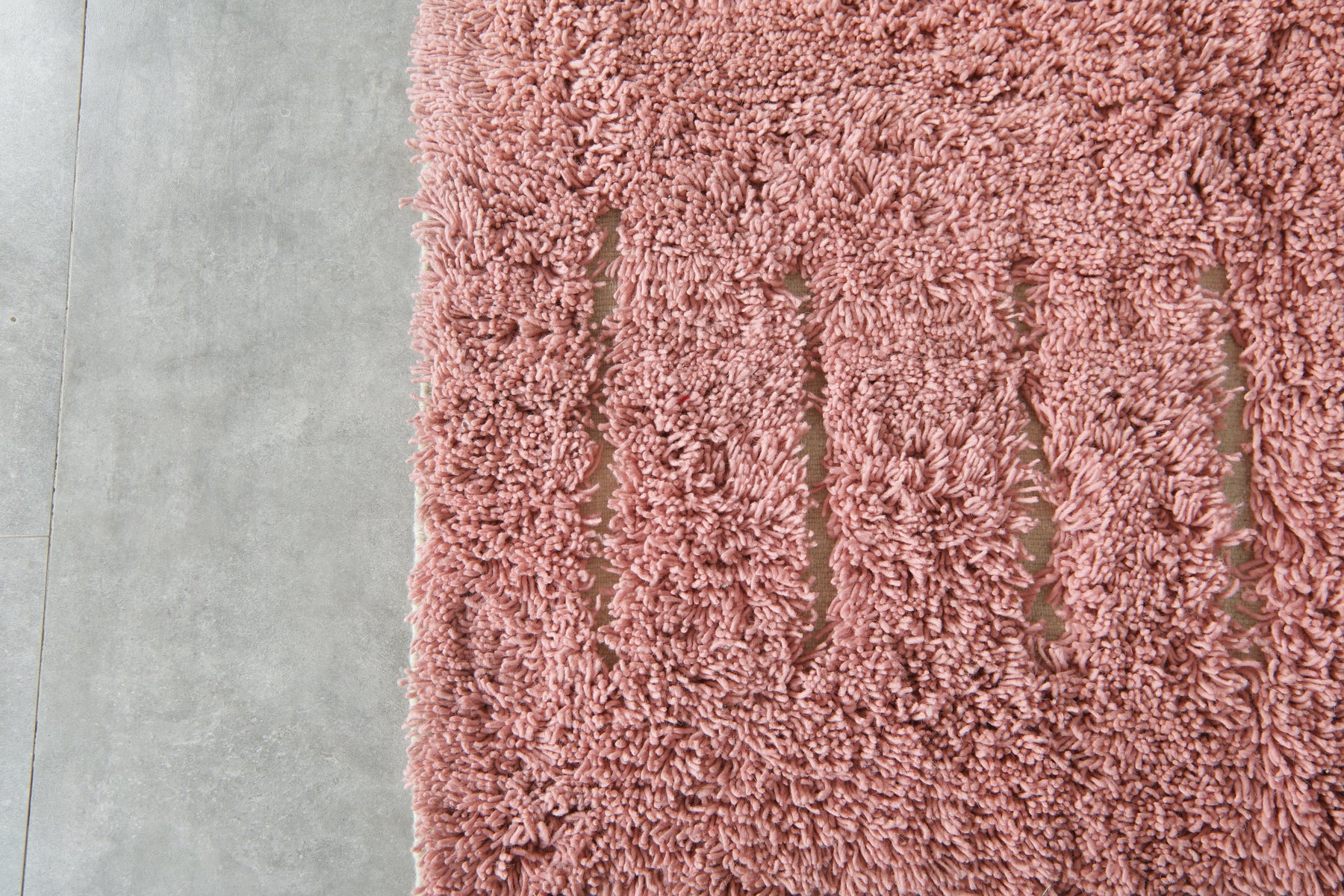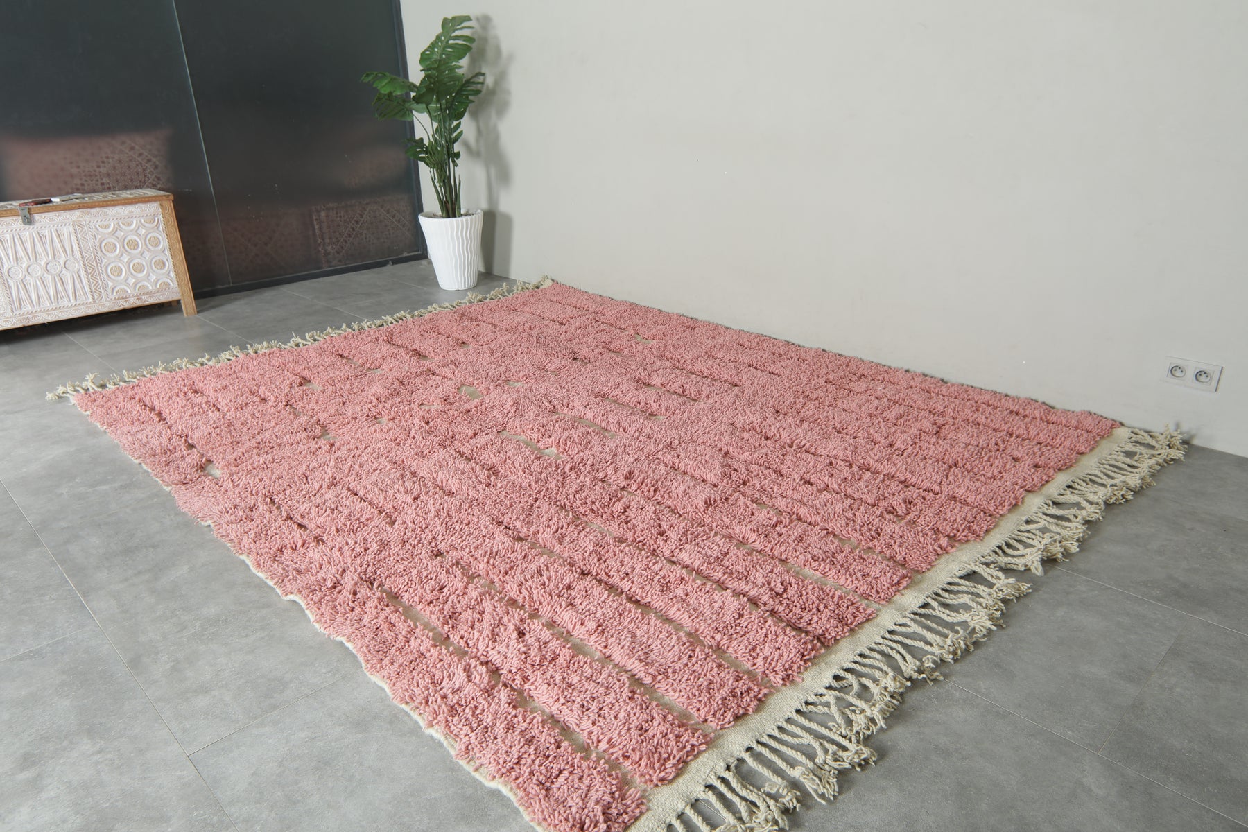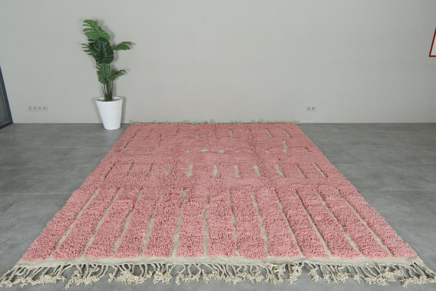 Custom Pink Moroccan Rug – Handmade Wool Berber Carpet with Ivory Stripes