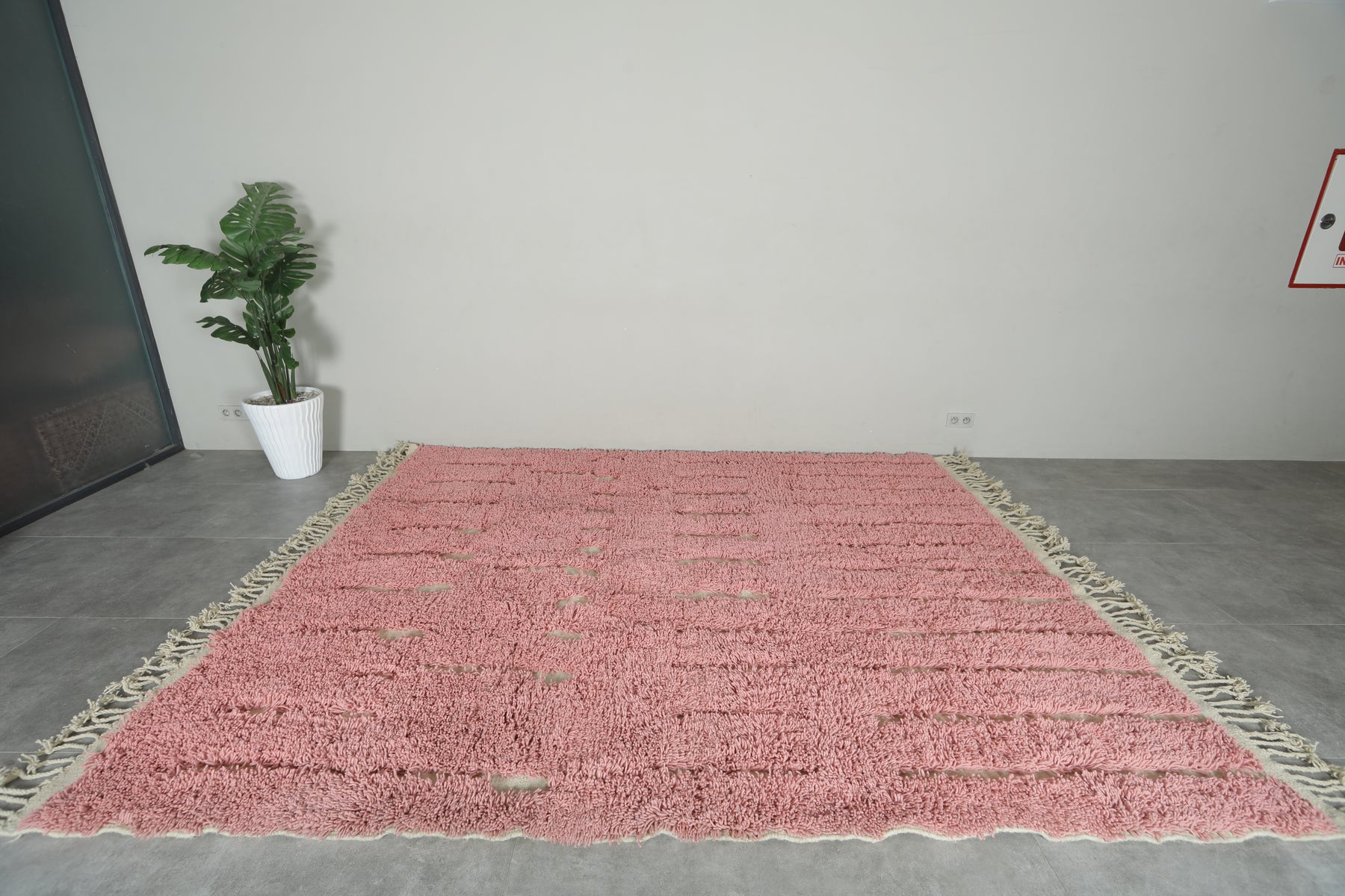 Add warmth and elegance to your space with this custom handmade Moroccan rug, model ABAB1, featuring a soothing dusty pink base and ivory linear details. The simple yet artistic design brings a cozy, contemporary feel while preserving the authenticity of traditional Moroccan craftsmanship.