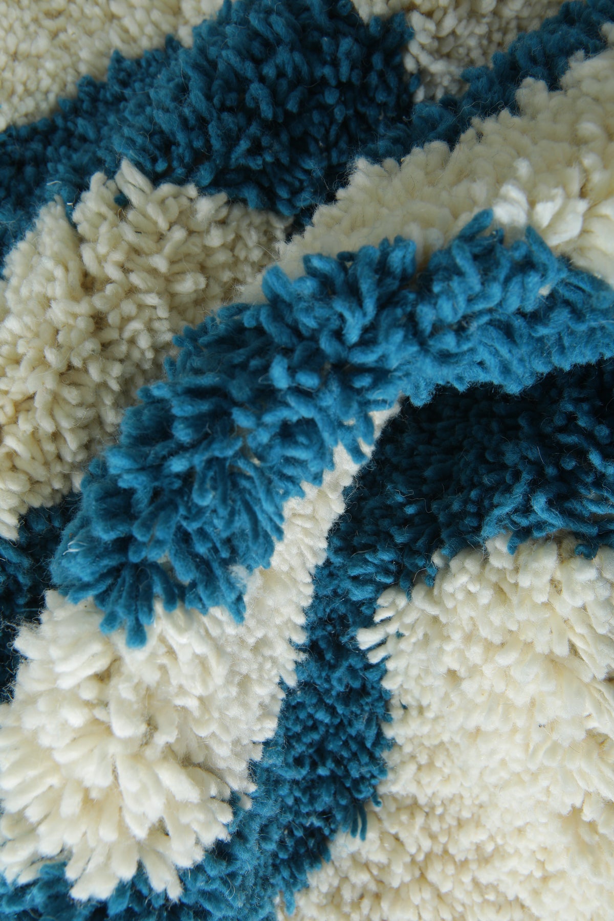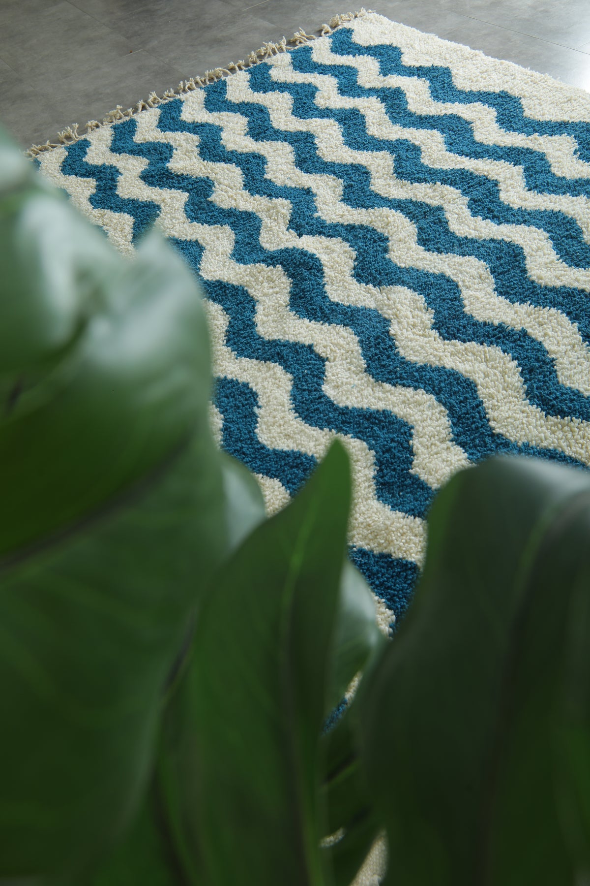 Crafted with a plush, soft pile, this rug blends modern geometric waves with traditional Moroccan weaving techniques. The flowing pattern adds movement and personality, making it perfect for living rooms, bedrooms, creative studios, or any space that needs a bold, stylish centerpiece. Finished with hand-tied tassels for an authentic, handcrafted touch.