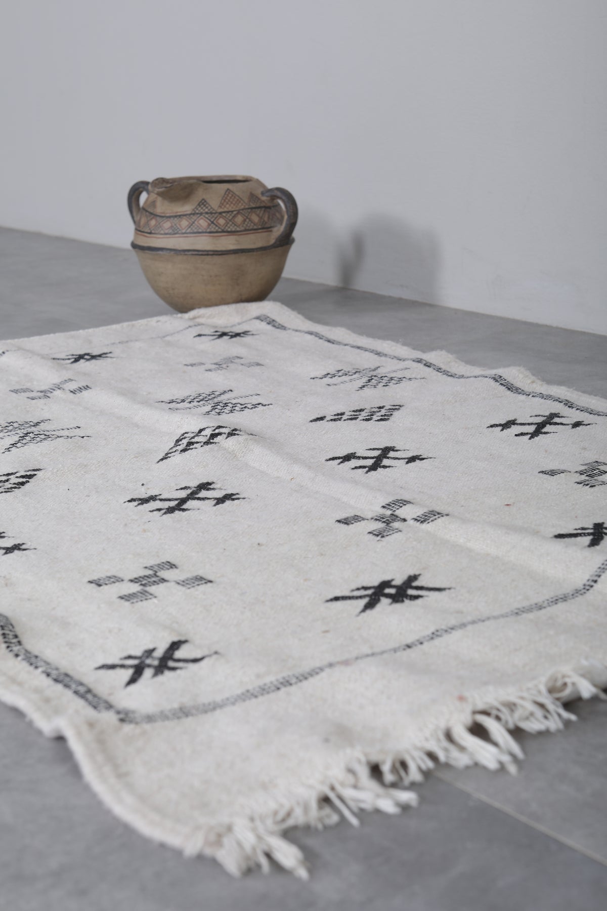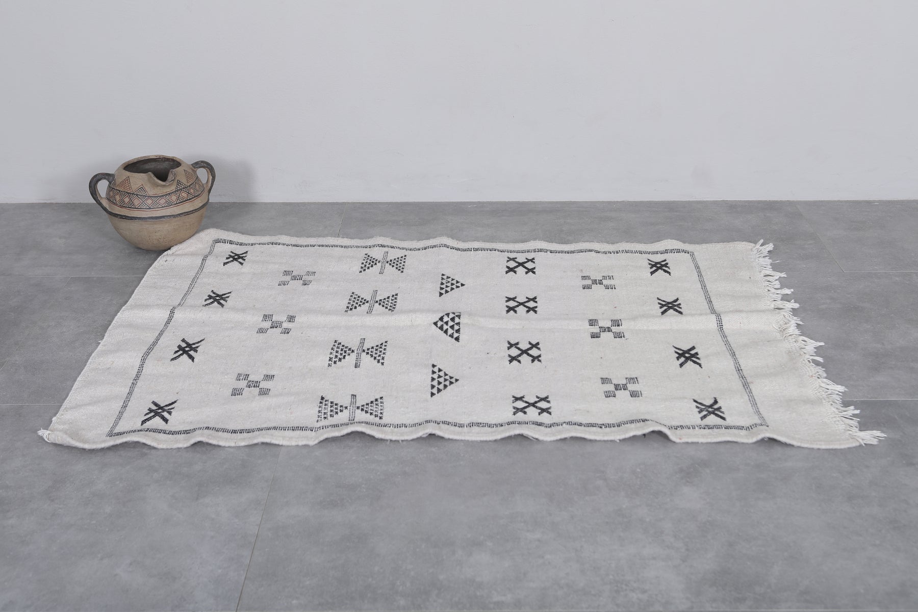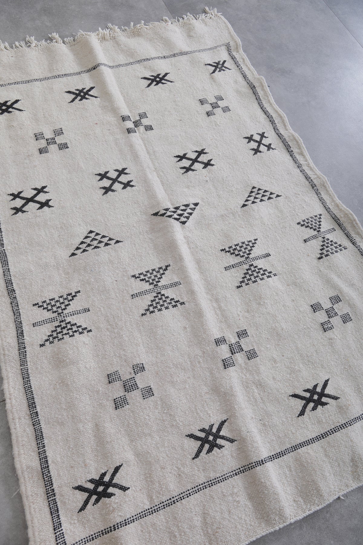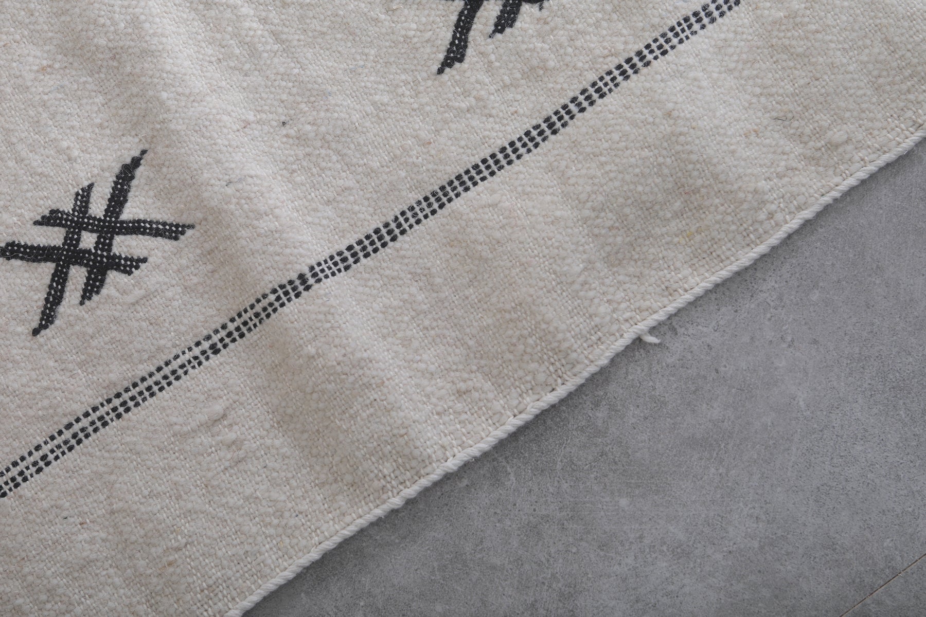 Handwoven Kilim Rug - 3 FT X 4.6 FT | Black and White Moroccan Rug