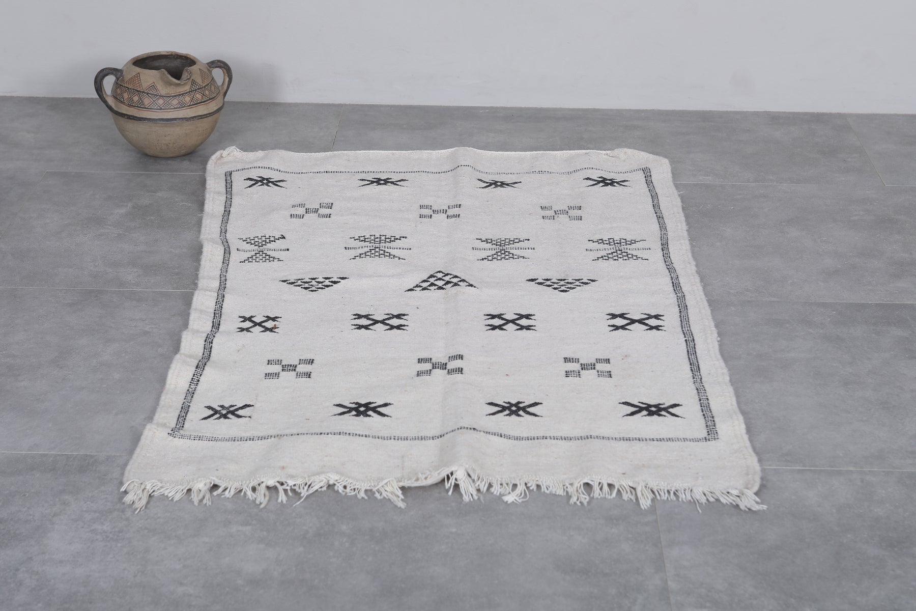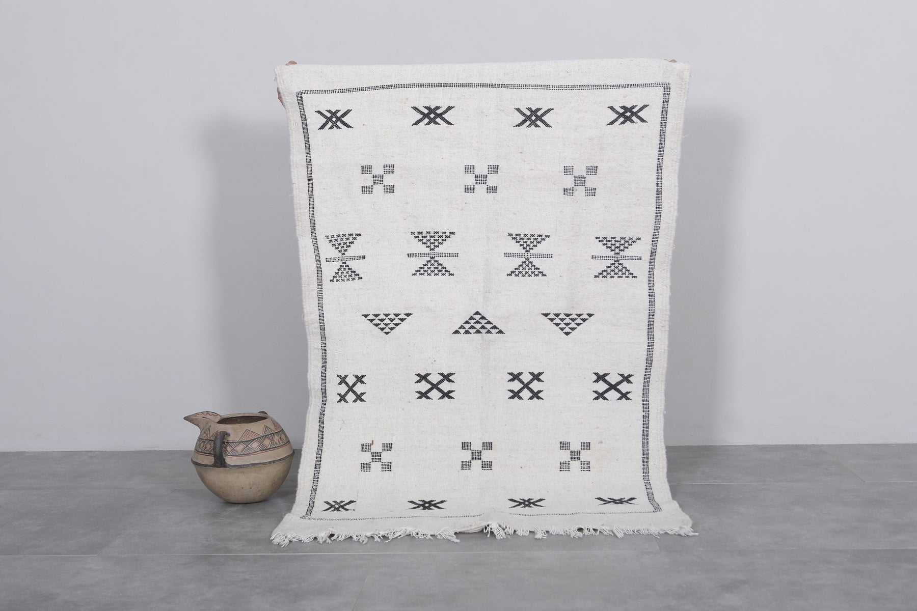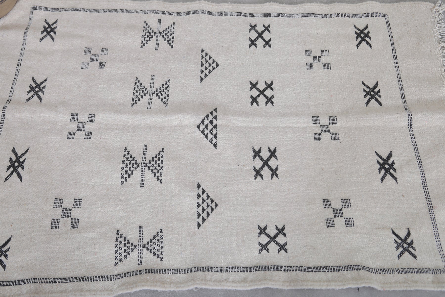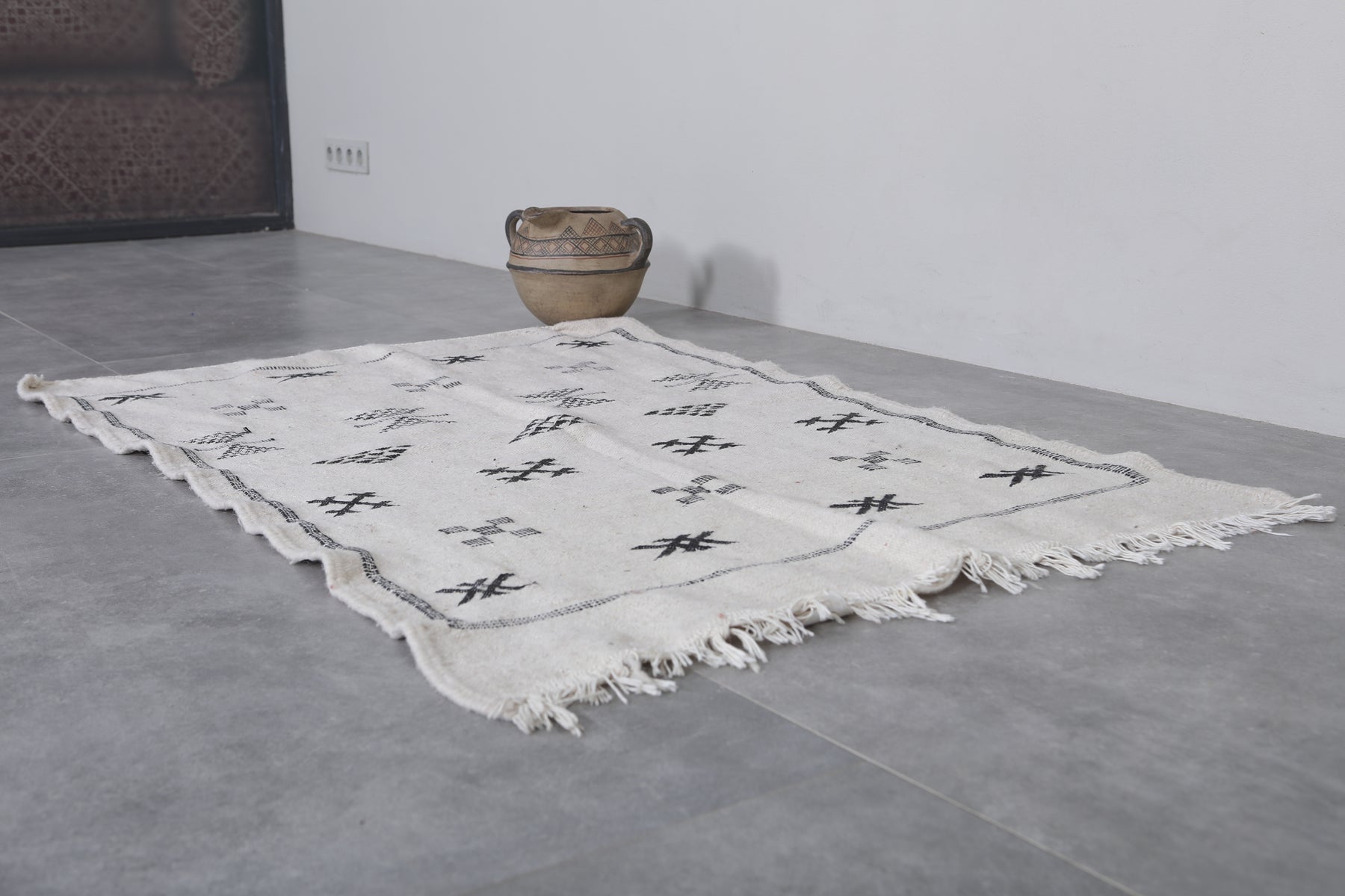 Handwoven Kilim Rug - 3 FT X 4.6 FT | Black and White Moroccan Rug