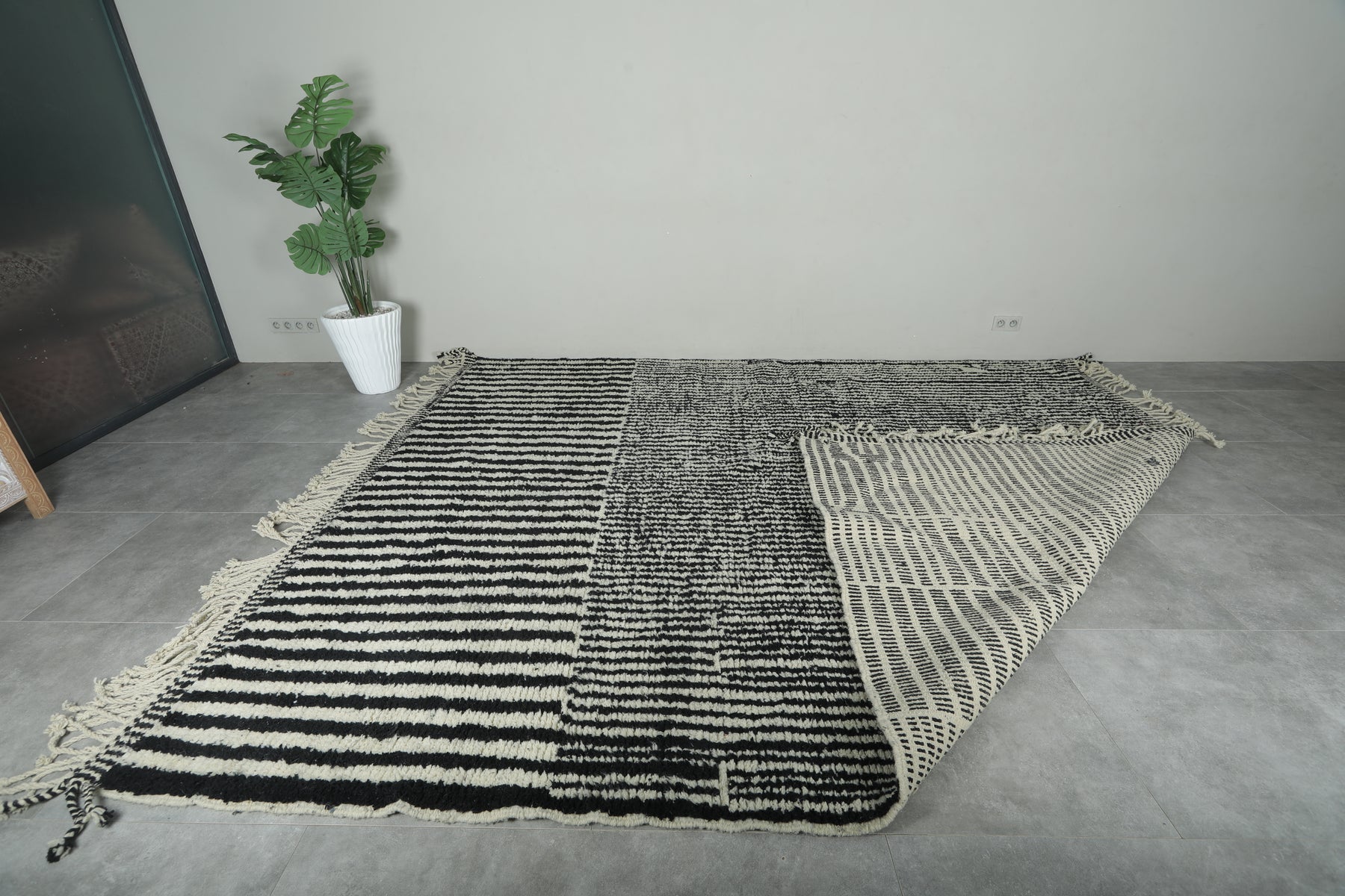 Handwoven Moroccan rug - Custom rug - Black and white rug