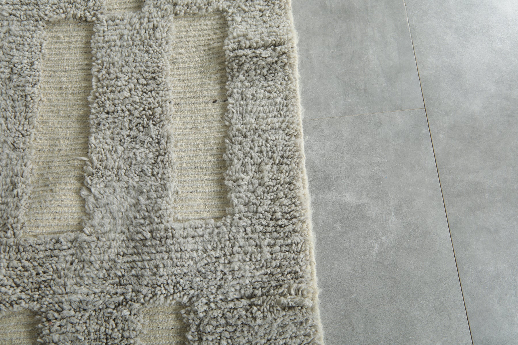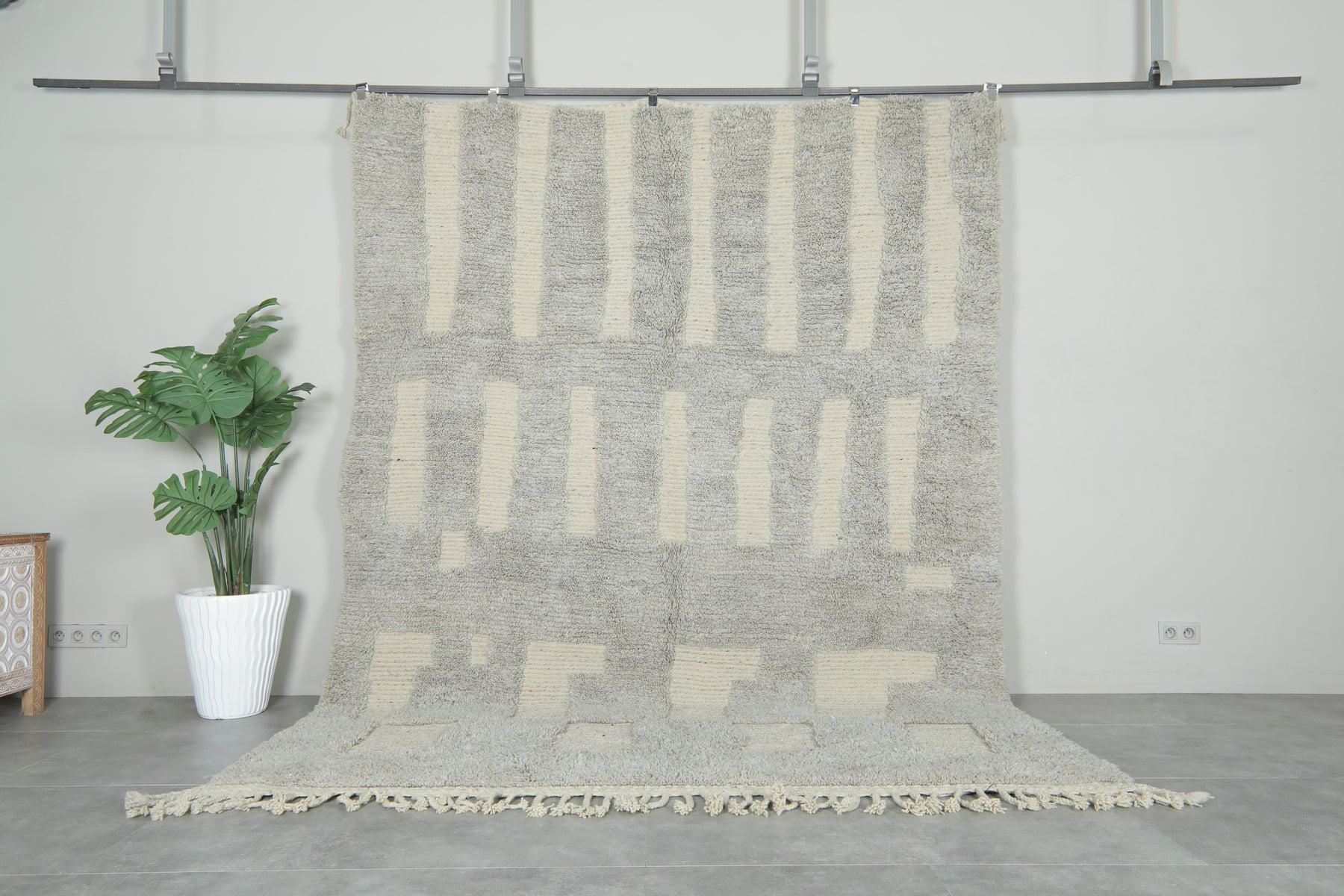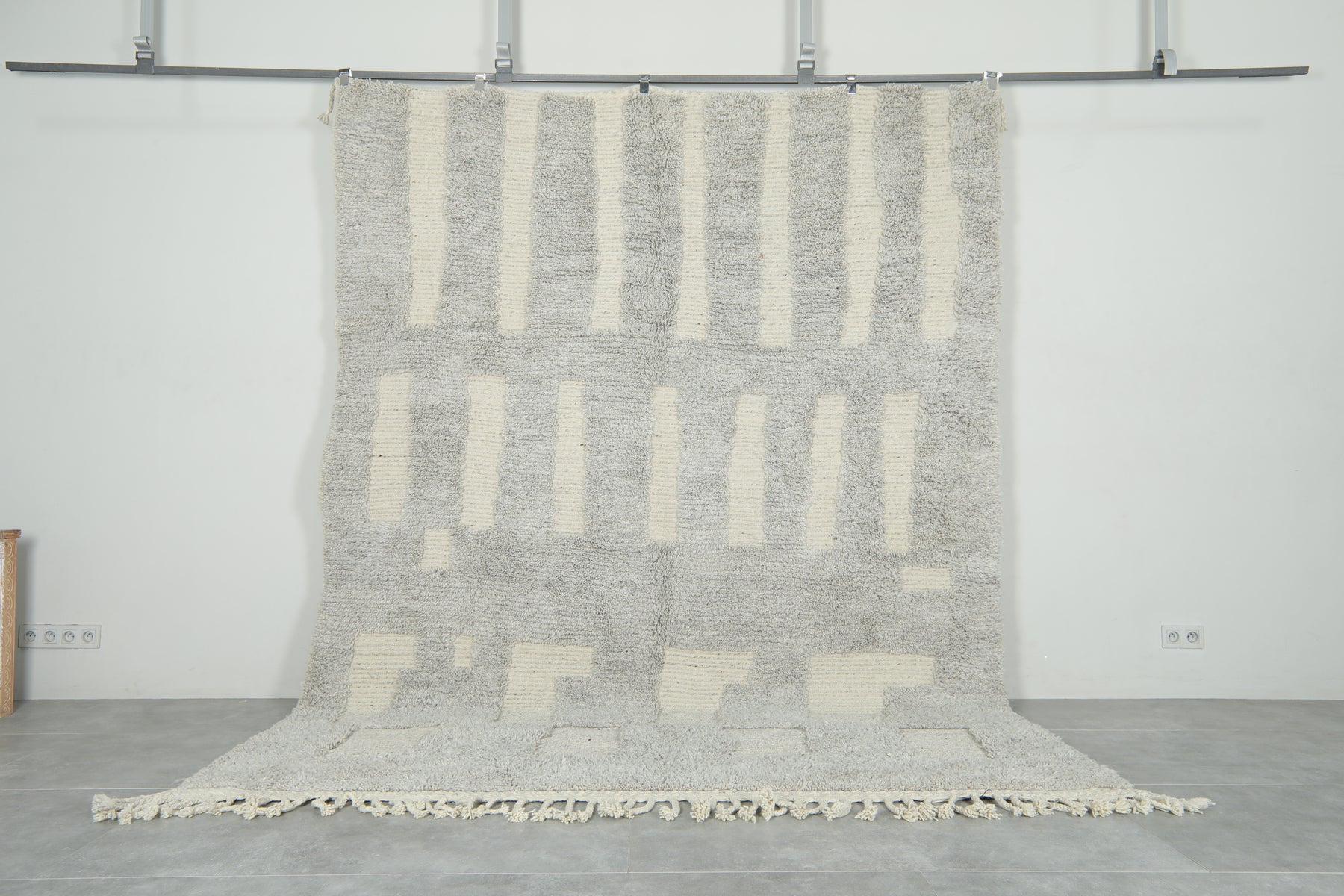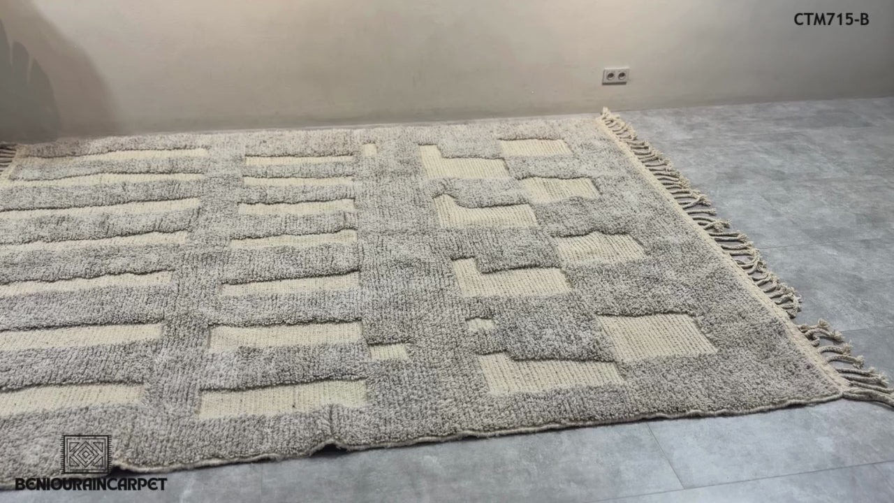 Understated elegance meets modern design in this contemporary Moroccan rug, featuring a soothing palette of soft grey and ivory. The vertical block pattern creates a balanced, architectural feel, adding subtle texture and sophistication to any interior.