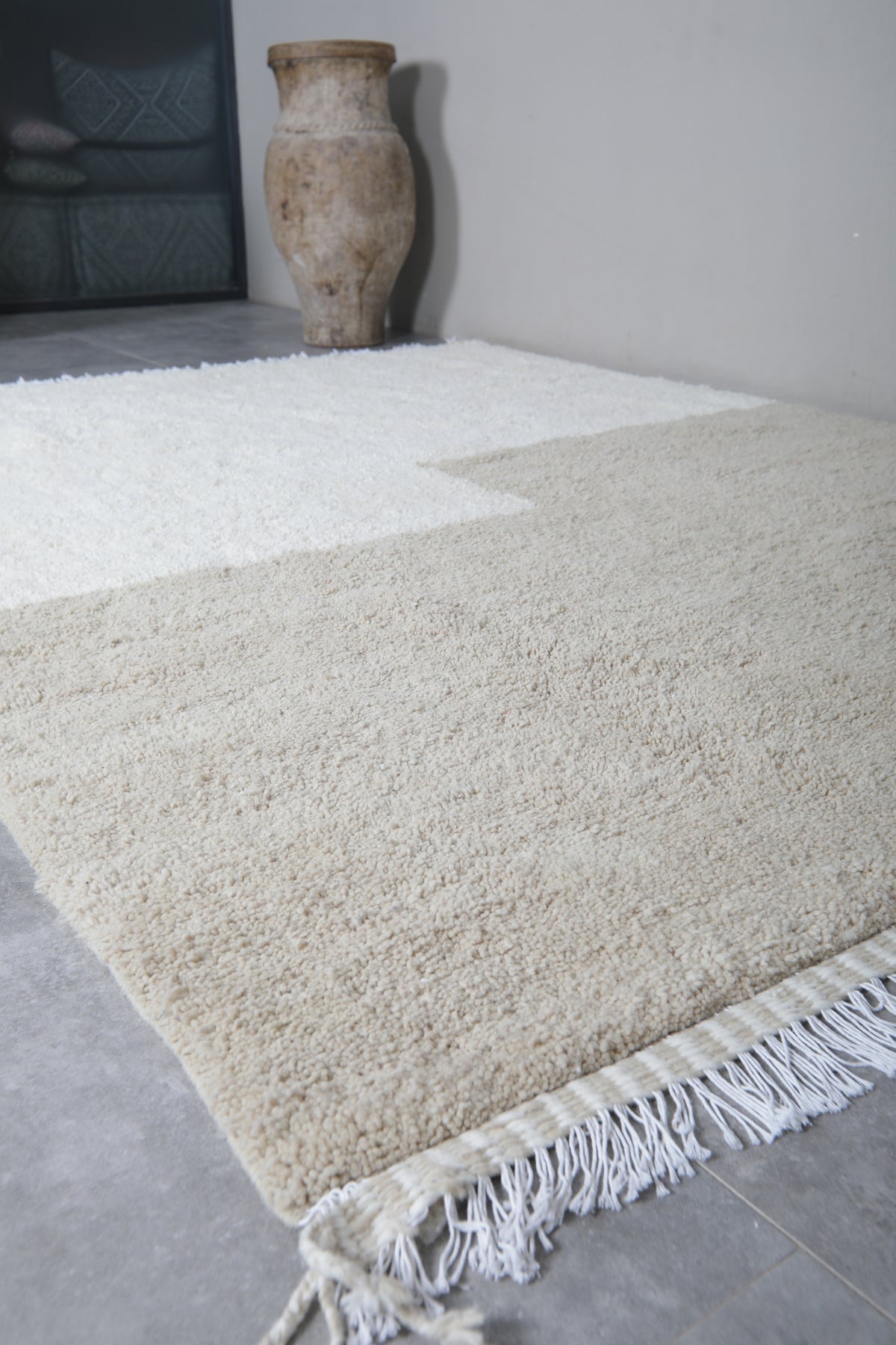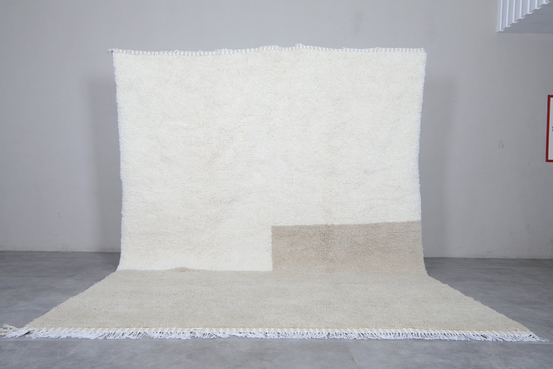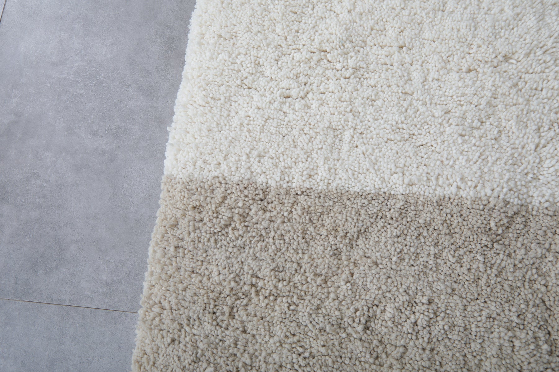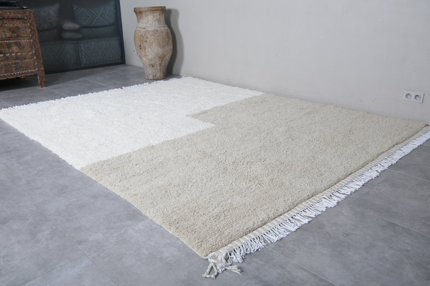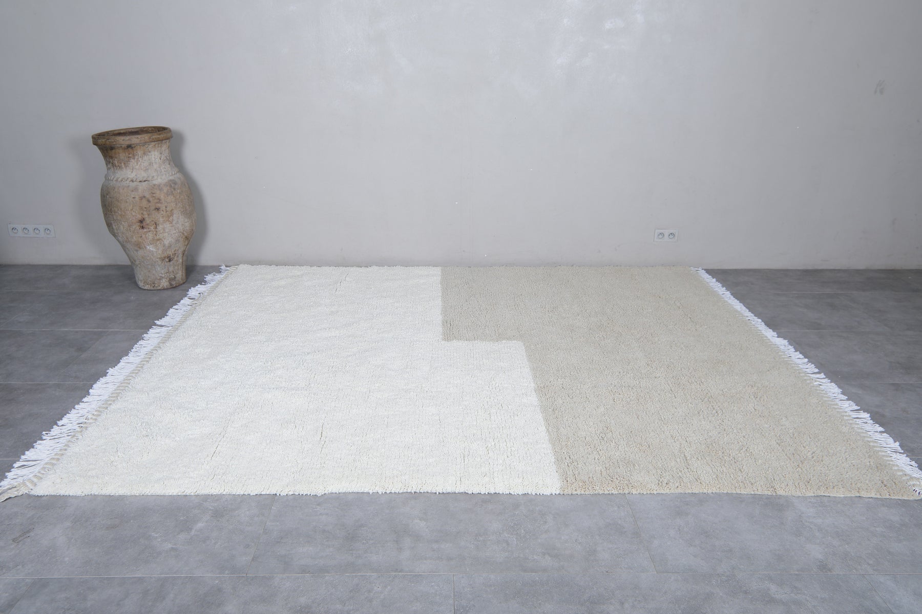 Bring calm sophistication into your home with this minimalist white and beige Moroccan wool rug, handwoven with a modern eye for simplicity and balance. Featuring a clean off-white base and a contrasting beige rectangular block, this rug is a perfect choice for lovers of neutral interiors and understated design.