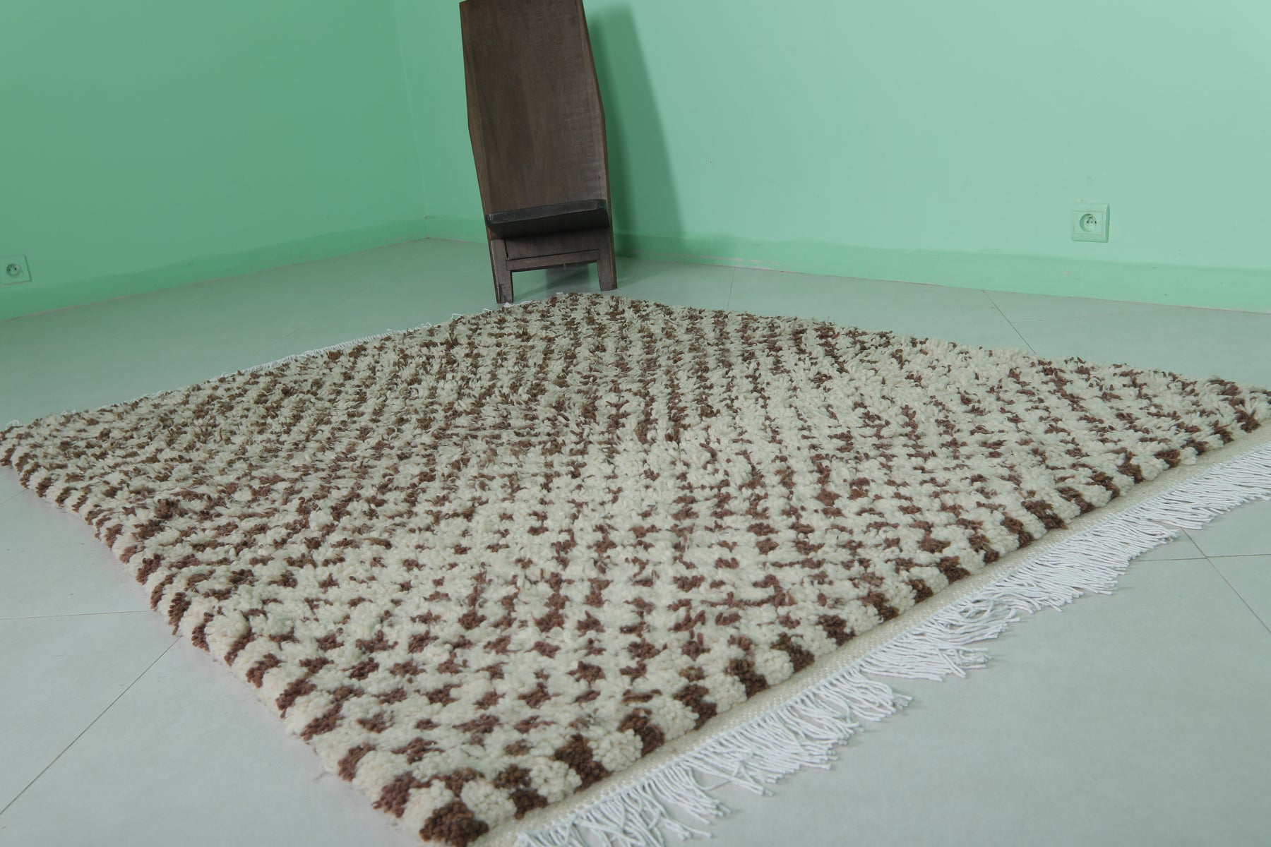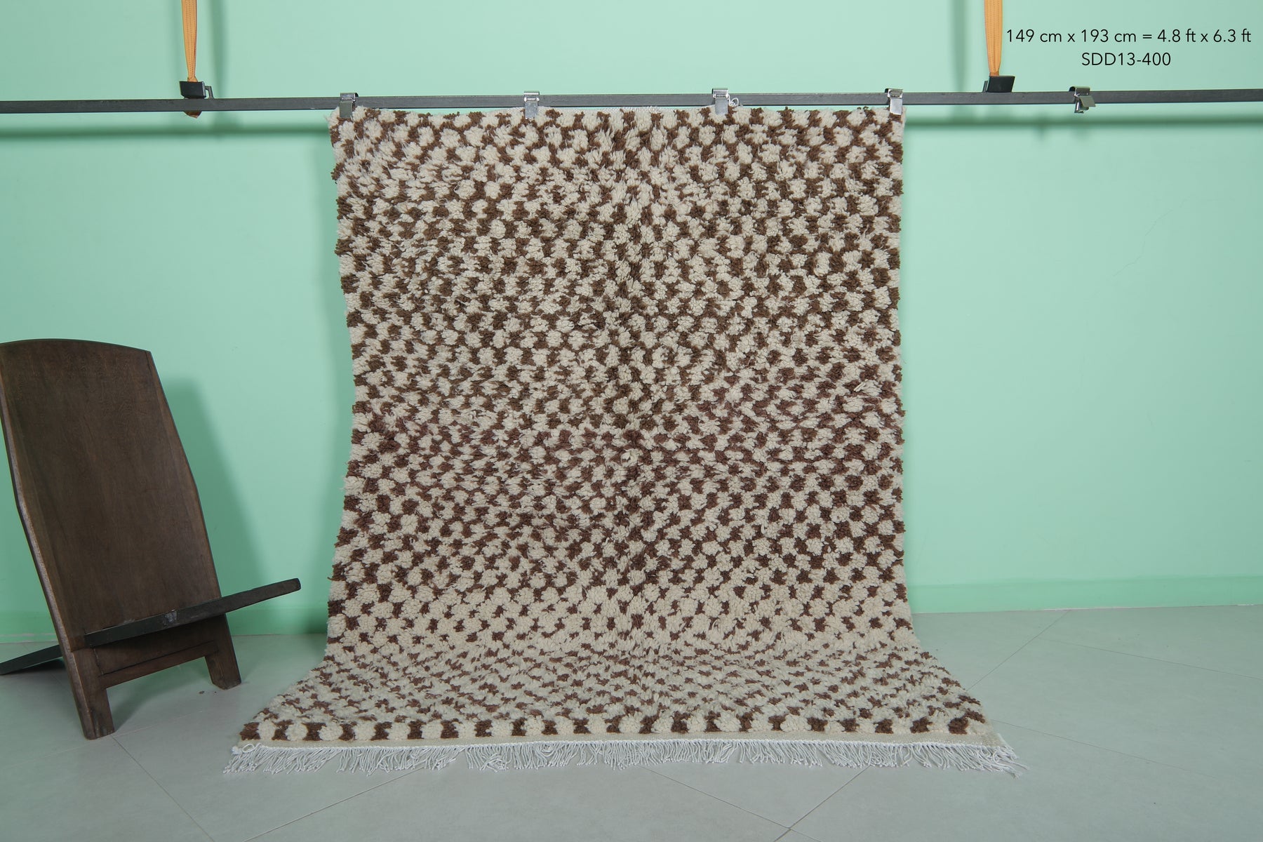 Enhance your home with this exquisite Moroccan Handmade Rug, sized at 4.8 x 6.3 feet (149 CM x 193 CM). Featuring a minimalist design with earthy tones, this handmade rug is a timeless statement piece.