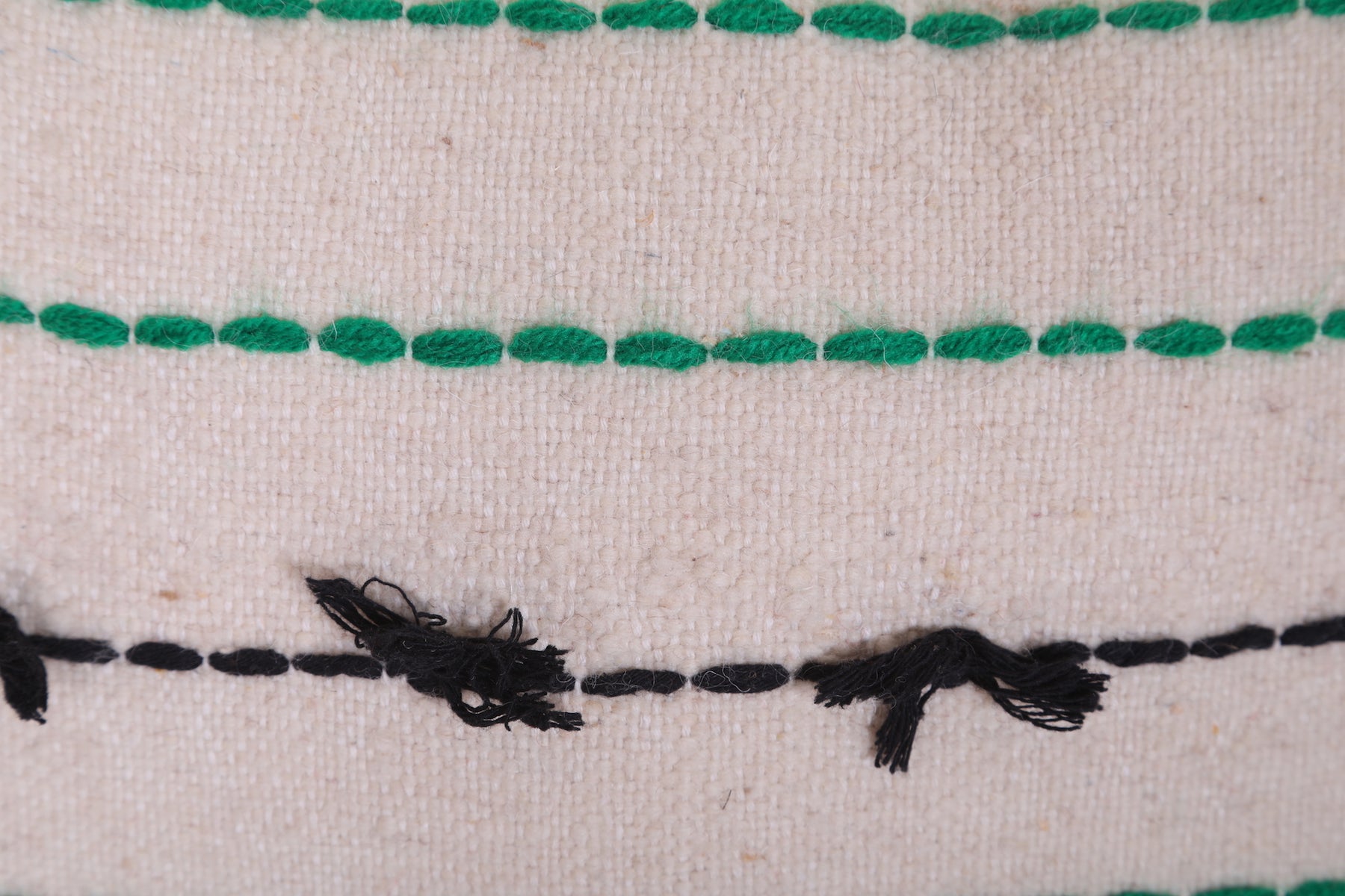 This 18.1 x 20 inches Moroccan Pillow Cover features a minimalist design with horizontal green and black embroidery over a soft ivory base—perfect for adding subtle global charm and textural depth to modern or bohemian interiors.