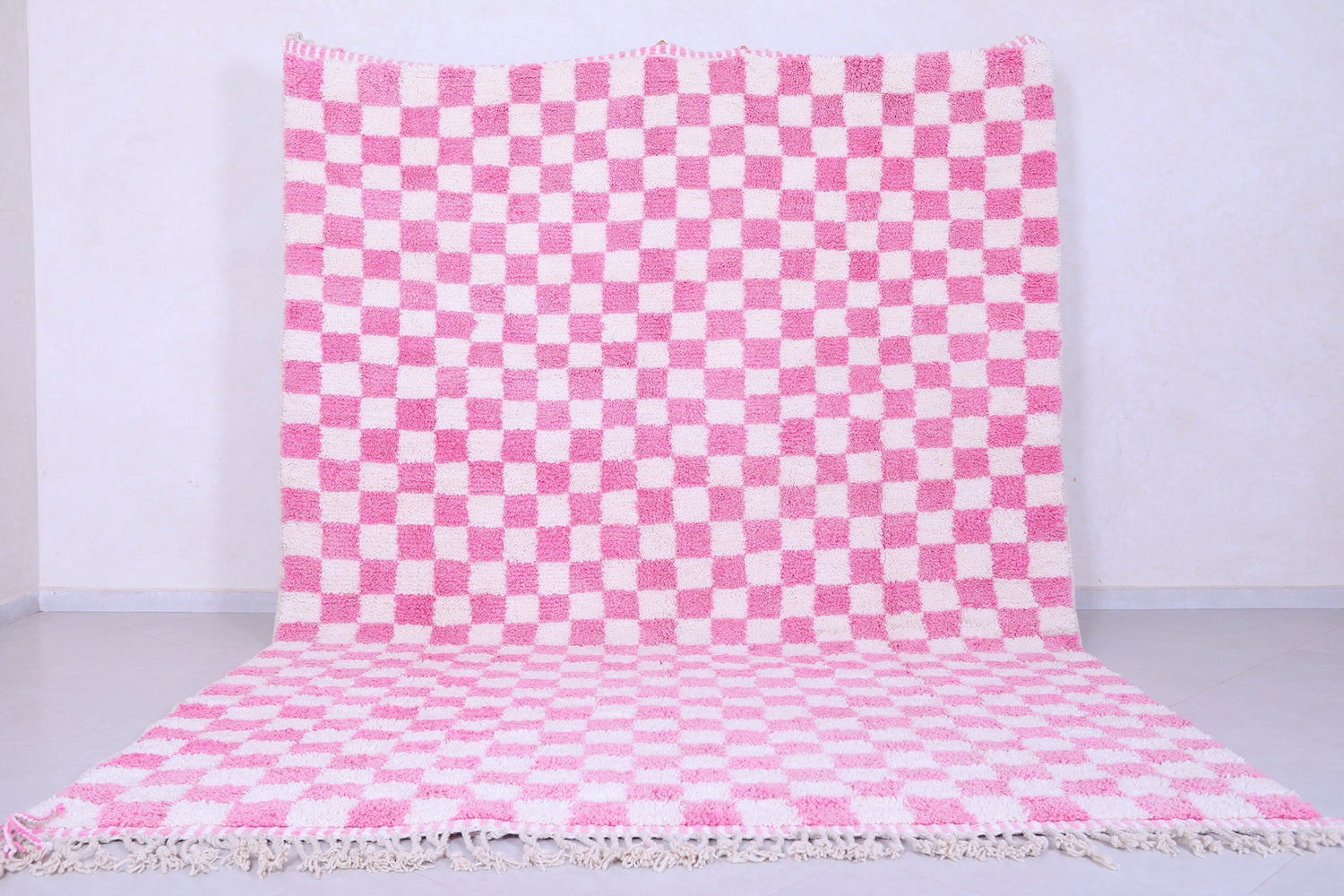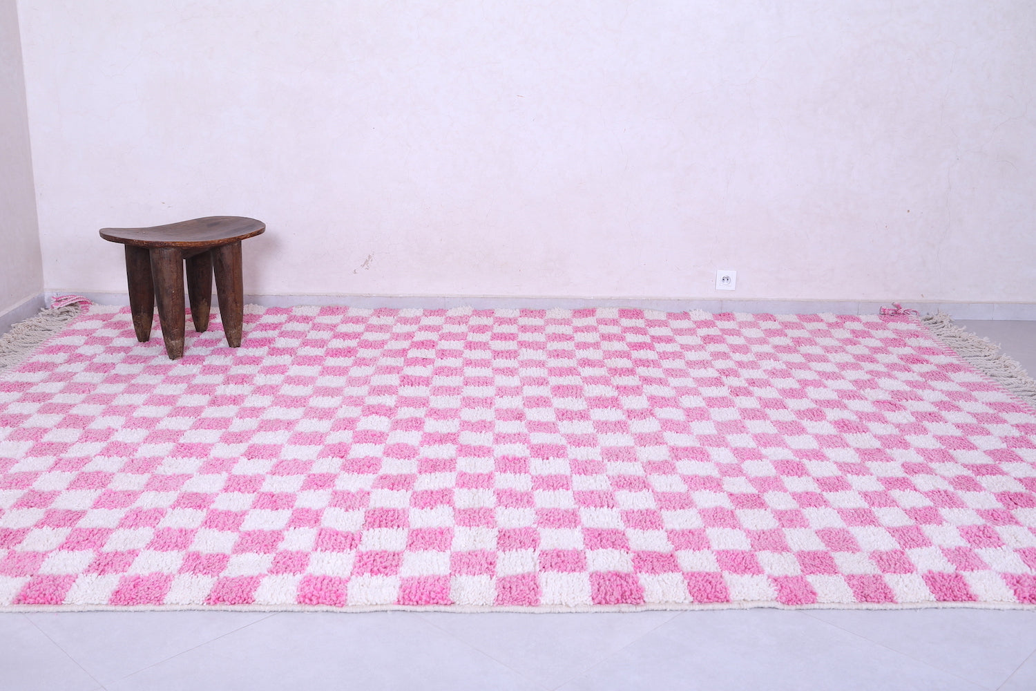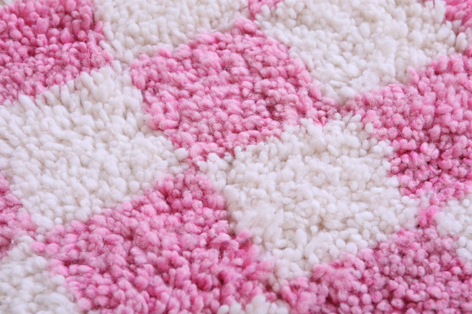 Moroccan Pink checkered rug - Checkered rug - Wool rug