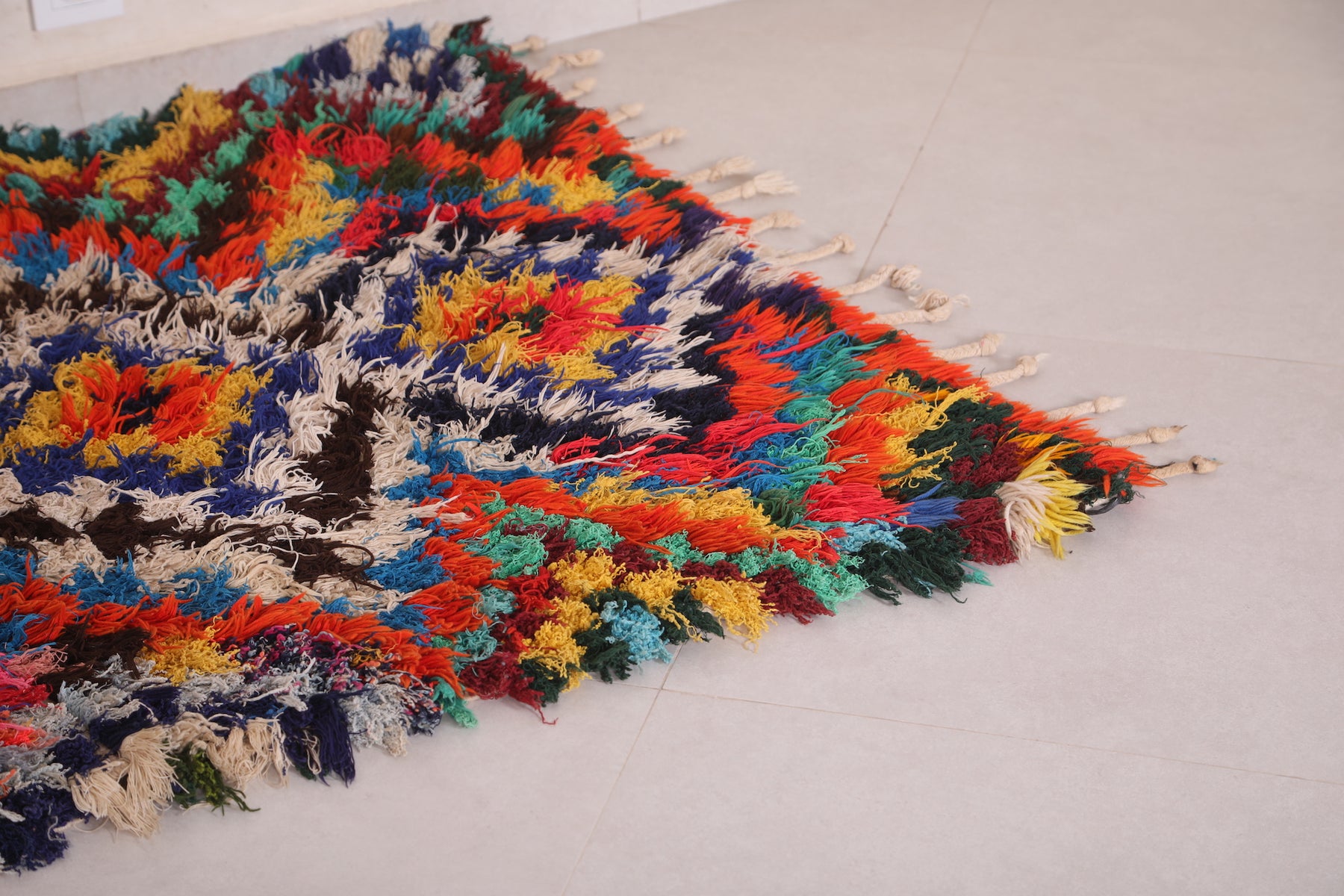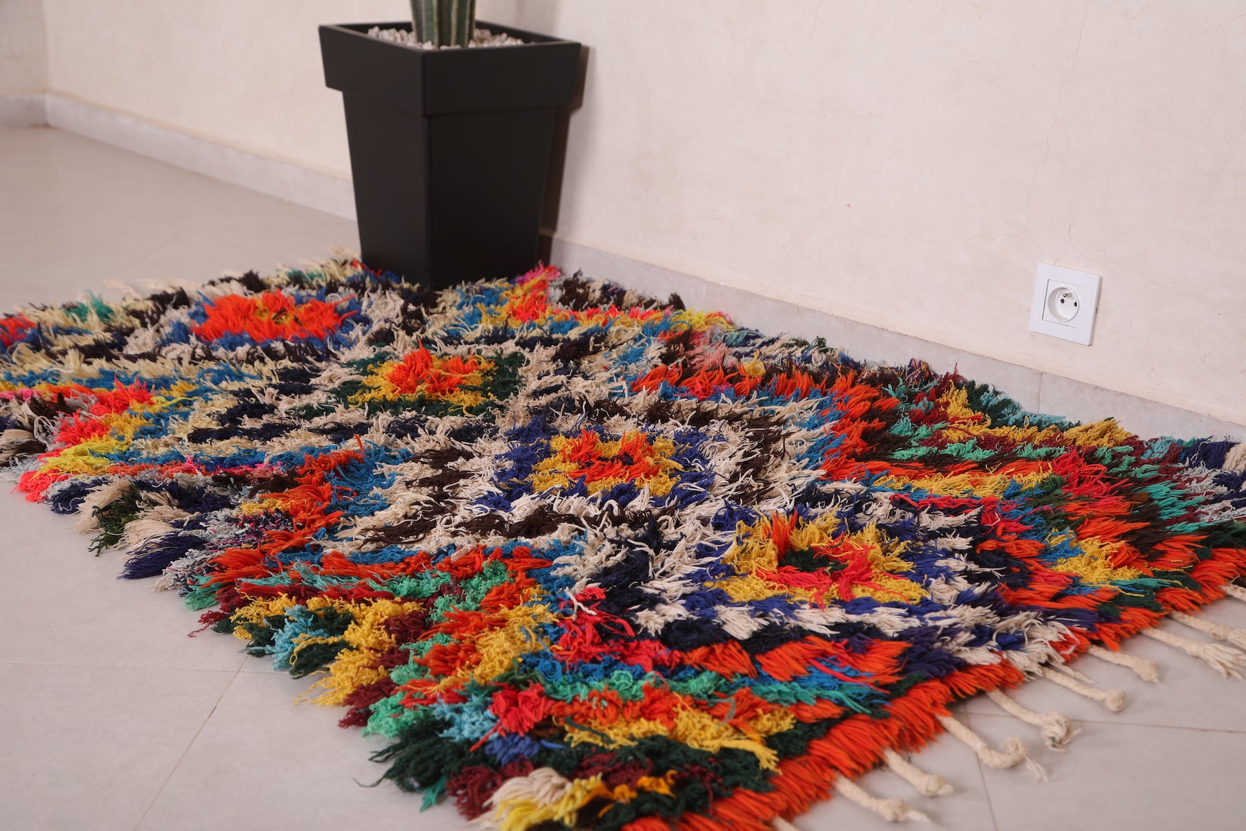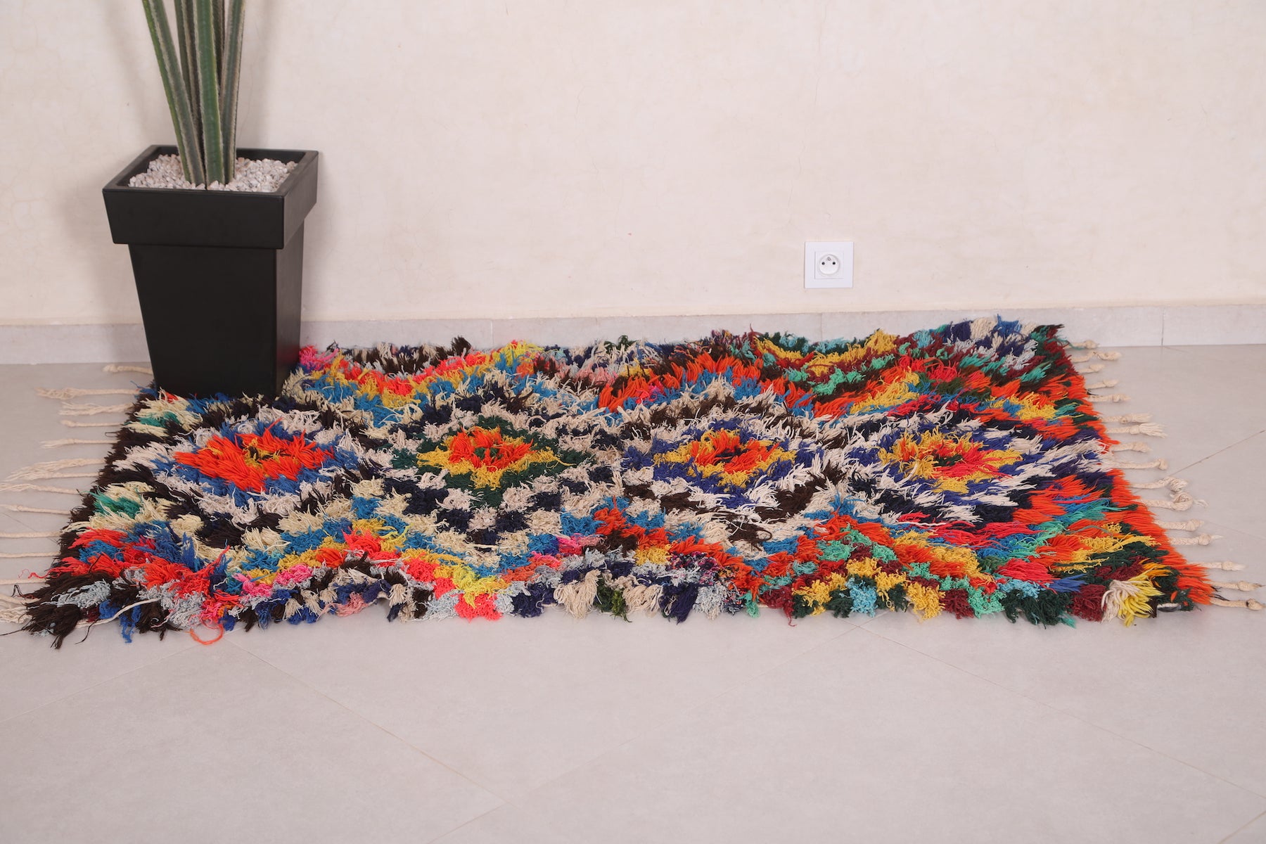 • Vibrant multicolor Boucherouite pattern for a bold, artistic touch.