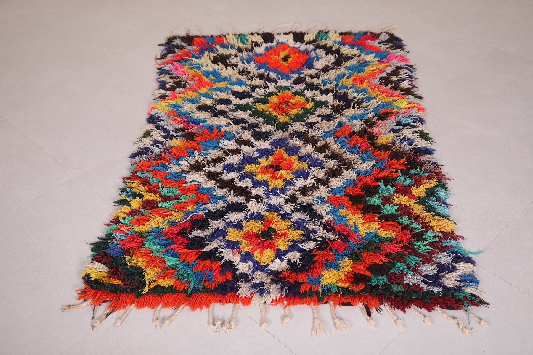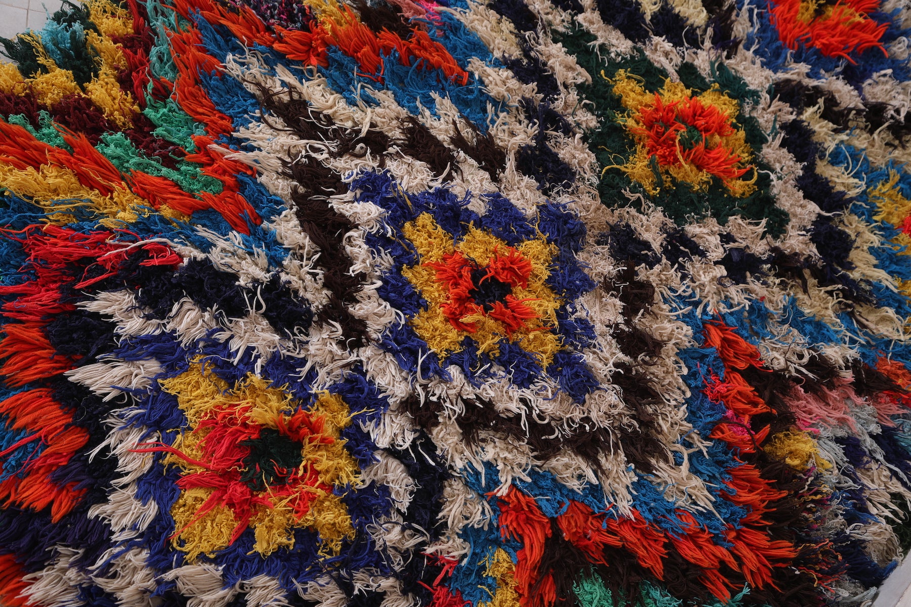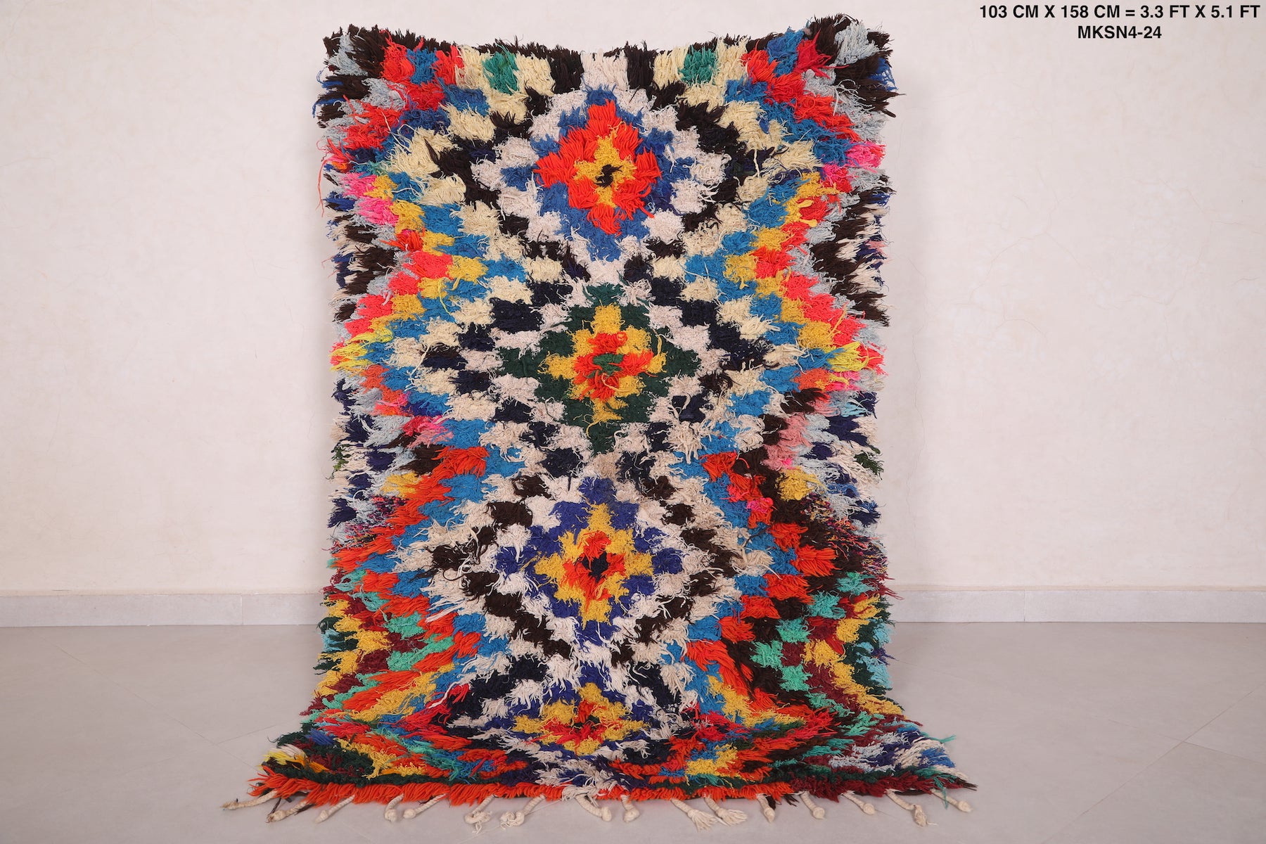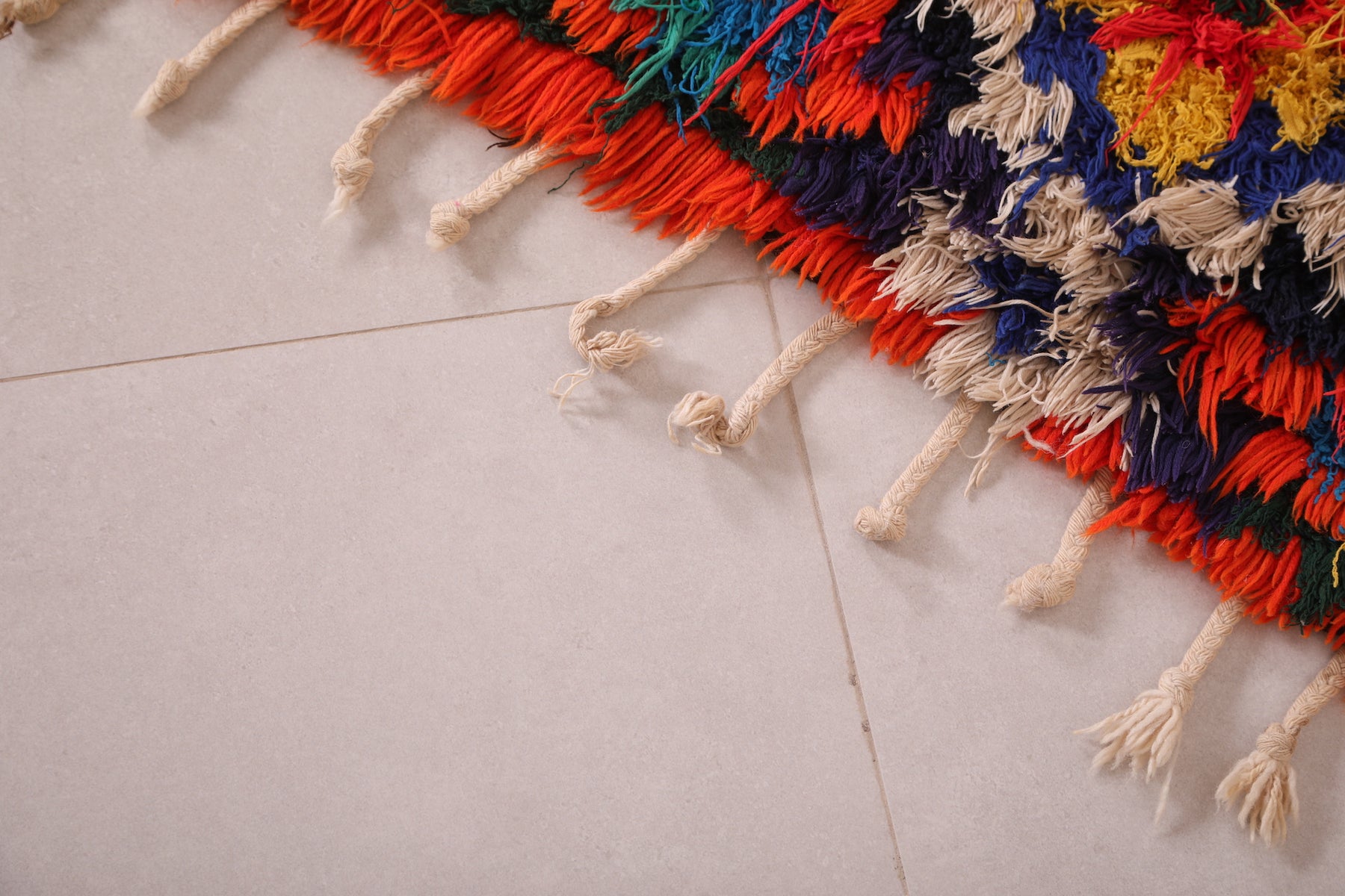 • Vibrant multicolor Boucherouite pattern for a bold, artistic touch.