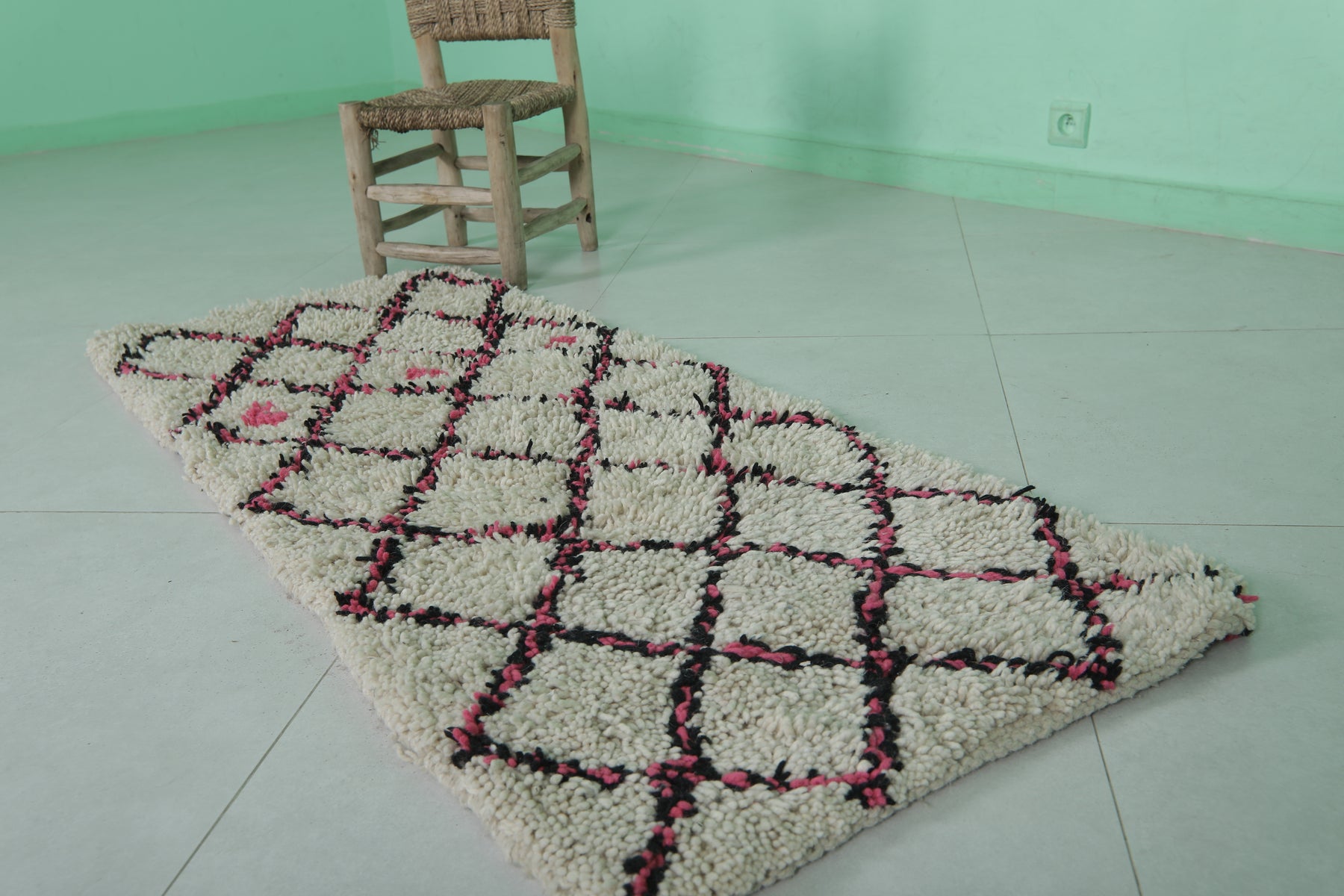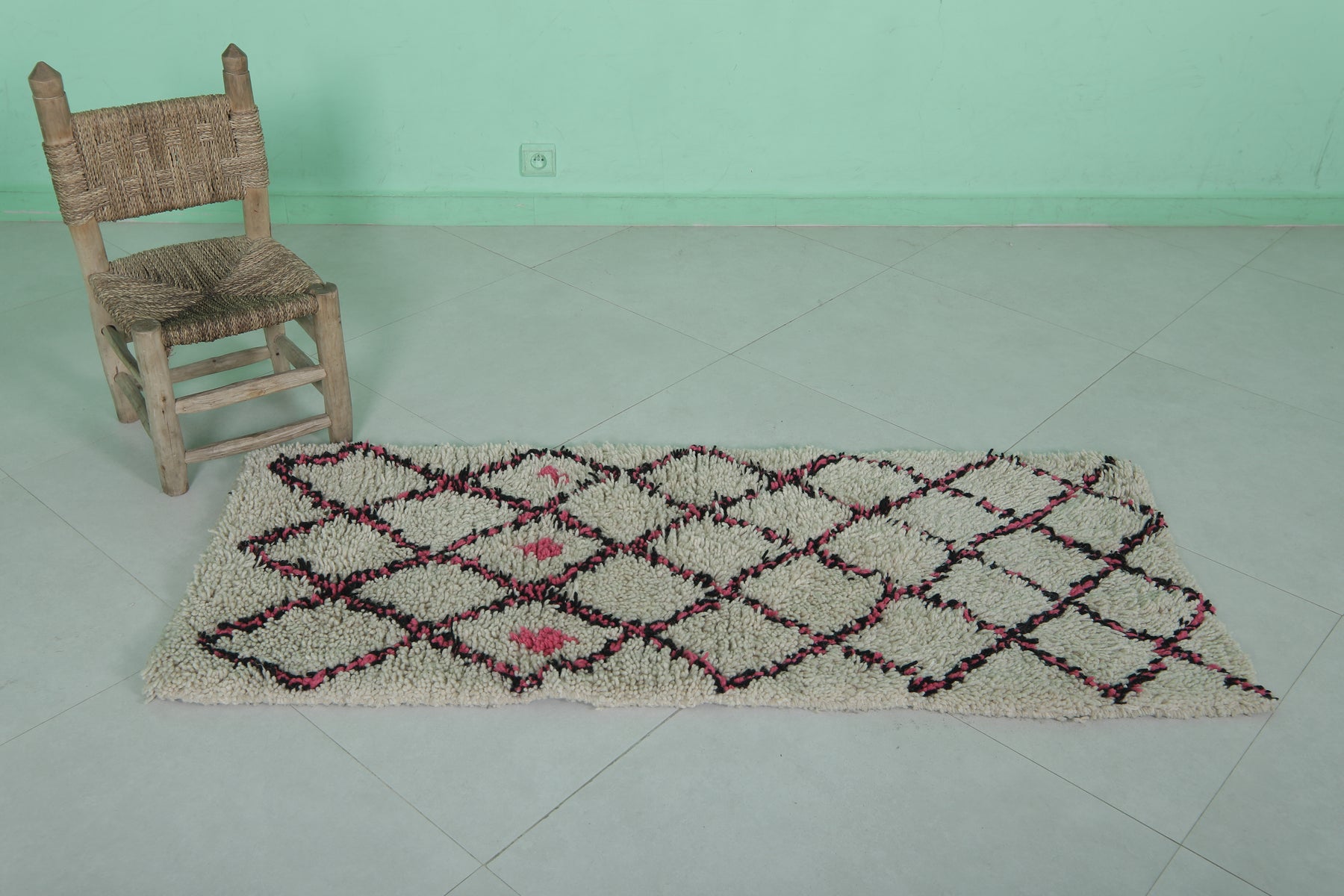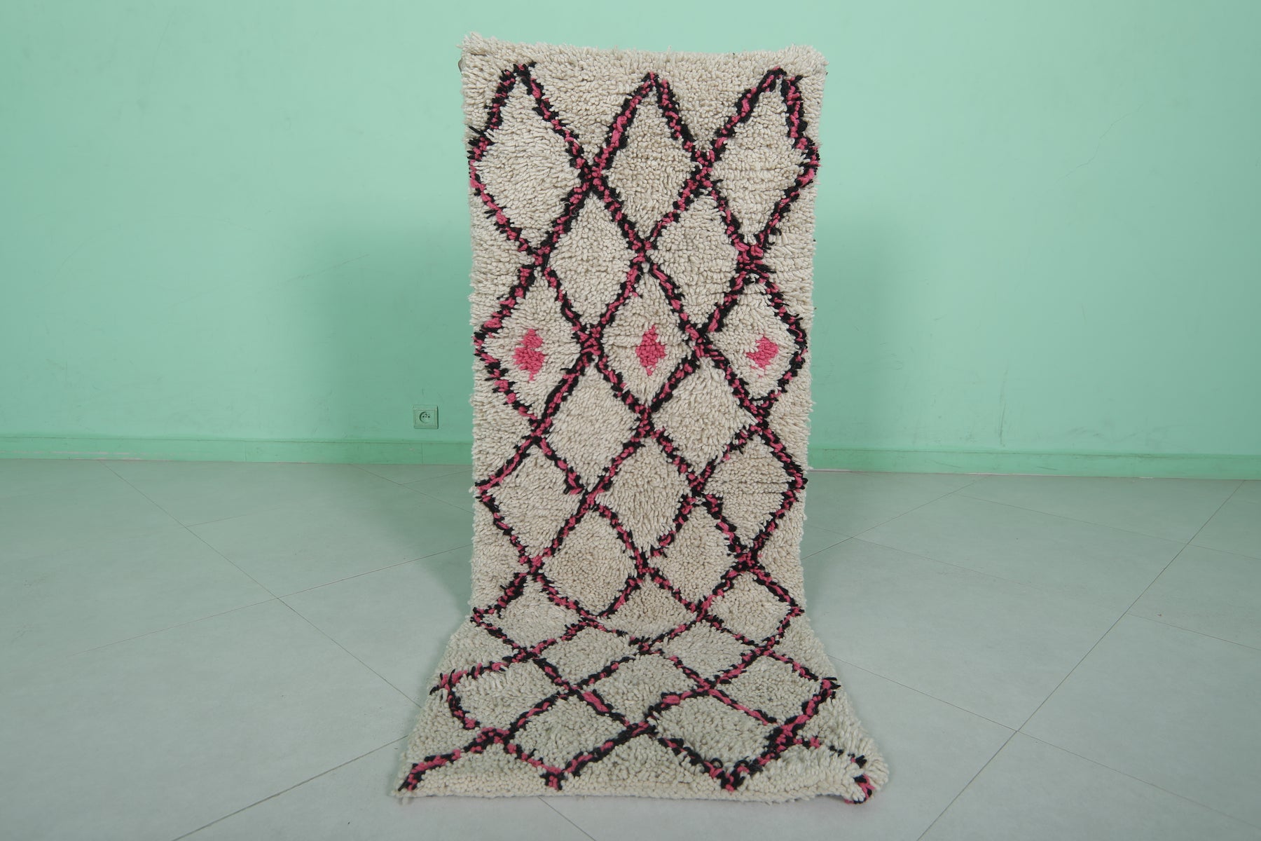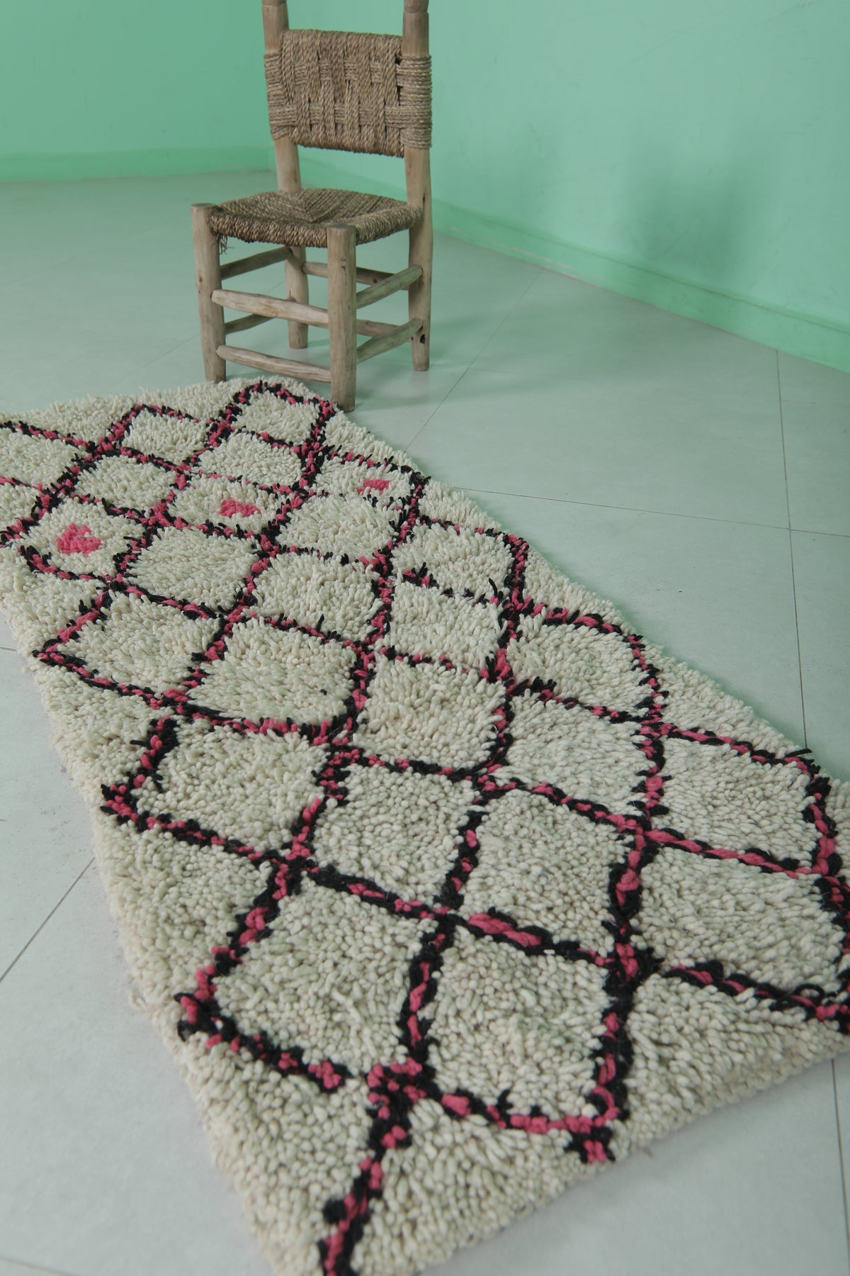 Trellis Moroccan rug - 2 x 5.1 Feet | Handwoven wool accent rug
