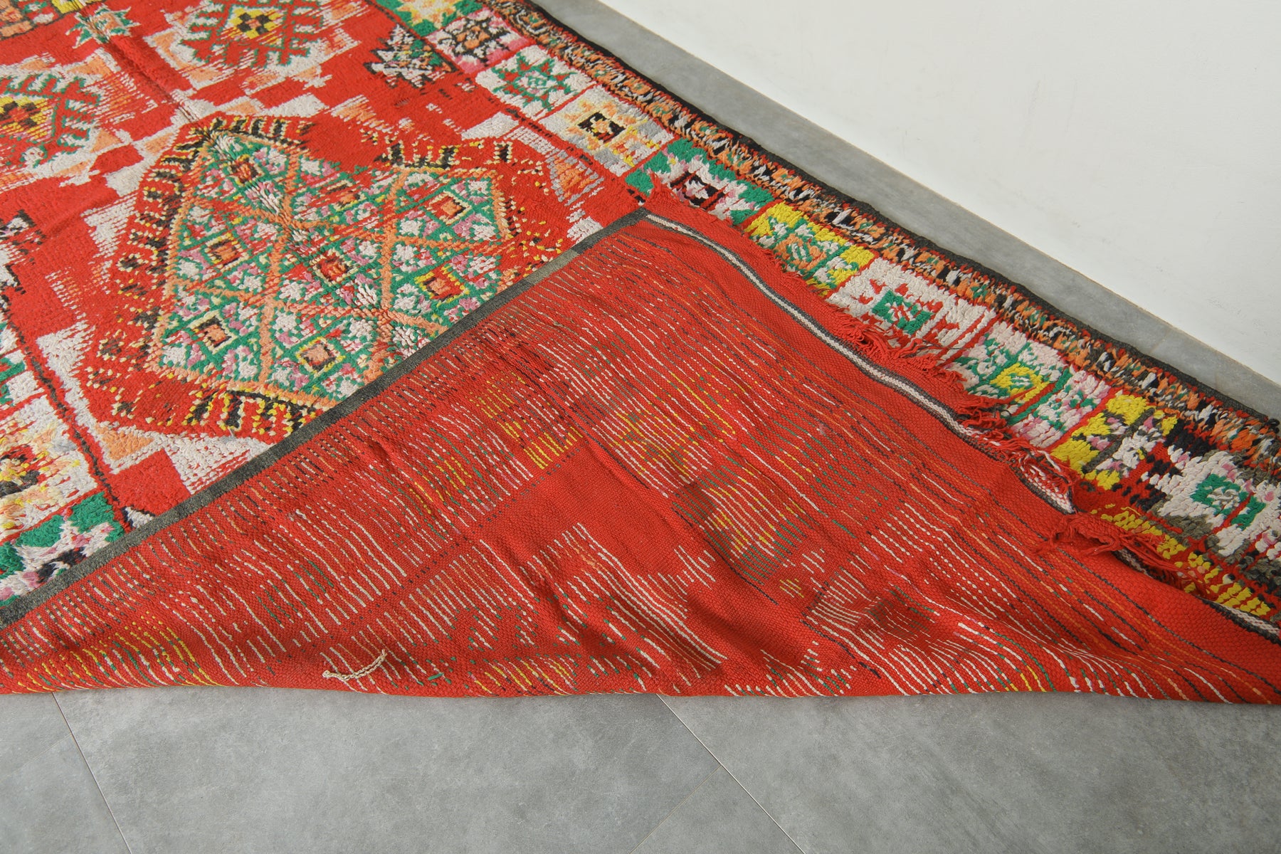 Red and multicolor geometric moroccan rug 5.5 ft x 8.3 ft - Handmade