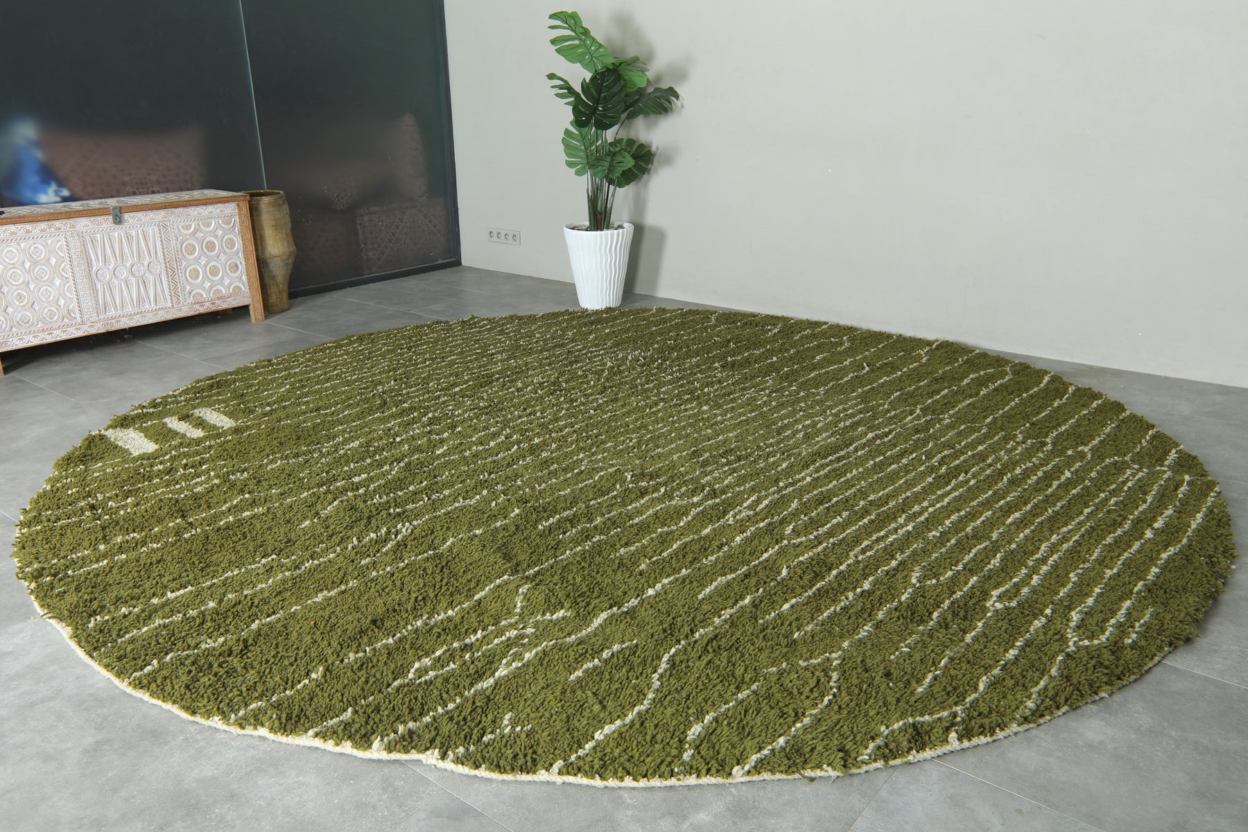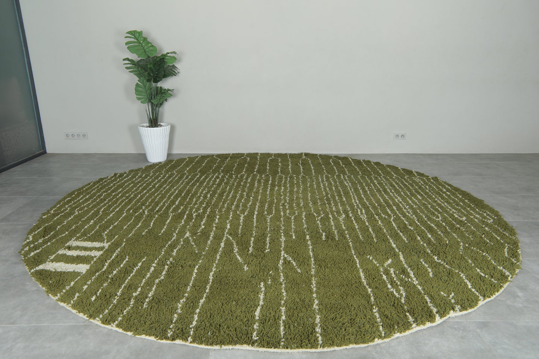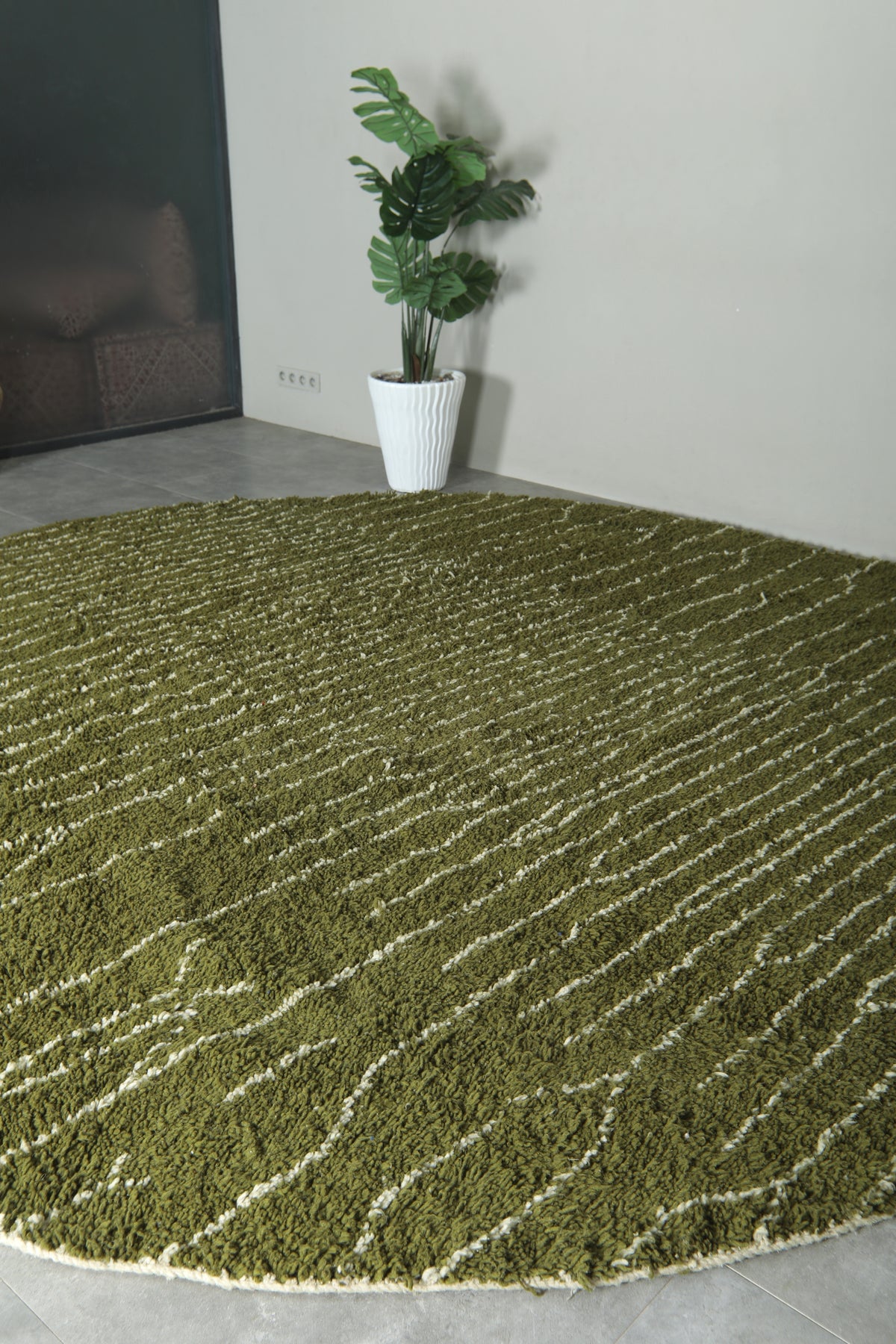 Round Moroccan Rug – Olive Green Wool Carpet - Custom Handwoven Rug