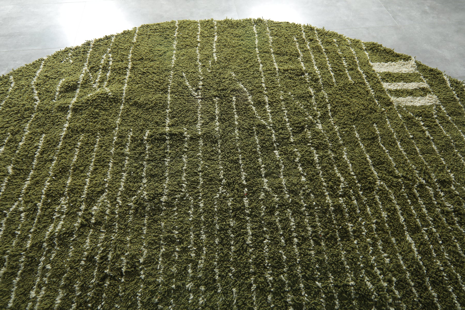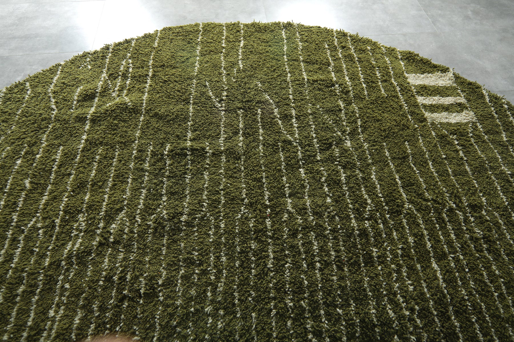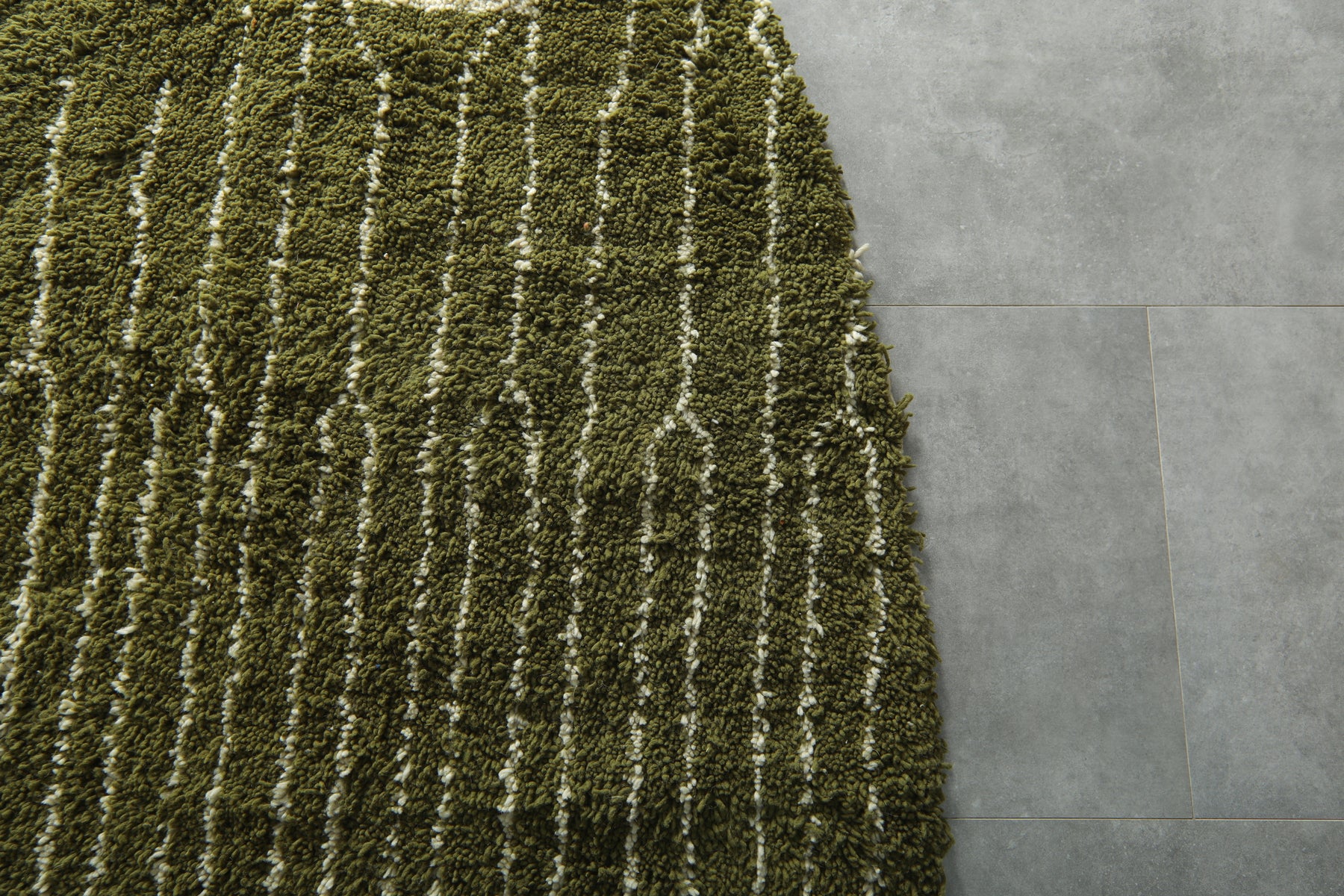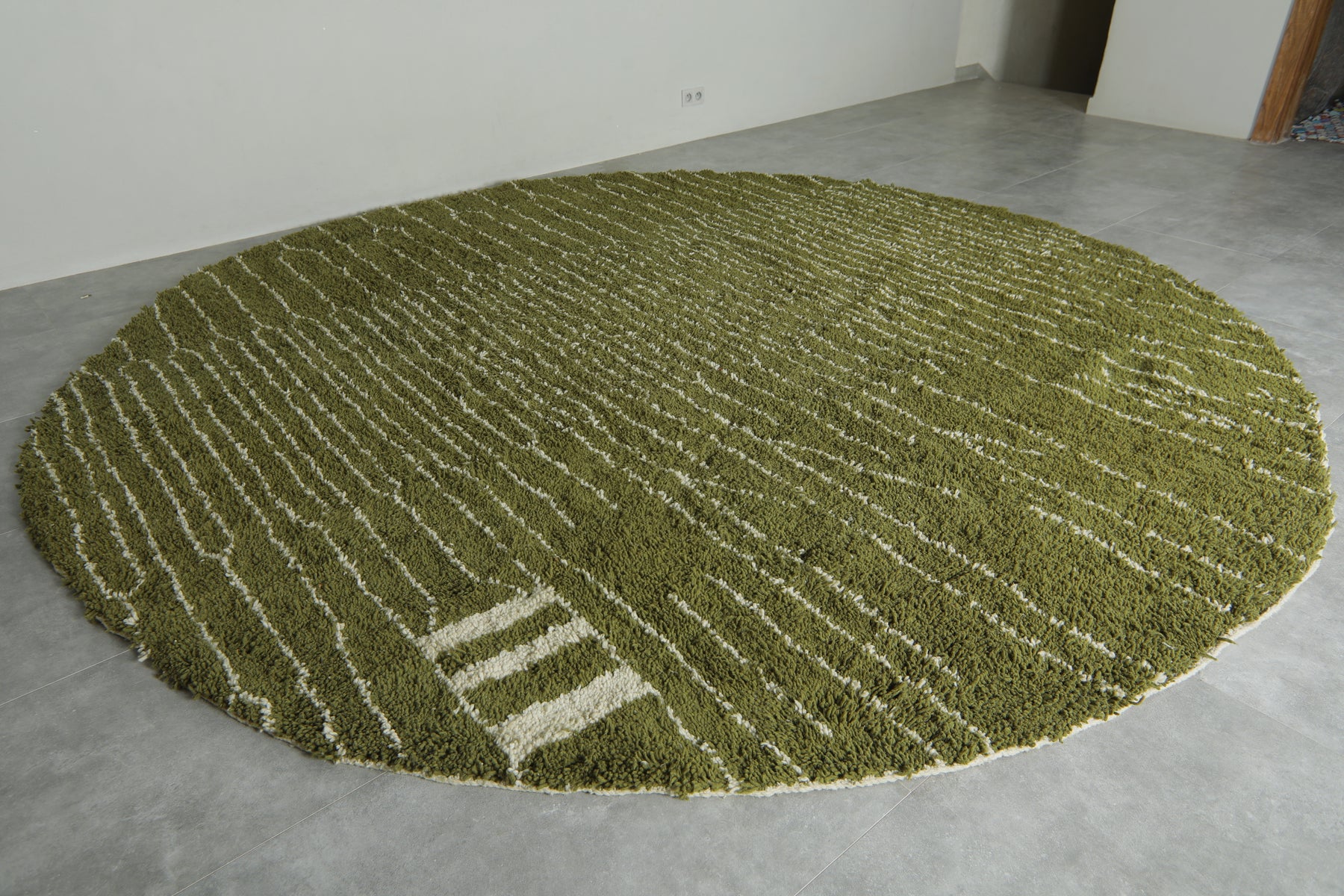 Round Moroccan Rug – Olive Green Wool Carpet - Custom Handwoven Rug