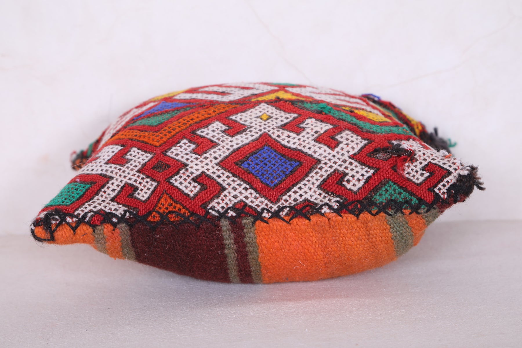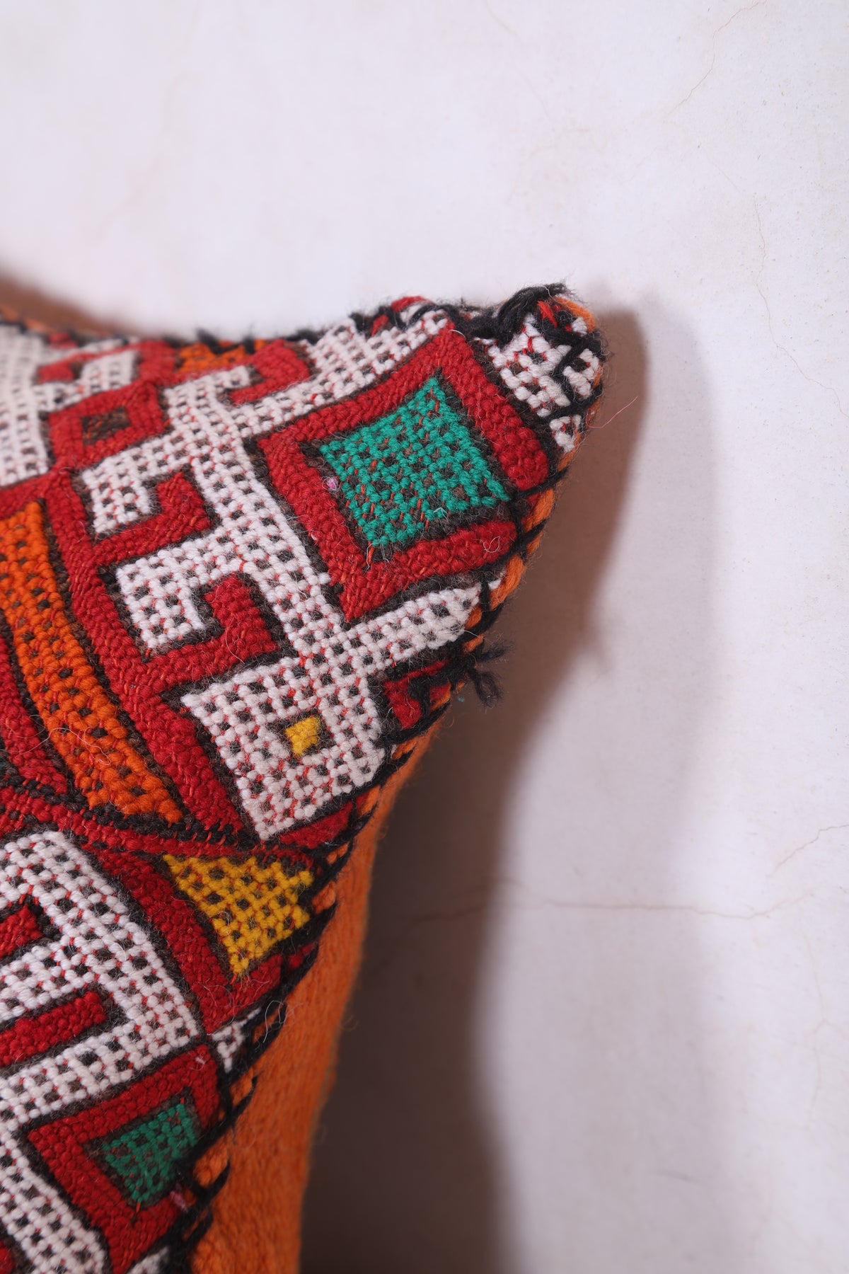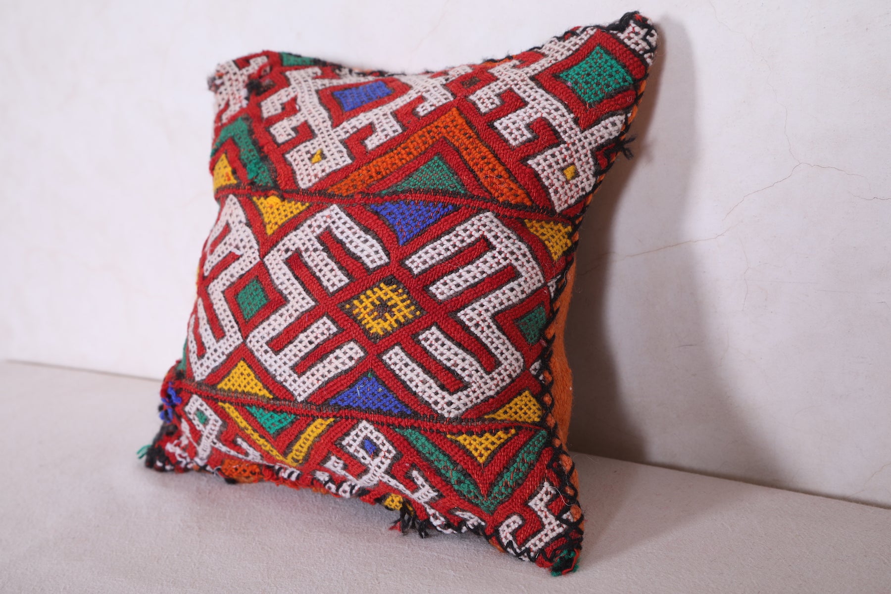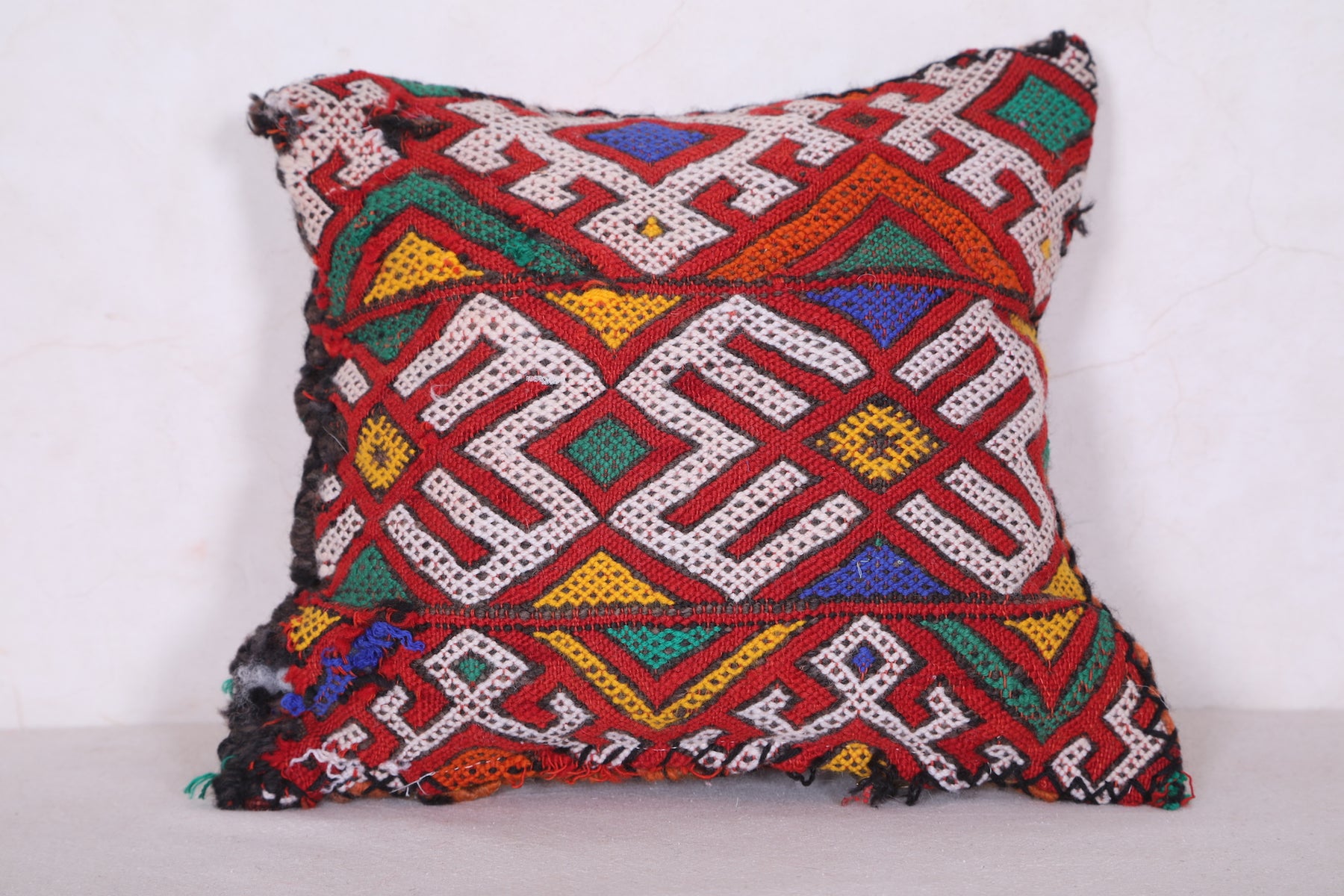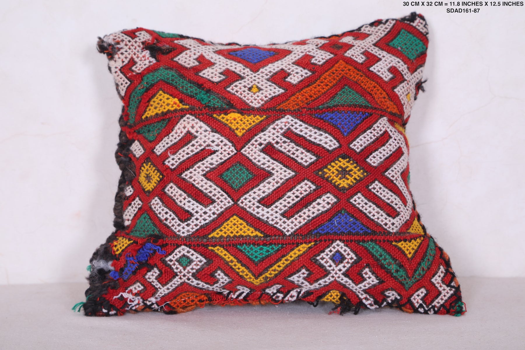 Add bold color and intricate craftsmanship to your décor with this Moroccan Pillow, sized at 11.8 x 12.5 inches (30 CM x 32 CM). Handwoven by skilled Moroccan artisans, this compact pillow features a vibrant geometric pattern bursting with rich reds, blues, oranges, and whites—perfect for adding a global accent to any space. Its square size makes it ideal for chairs, beds, or layered pillow displays.