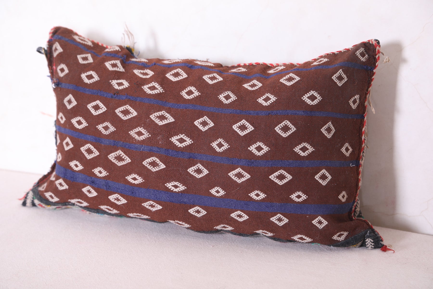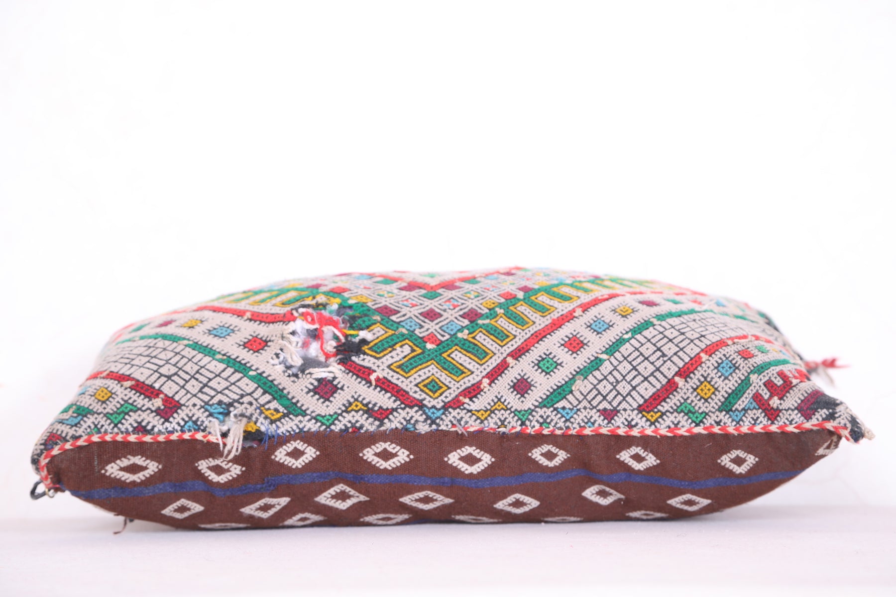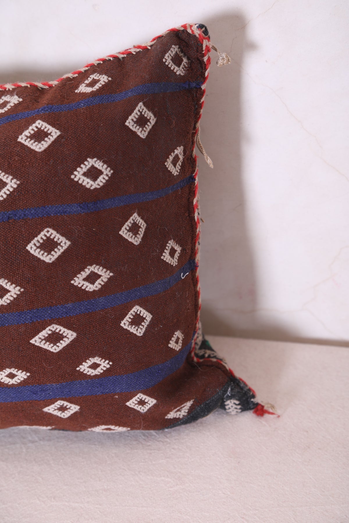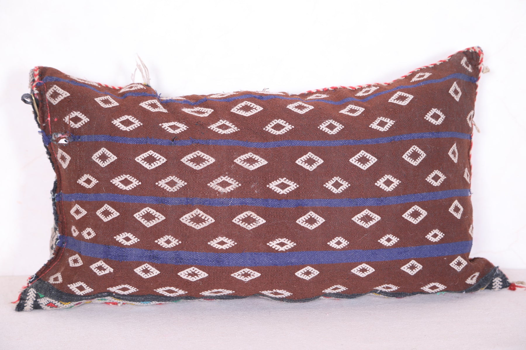 This 12.5 x 22 inches Vintage Berber Kilim Pillow features a bold central diamond medallion surrounded by vibrant tribal motifs in green, red, pink, and teal—handwoven with rich texture and timeless artistry. Ideal for beds, benches, or boho-inspired living spaces.