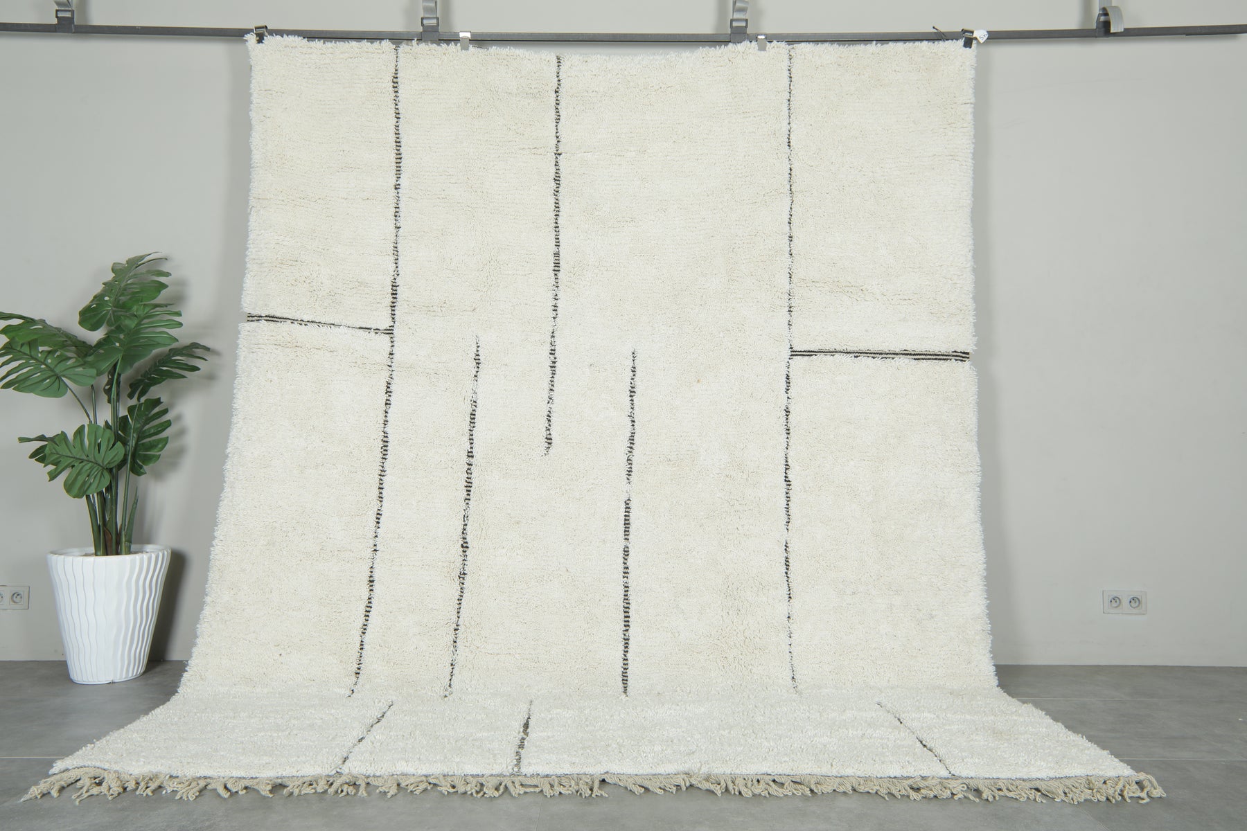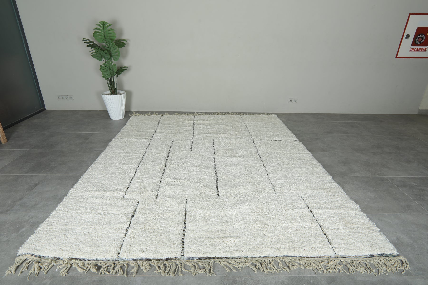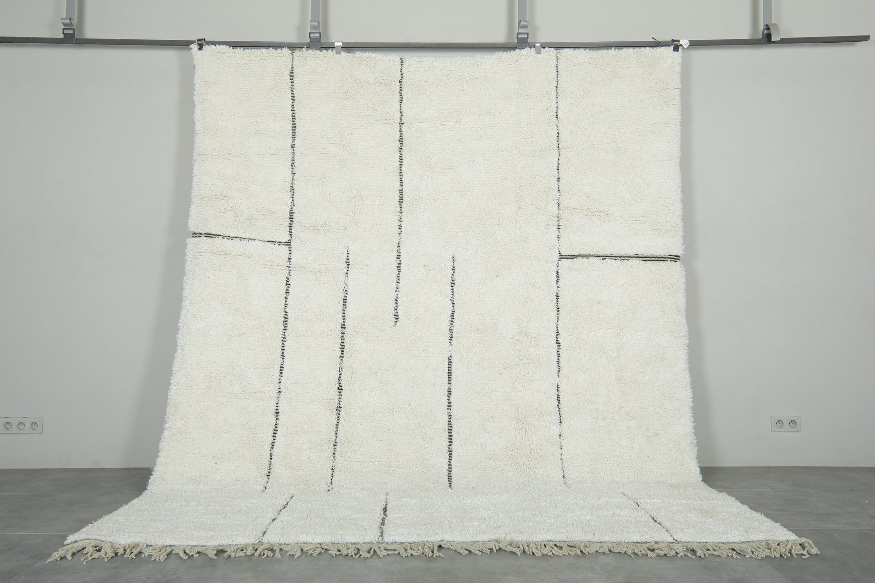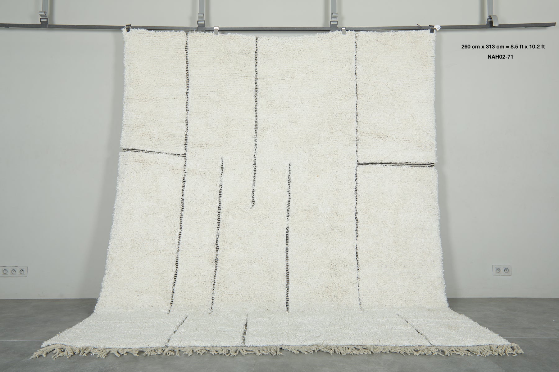 White beni ourain Moroccan rug with black geometric lines - 8.5 ft x 10.2 ft