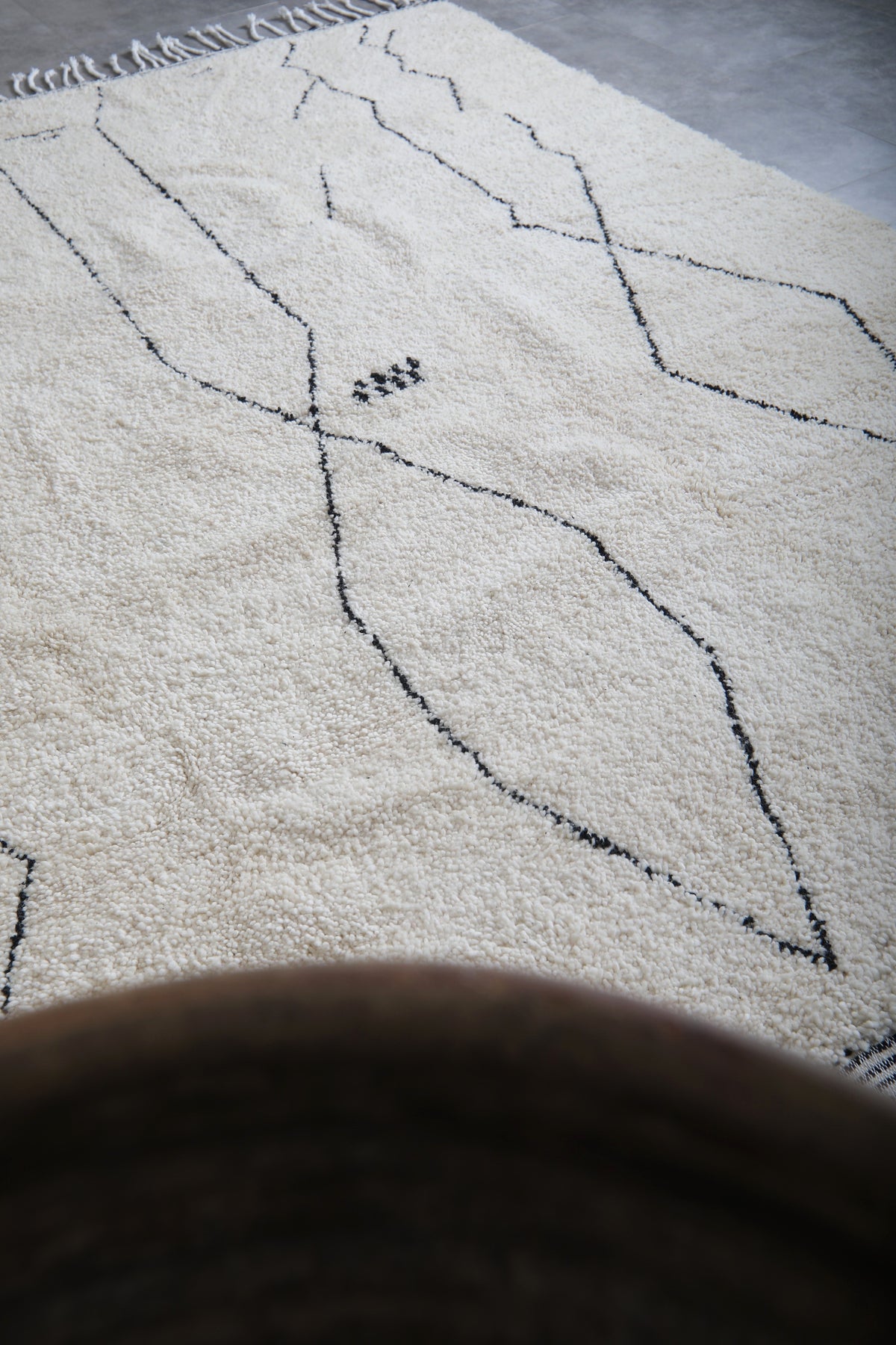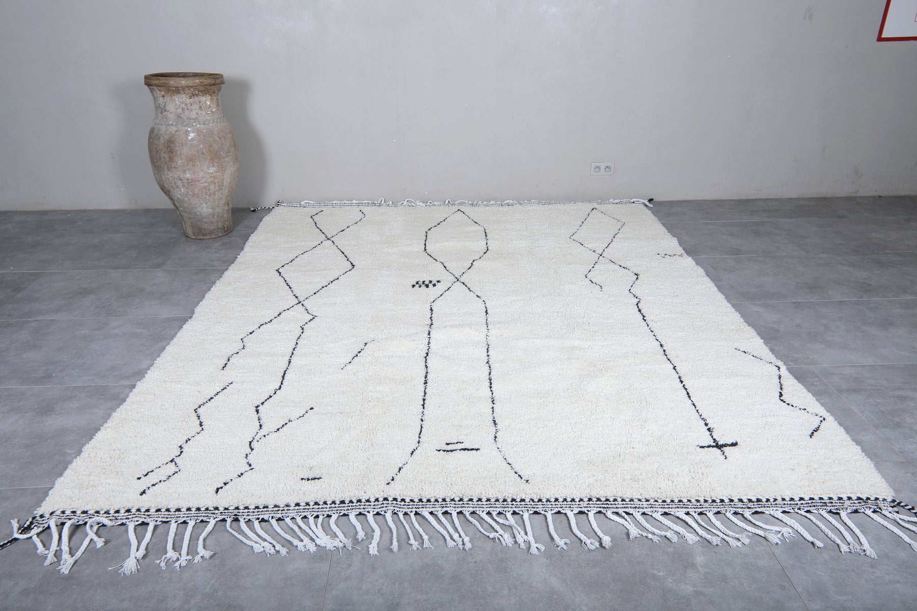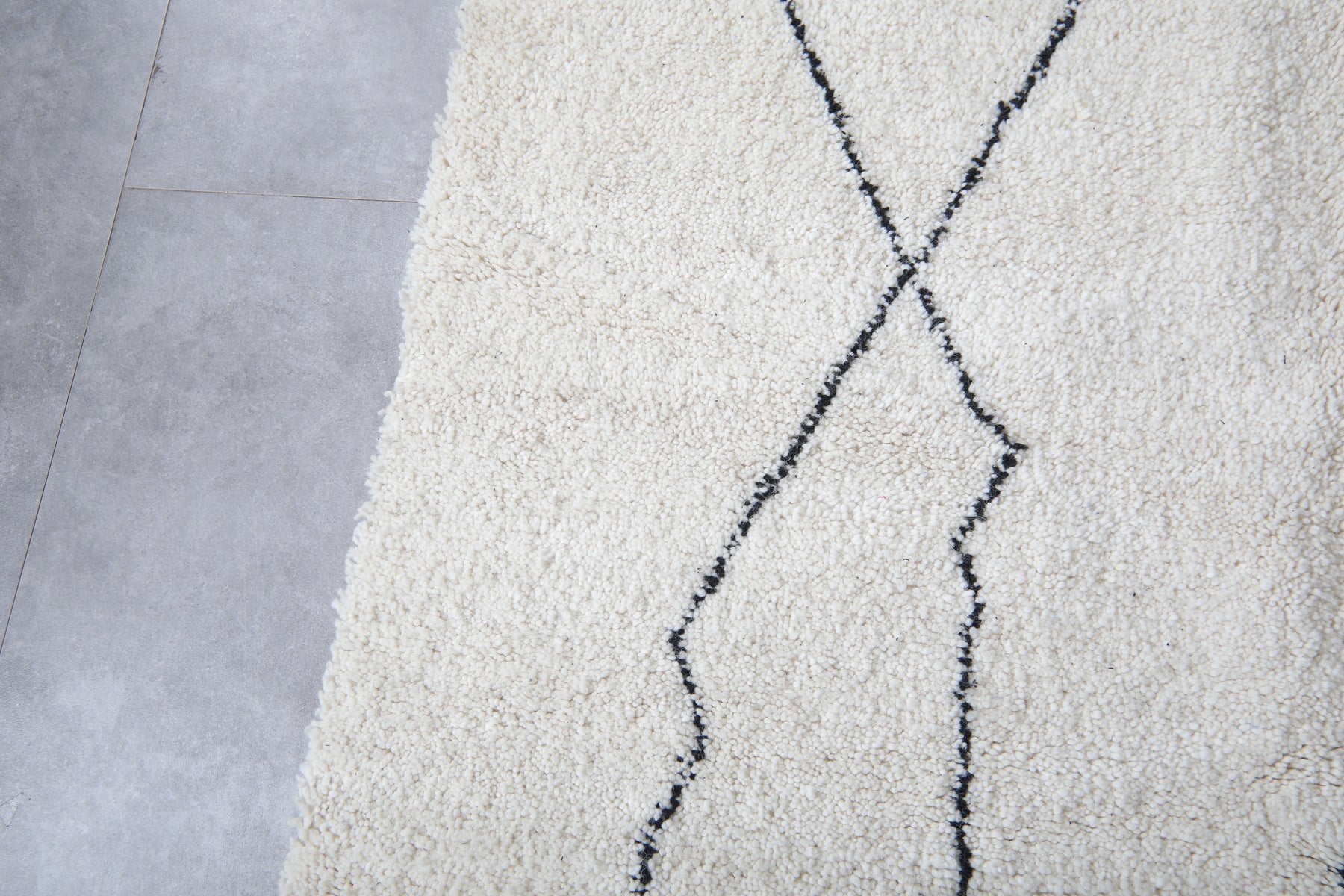 White beni ourain rug with black geometric lines - Custom Moroccan rug