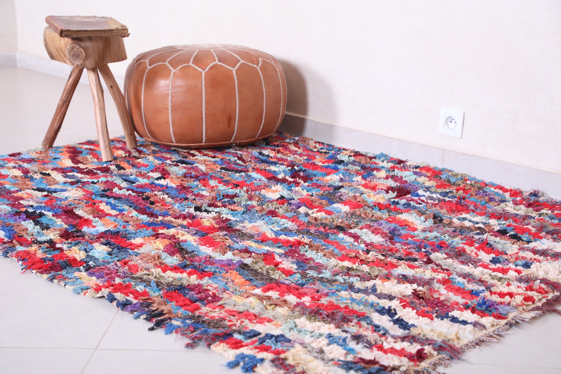 Colorful Boucherouite Rug 4.5 x 6 Feet - Handmade Moroccan Rug - Boucherouite Rugs