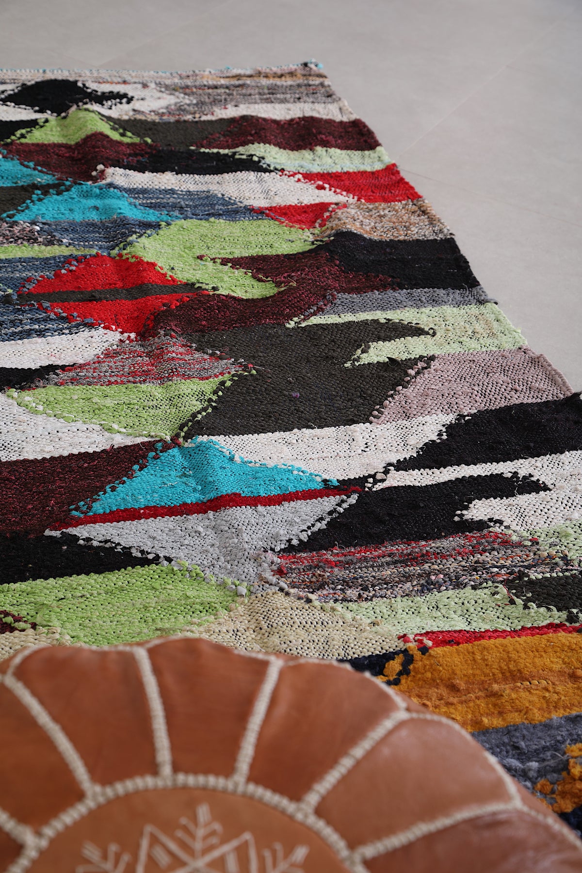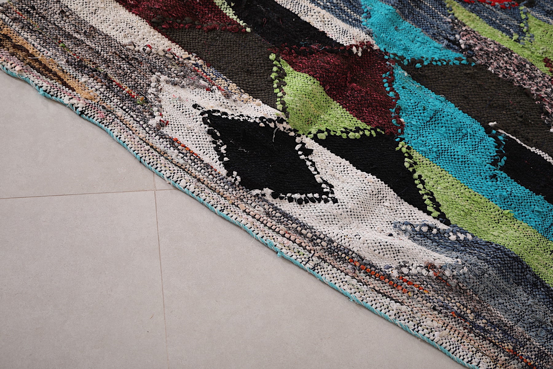 Brighten your space with this vibrant 3.5 x 7.3 FT Moroccan Kilim Rug. Featuring a dynamic patchwork of geometric shapes in bold hues, this handwoven masterpiece merges traditional craftsmanship with modern aesthetics. Ideal for living rooms, bedrooms, or offices, this eco-friendly rug brings warmth and personality to any setting.