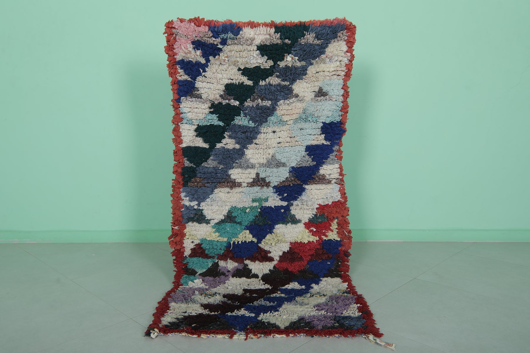 Add a bold burst of color to your home with this Colorful Moroccan Runner Rug (2.6 x 5.6 FT), featuring dynamic slanted checker patterns in rich jewel tones.