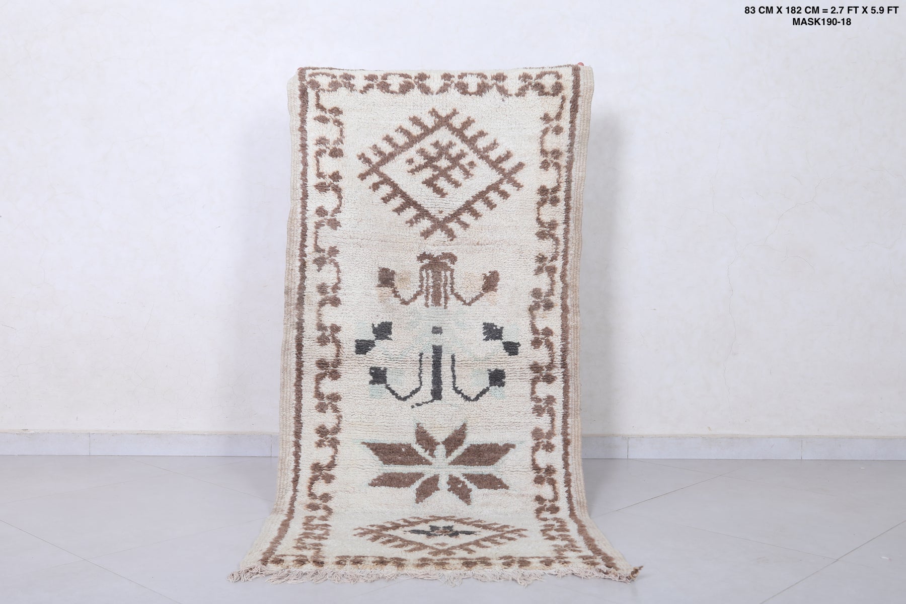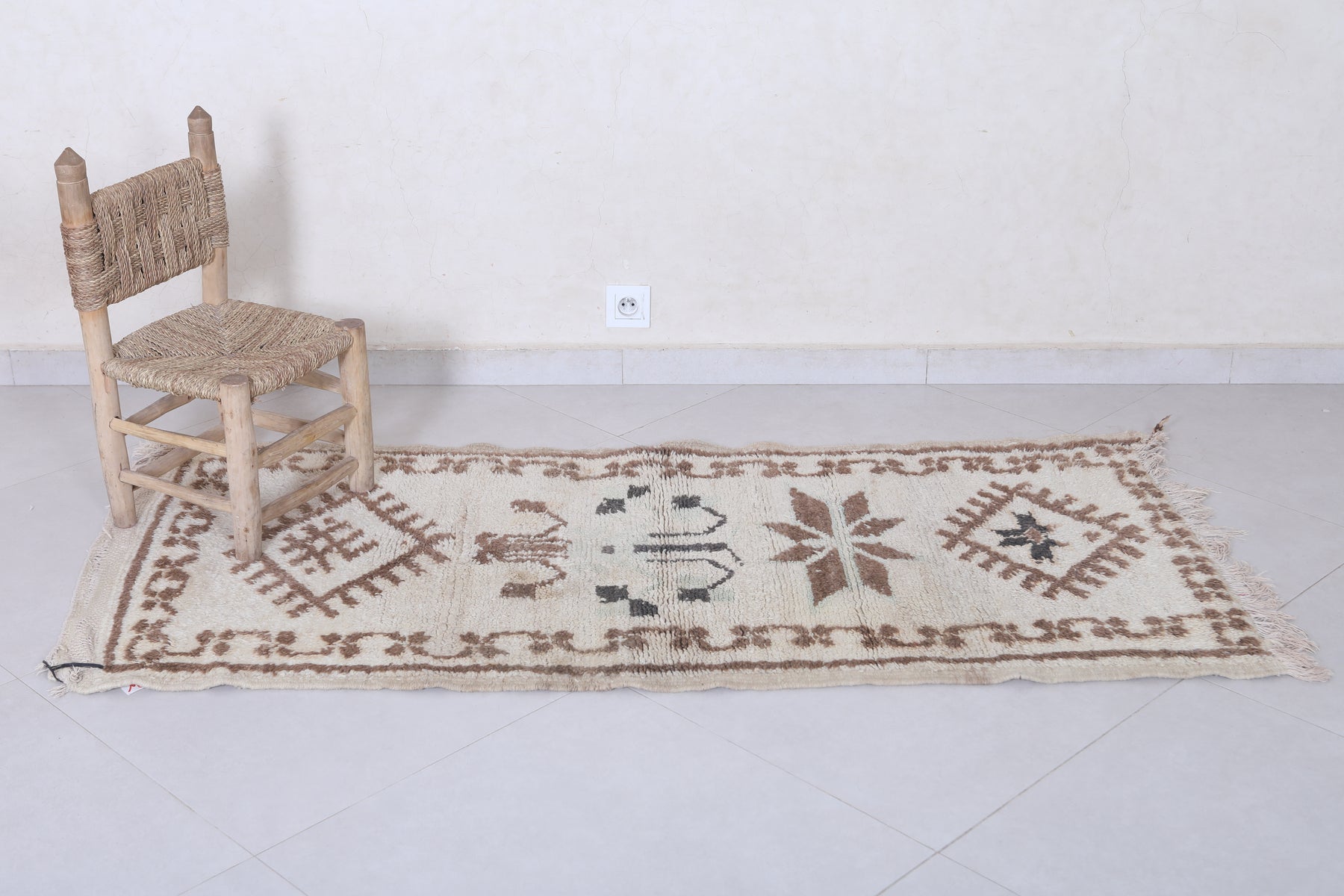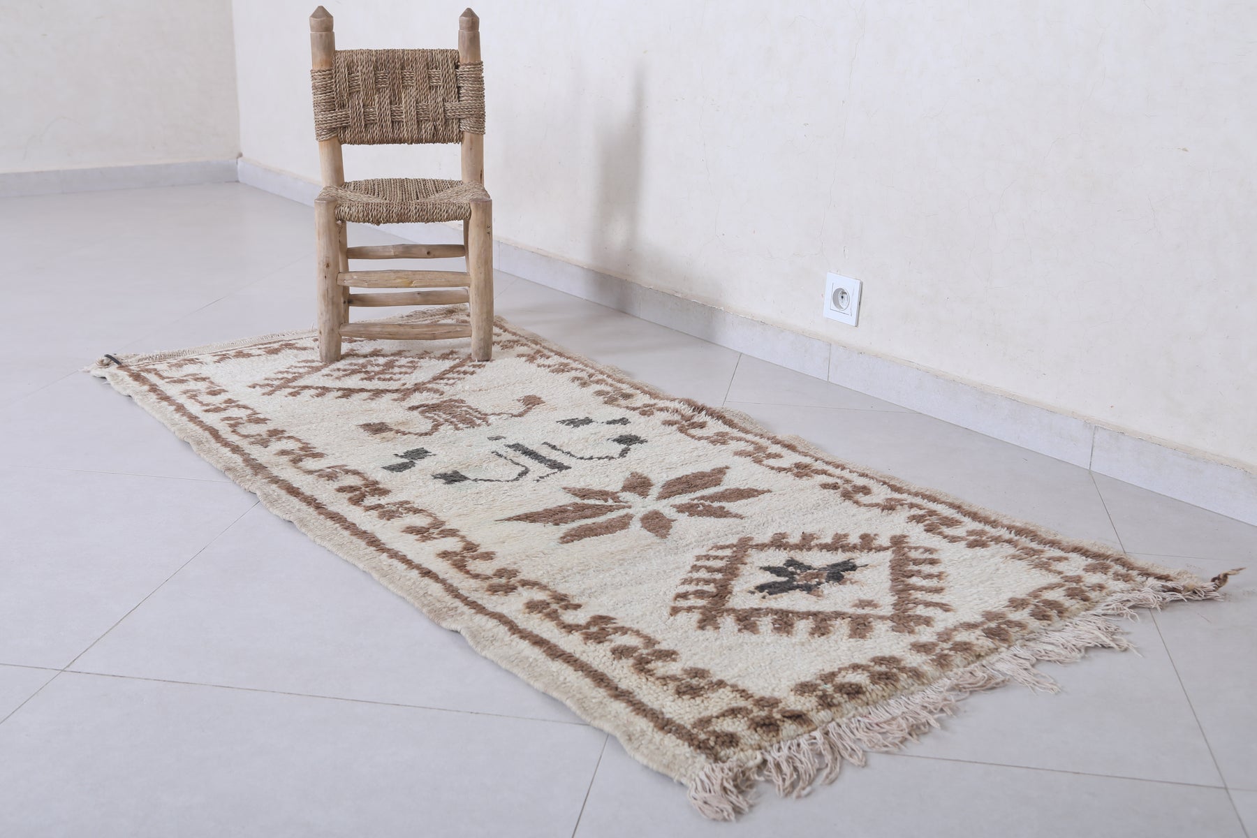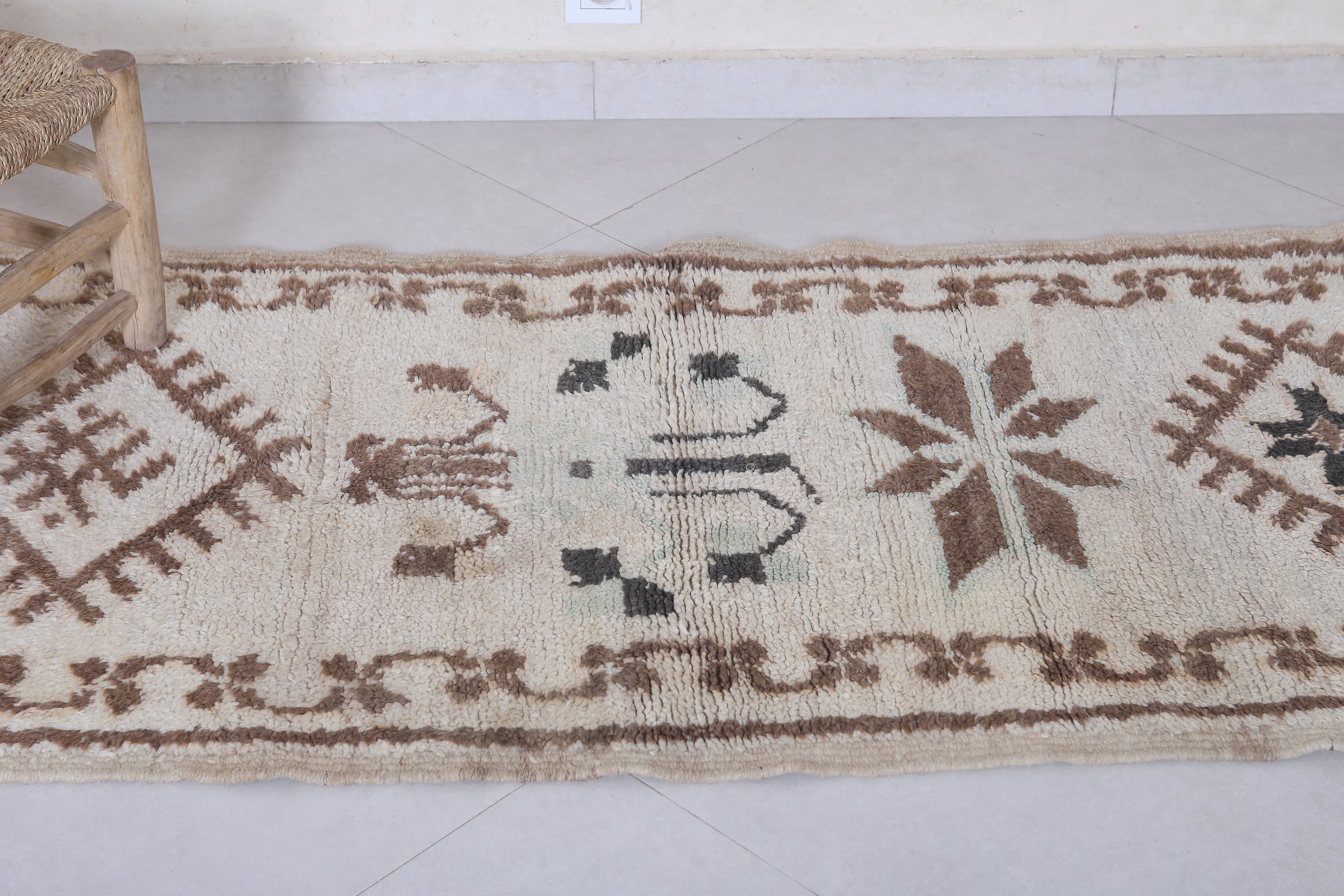 Transform your space with this elegant Moroccan Berber rug, measuring 2.7 x 5.9 feet. Handwoven by skilled artisans, this exquisite piece features intricate traditional motifs in soothing beige, brown, and white tones. Crafted from premium wool, it offers a soft texture, exceptional durability, and timeless charm. A perfect addition to living rooms, bedrooms, or hallways, bringing warmth and cultural artistry to any decor.