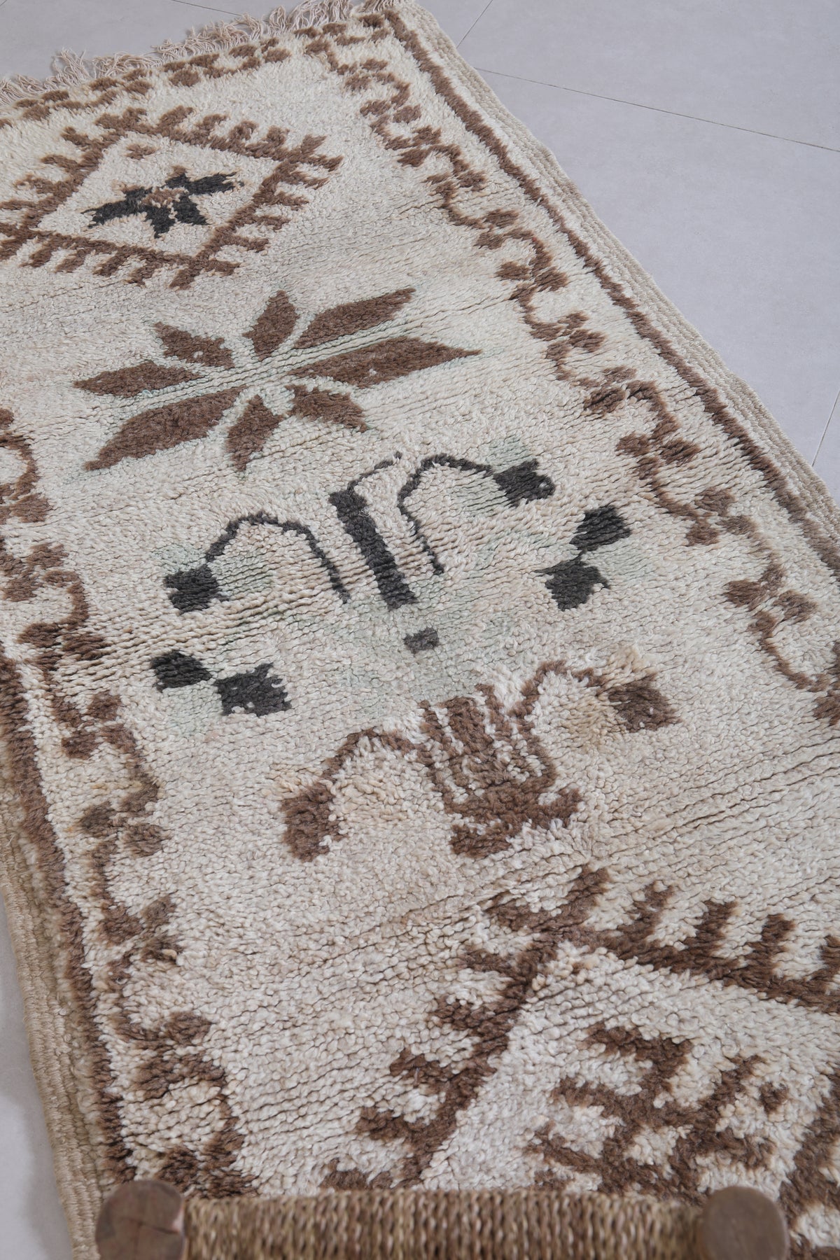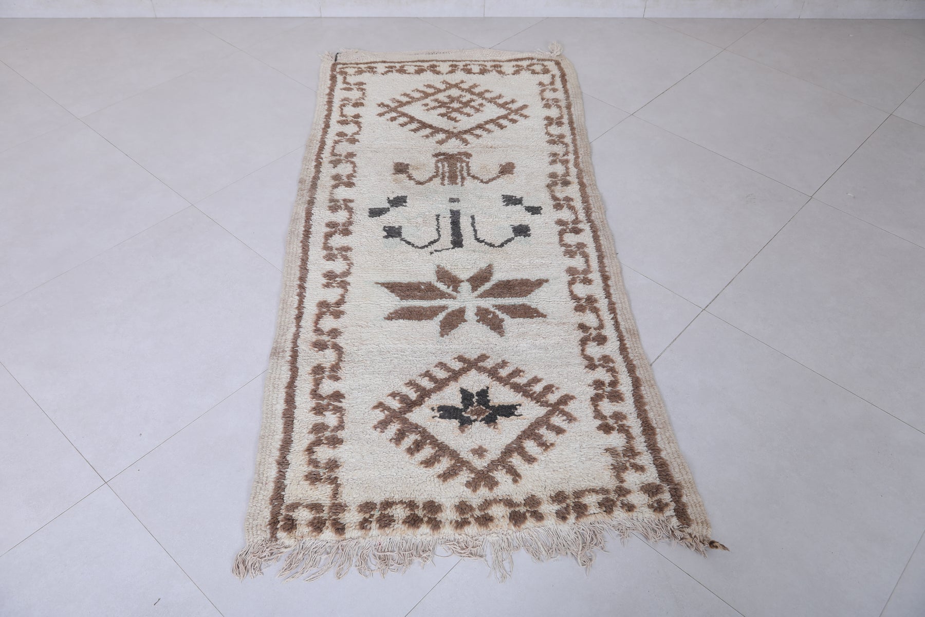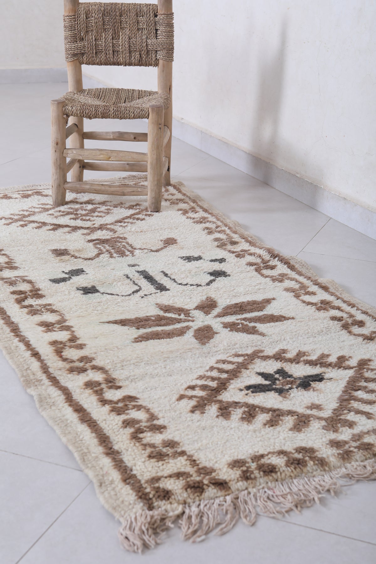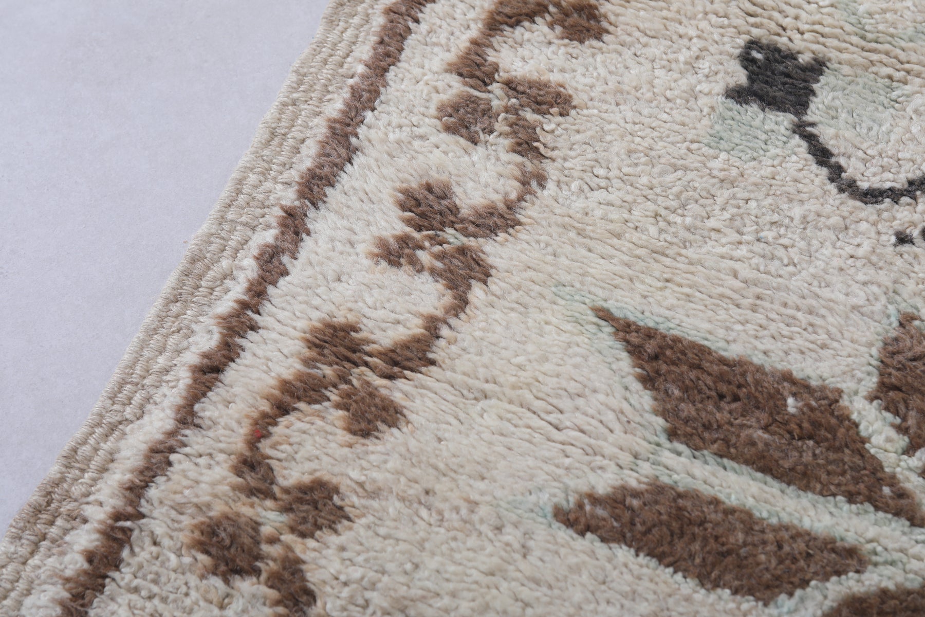 Transform your space with this elegant Moroccan Berber rug, measuring 2.7 x 5.9 feet. Handwoven by skilled artisans, this exquisite piece features intricate traditional motifs in soothing beige, brown, and white tones. Crafted from premium wool, it offers a soft texture, exceptional durability, and timeless charm. A perfect addition to living rooms, bedrooms, or hallways, bringing warmth and cultural artistry to any decor.