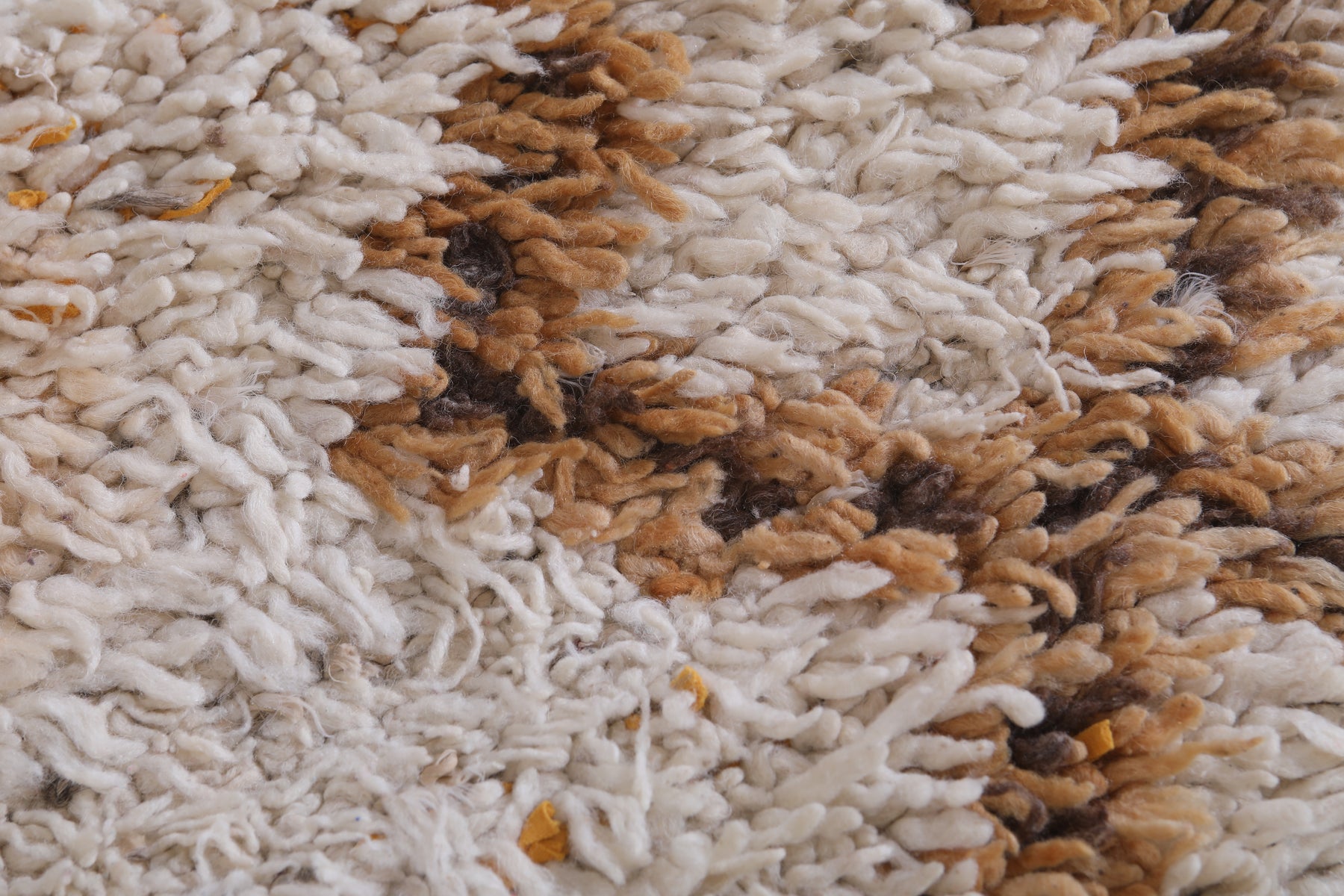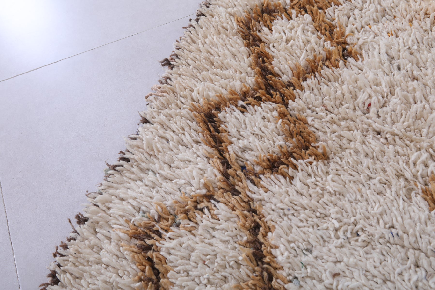 Add a touch of tradition to your home with this authentic Moroccan Berber rug, measuring 3 x 6.3 feet. Showcasing warm golden-brown geometric diamond patterns on a soft ivory background, this rug exudes elegance and authenticity. Handmade by skilled artisans, it’s perfect for creating a cozy and inviting atmosphere in any space. Durable and versatile, this timeless piece complements both modern and traditional decor styles. A unique addition to enhance the warmth and charm of your interior.