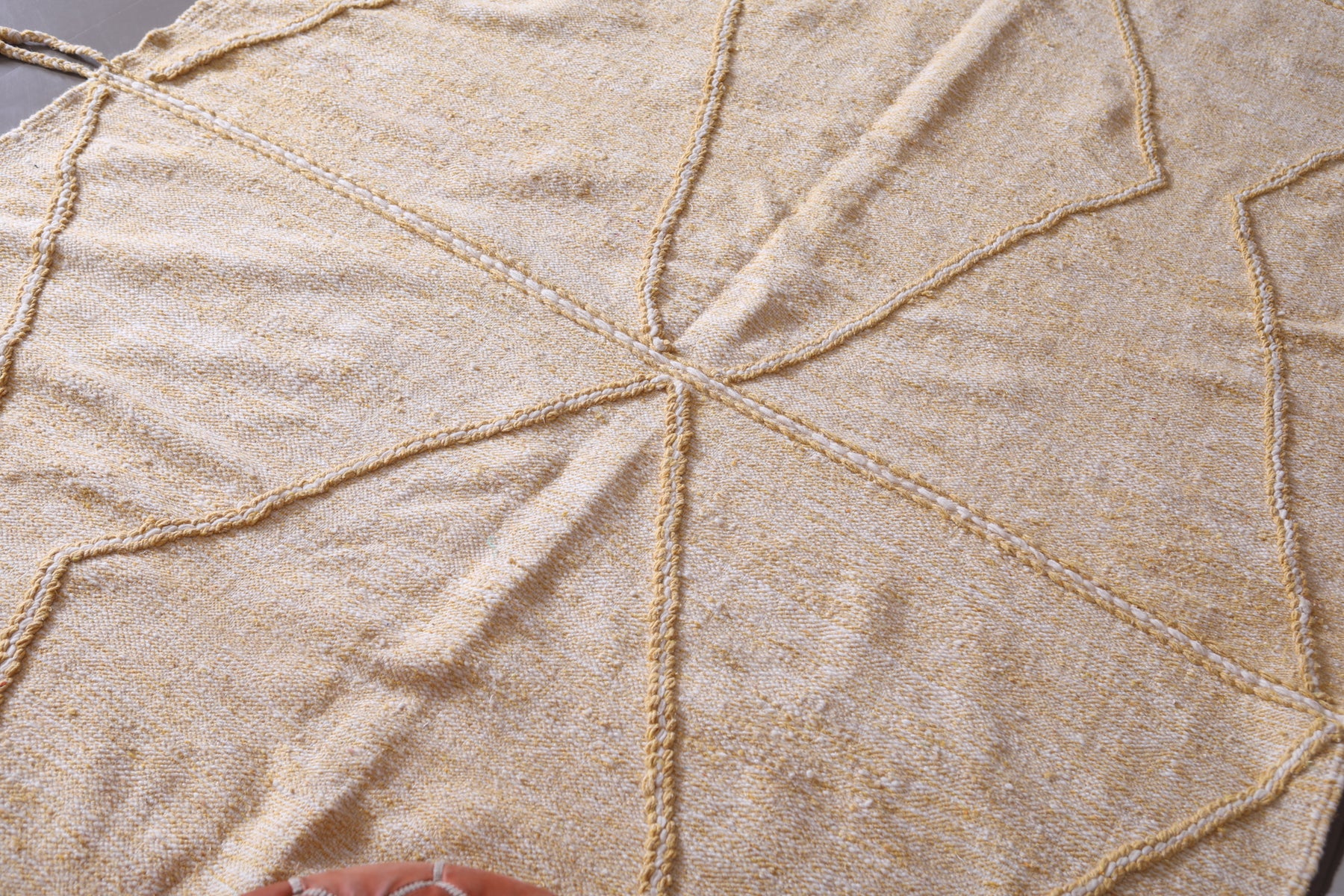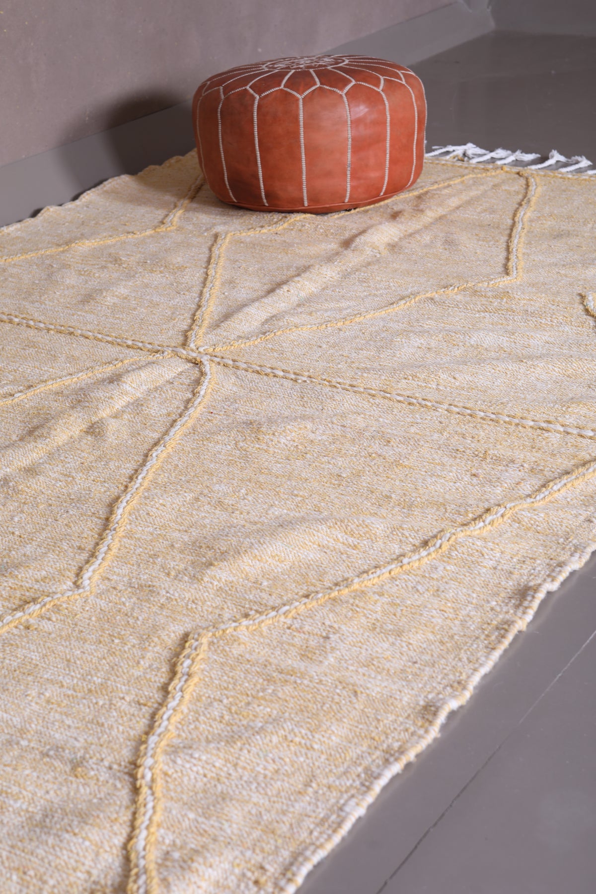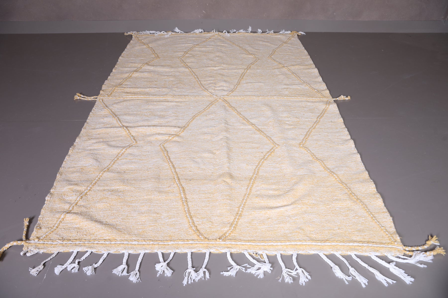 This 6 x 9.8 feet Moroccan Berber Kilim rug showcases a subtle geometric design in warm earthy tones, blending traditional craftsmanship with timeless elegance. Handwoven from premium wool, it offers a durable yet soft texture, making it ideal for living rooms, bedrooms, or bohemian-inspired interiors.