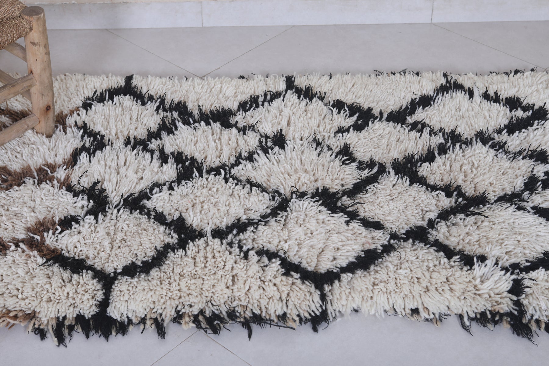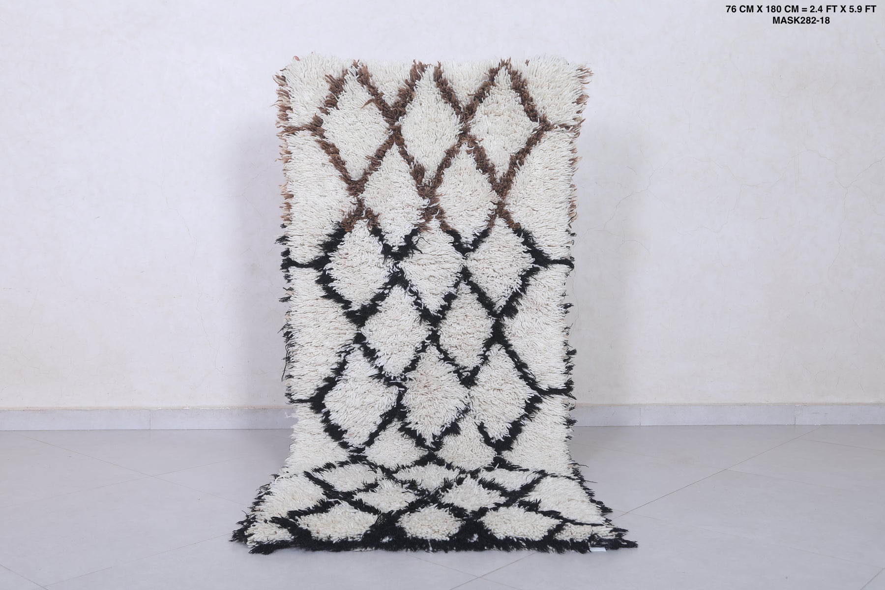 Add timeless charm to your home with this 2.4 x 5.9 feet Moroccan Berber rug, featuring a handwoven diamond lattice design in neutral black and brown tones. Made from soft wool, this rug offers warmth, texture, and a cozy aesthetic. Perfect for bedrooms, living rooms, or entryways, its versatile design complements both modern and traditional interiors. Handwoven by skilled artisans, this Berber rug embodies authentic Moroccan craftsmanship, ensuring durability and a one-of-a-kind addition to your décor.