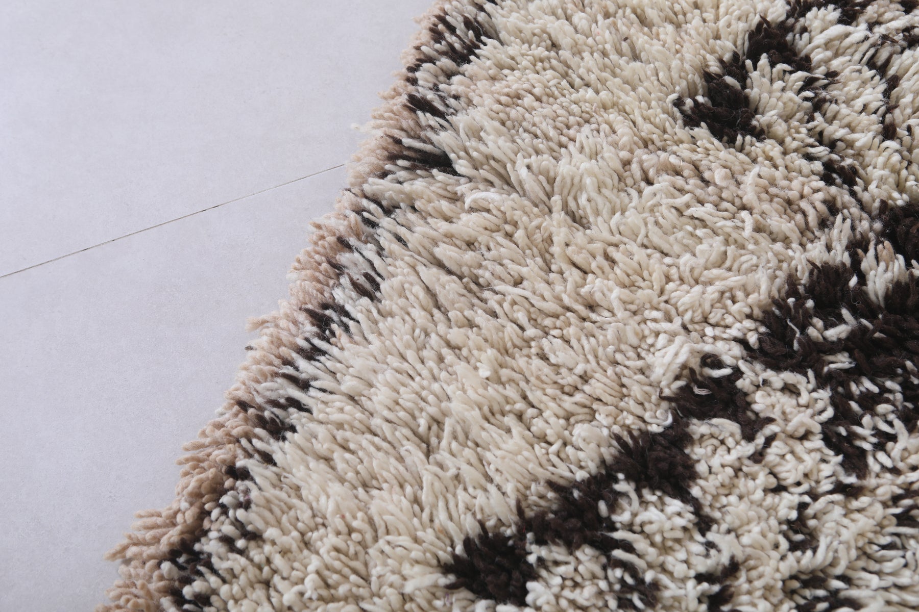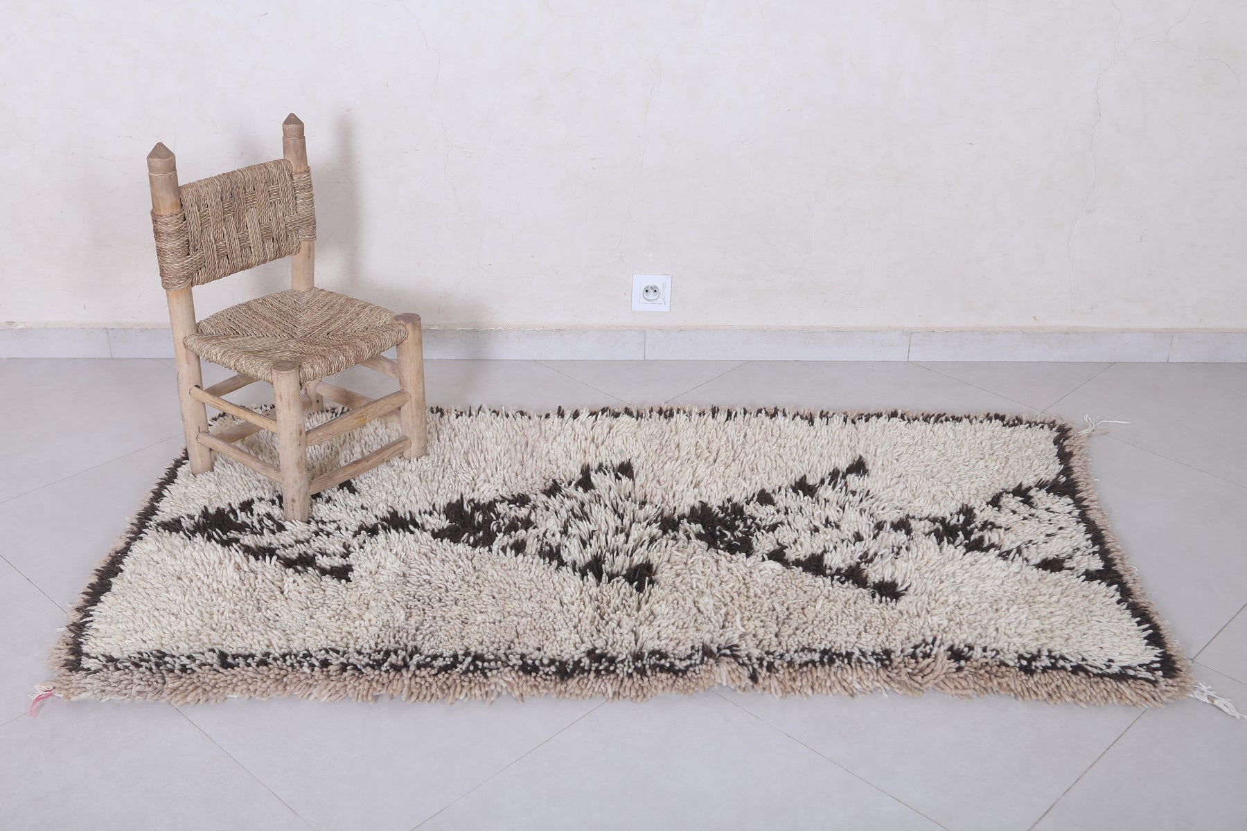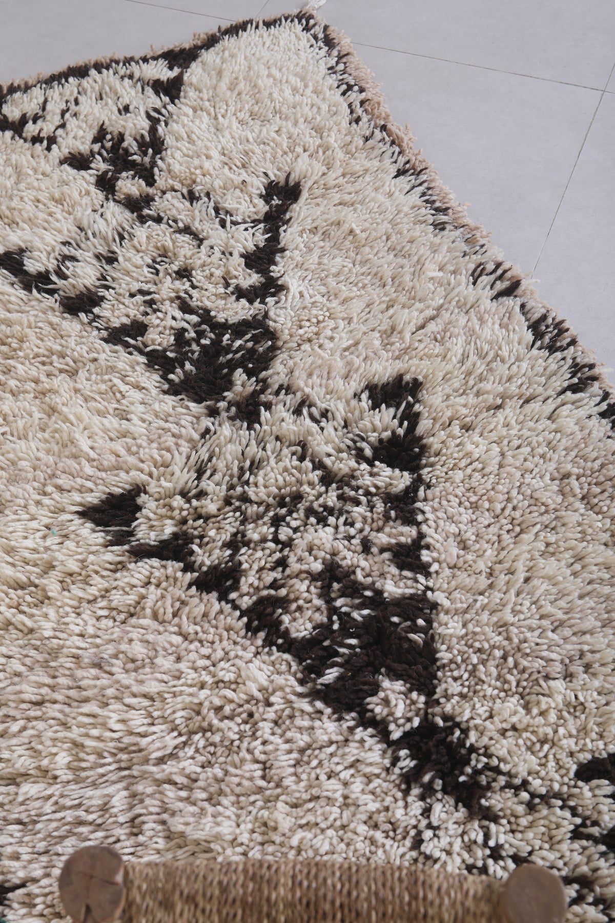Discover the timeless charm of this Moroccan Berber rug, measuring 2.8 x 5.7 feet. Handwoven by skilled artisans, this stunning piece features intricate tribal designs in deep black on a soft ivory background, blending tradition with modern appeal. Crafted from premium wool, it offers a plush texture, warmth, and durability, making it perfect for adding character to living rooms, bedrooms, or cozy reading spaces.