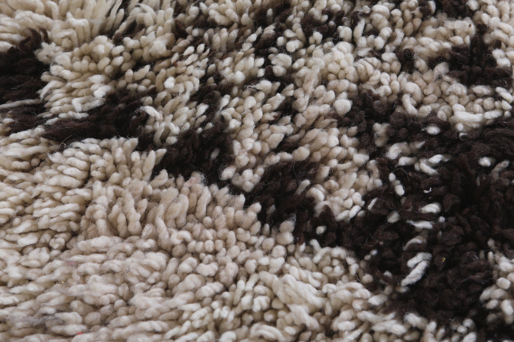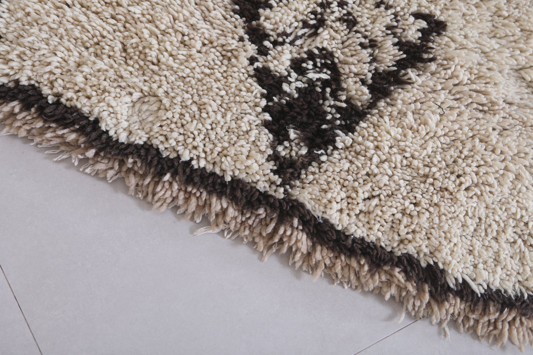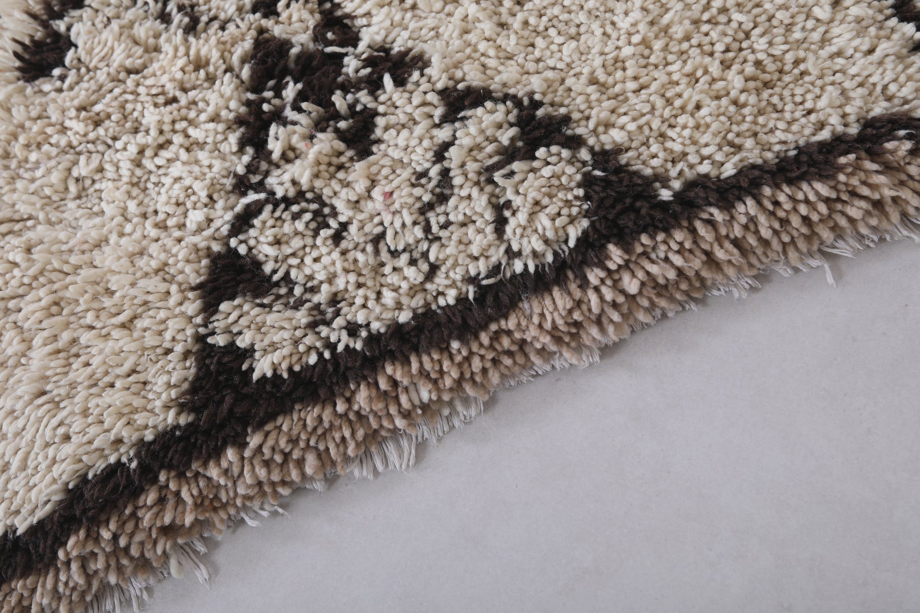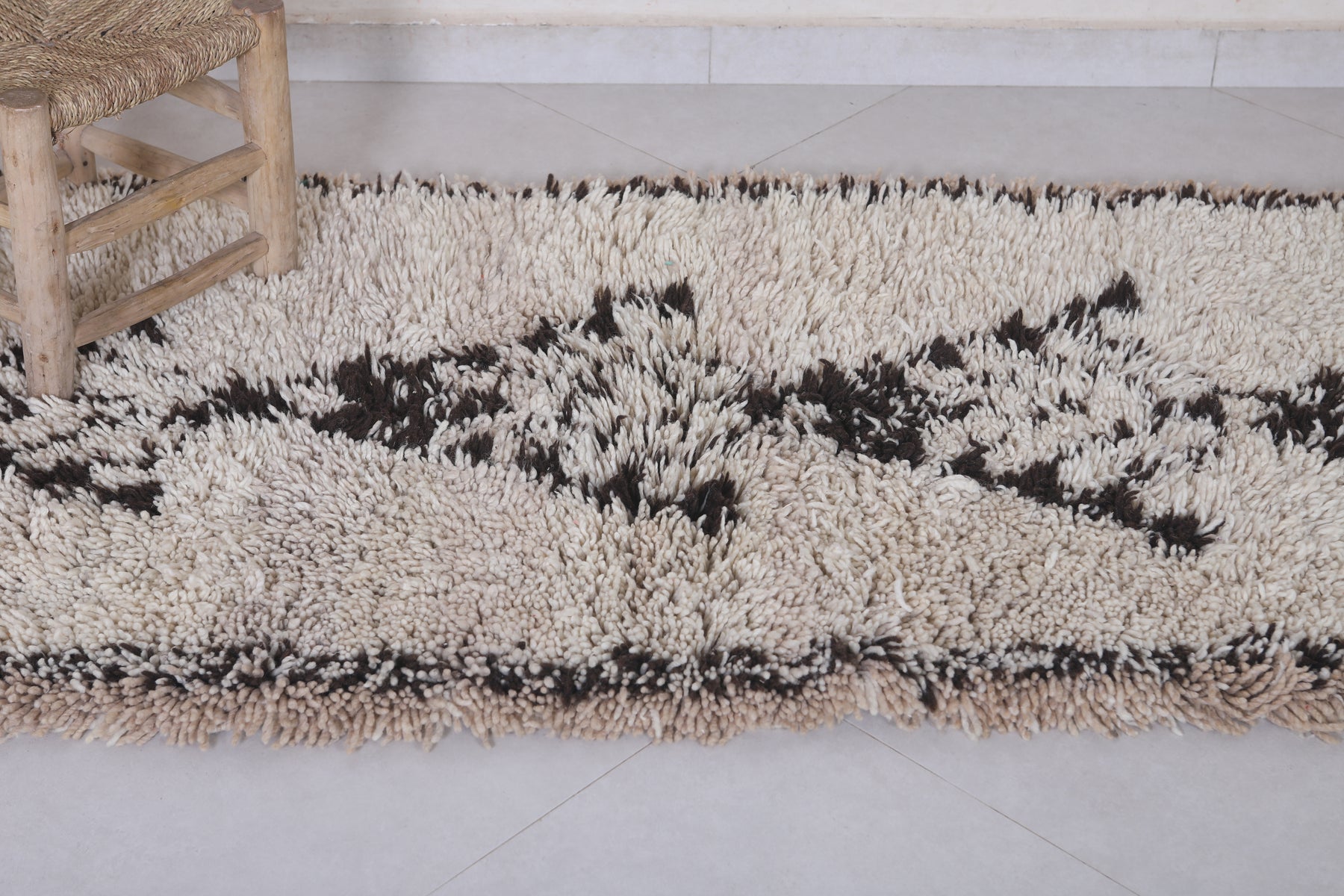 Discover the timeless charm of this Moroccan Berber rug, measuring 2.8 x 5.7 feet. Handwoven by skilled artisans, this stunning piece features intricate tribal designs in deep black on a soft ivory background, blending tradition with modern appeal. Crafted from premium wool, it offers a plush texture, warmth, and durability, making it perfect for adding character to living rooms, bedrooms, or cozy reading spaces.