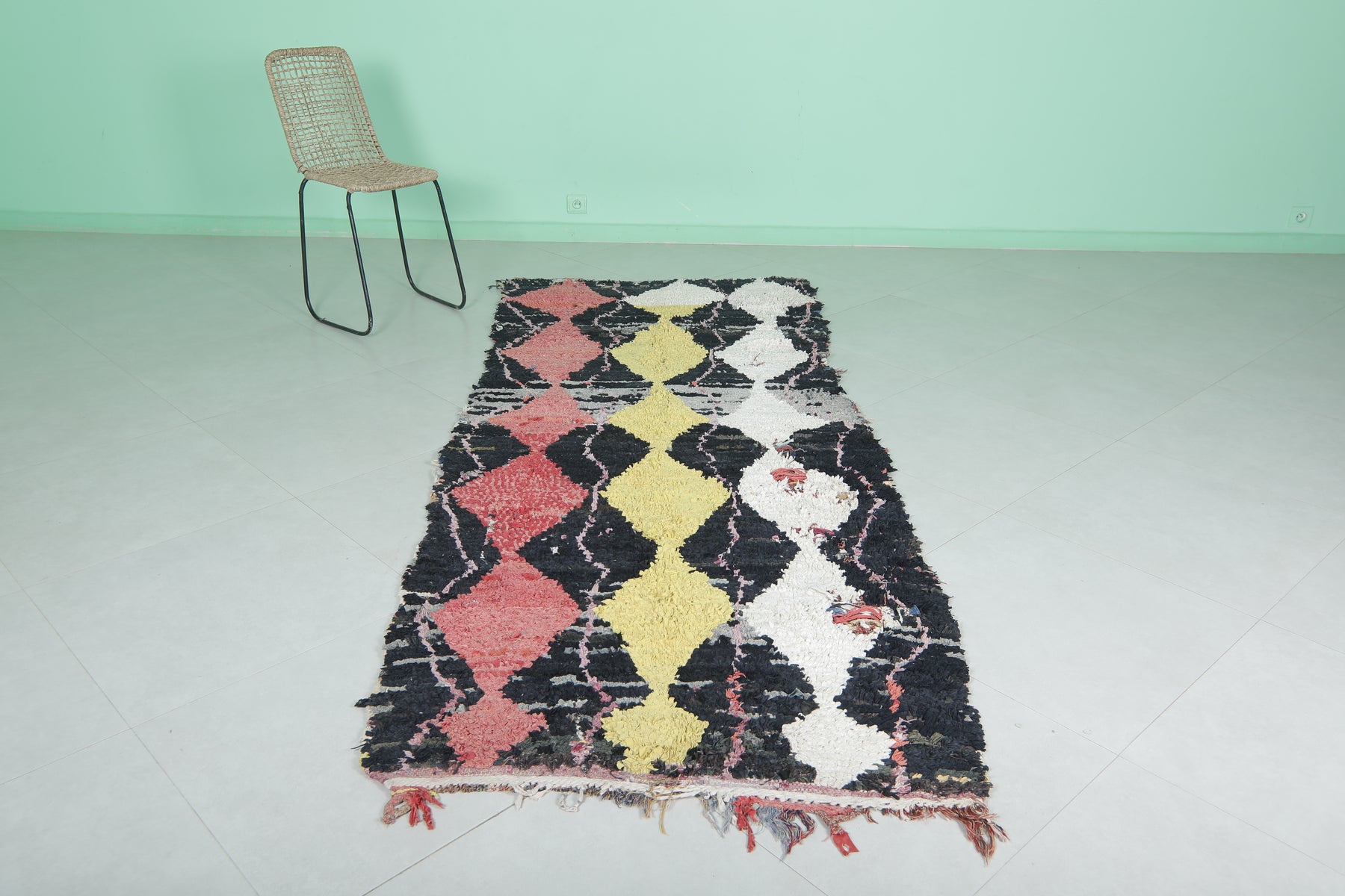 Midnight Mosaic Moroccan Rug – 3.9 ft x 7.1 ft - Boucherouite Rugs