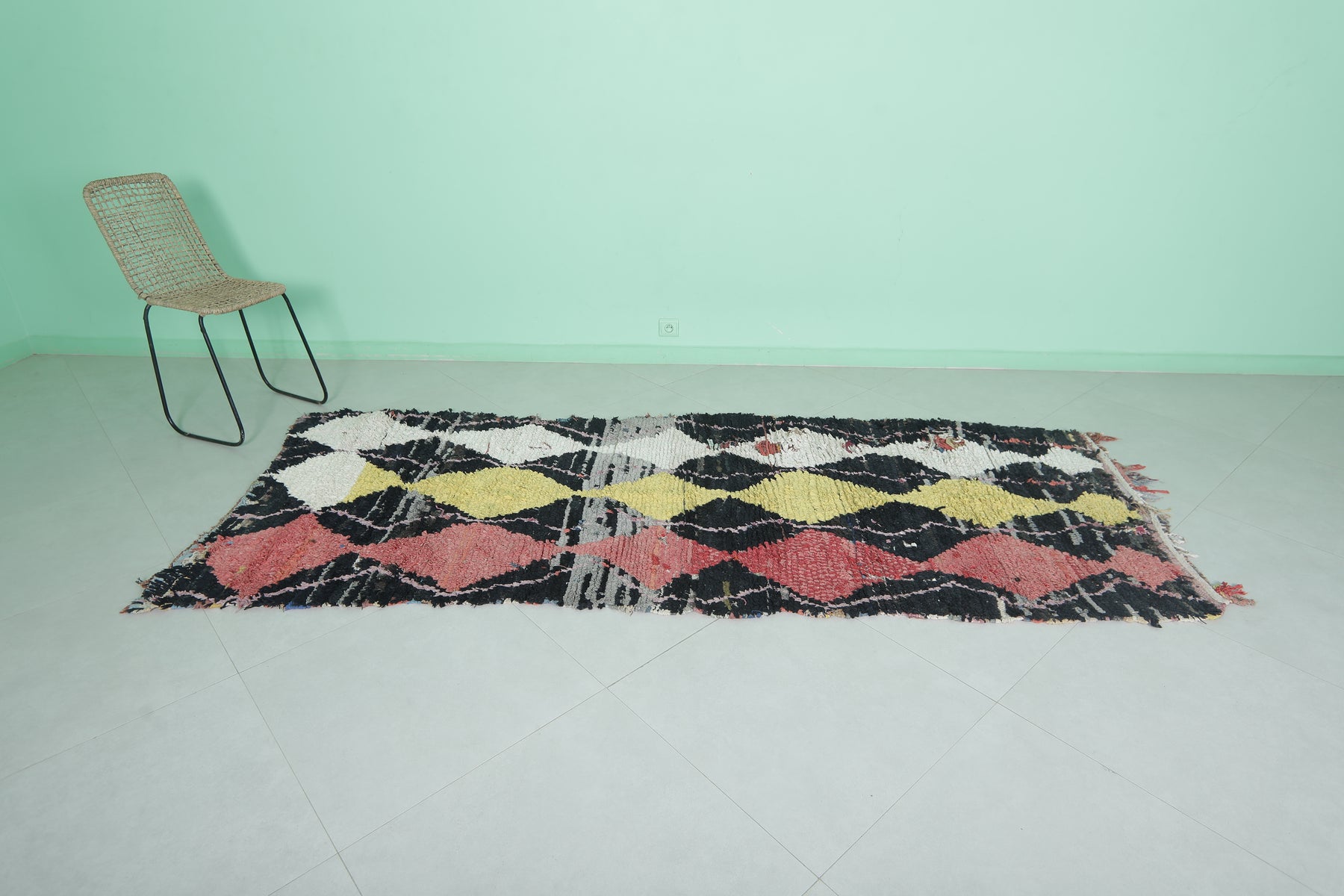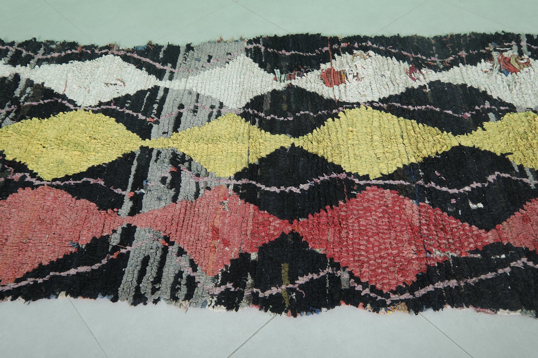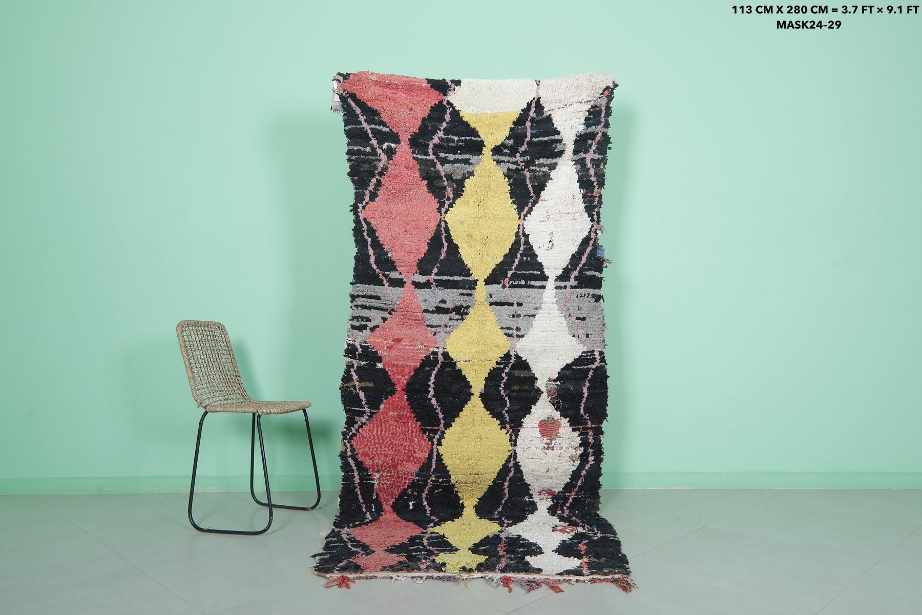 Moroccan Berber Rug 3.7 x 9.1 Feet - Vibrant Handwoven Art - Boucherouite Rugs
