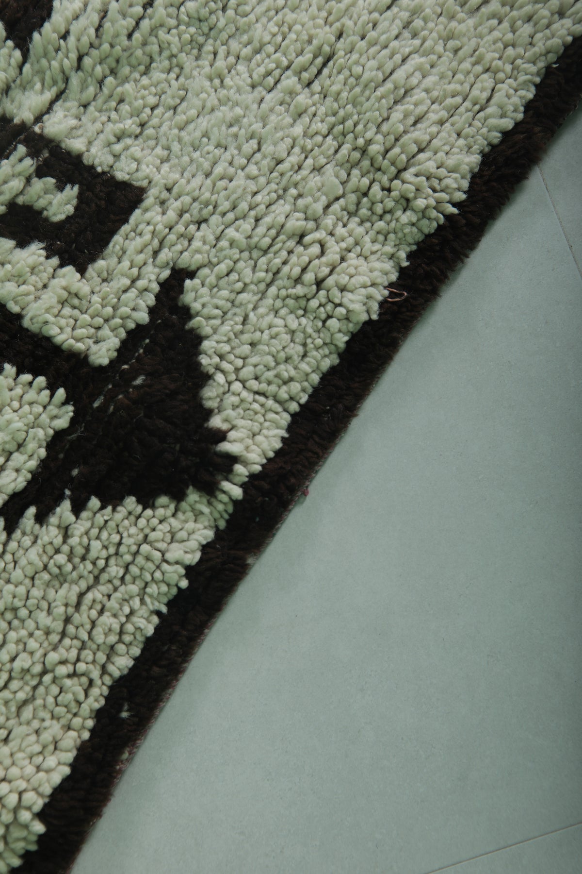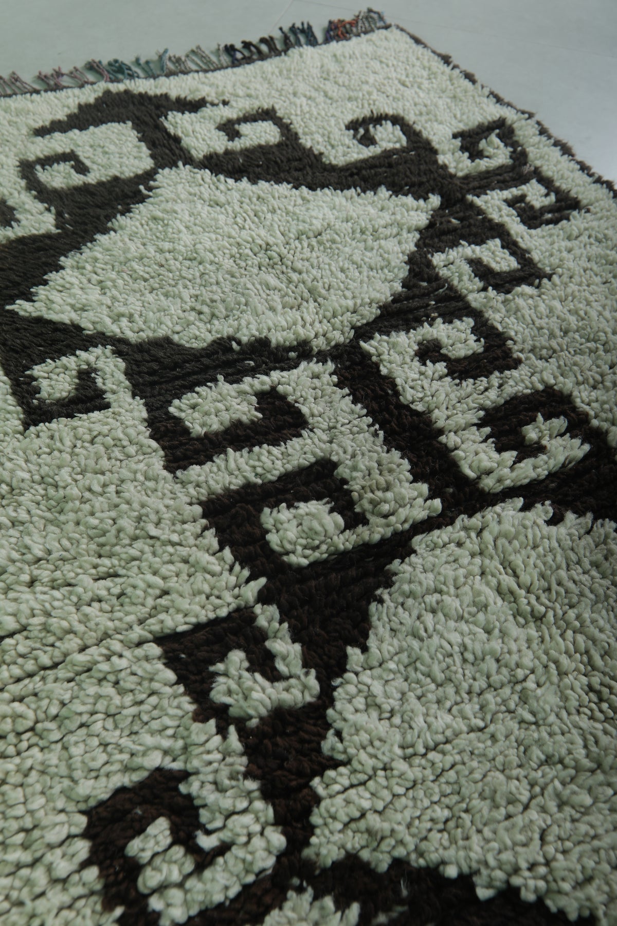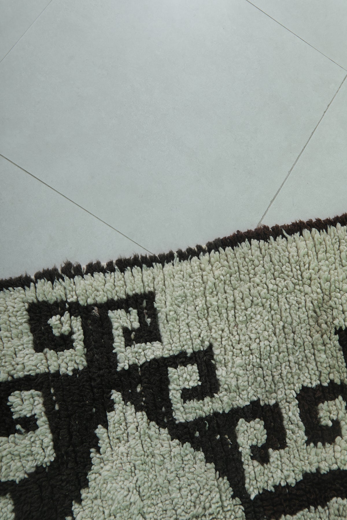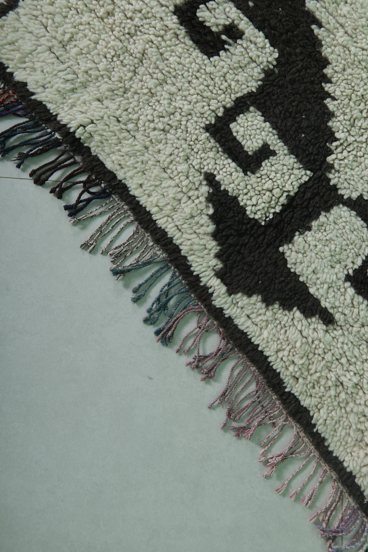 Add warmth and charm to your space with this Moroccan Berber rug, measuring 3.2 x 5.3 feet. Handwoven by skilled artisans, this striking piece features a bold black and cream geometric design, blending cultural heritage with modern sophistication. Crafted from premium wool, it offers durability, plush comfort, and a luxurious feel. Perfect for living rooms, bedrooms, or office decor, bringing timeless elegance to any interior.