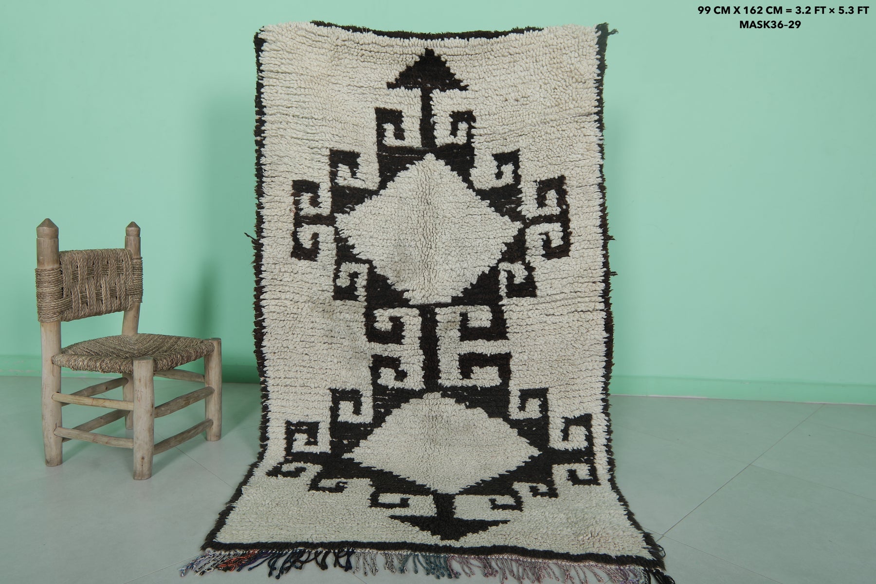 Moroccan Berber Rug - Black & Cream Geometric Design | 3.2 X 5.3 Feet