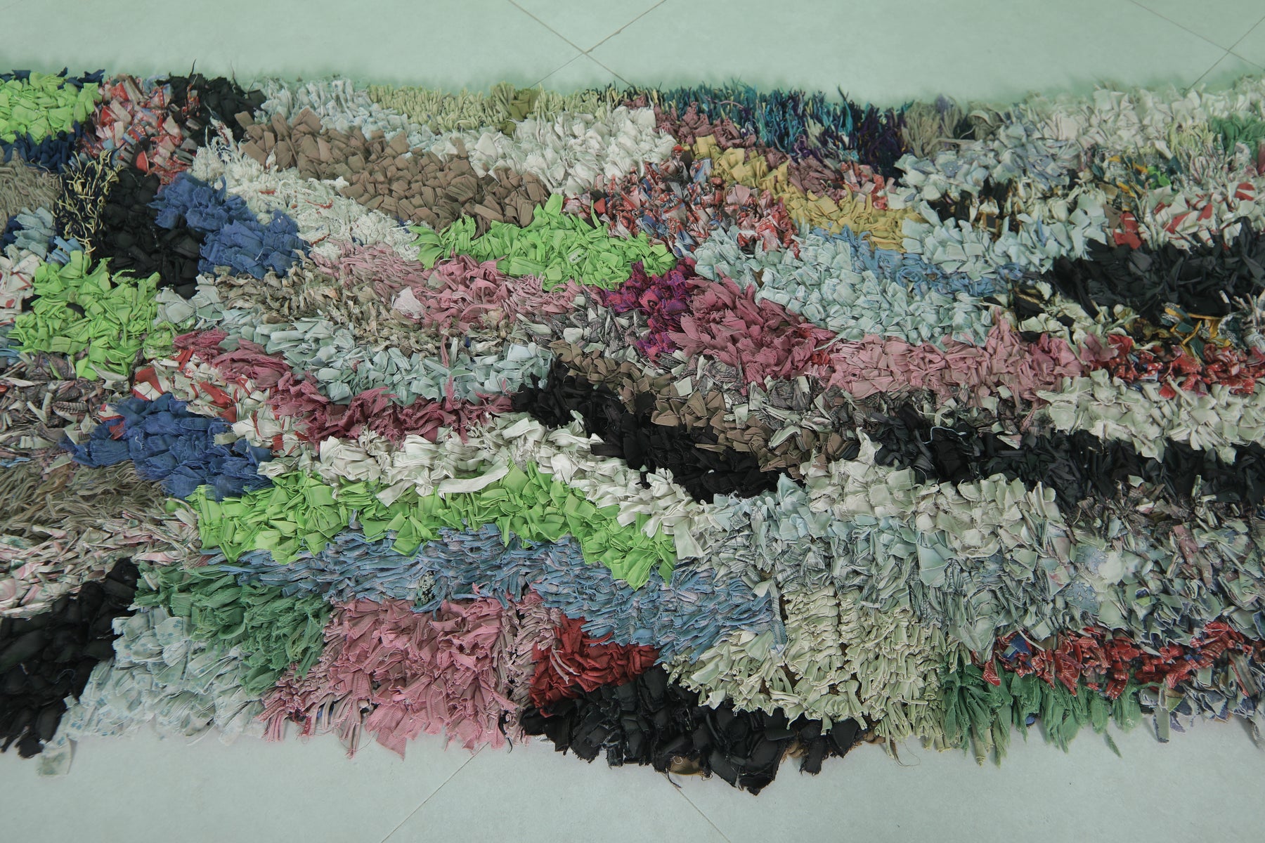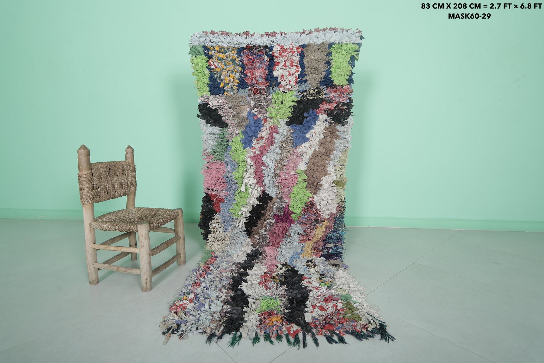 Add a touch of artistry to your home with this Moroccan Berber rug, measuring 2.7 x 6.8 feet. Handwoven by skilled artisans, this vibrant piece features a multicolor pattern crafted from premium materials, blending traditional craftsmanship with a contemporary twist. Its unique texture and striking diagonal motifs make it an excellent choice for hallways, living rooms, or as a statement decor piece.
