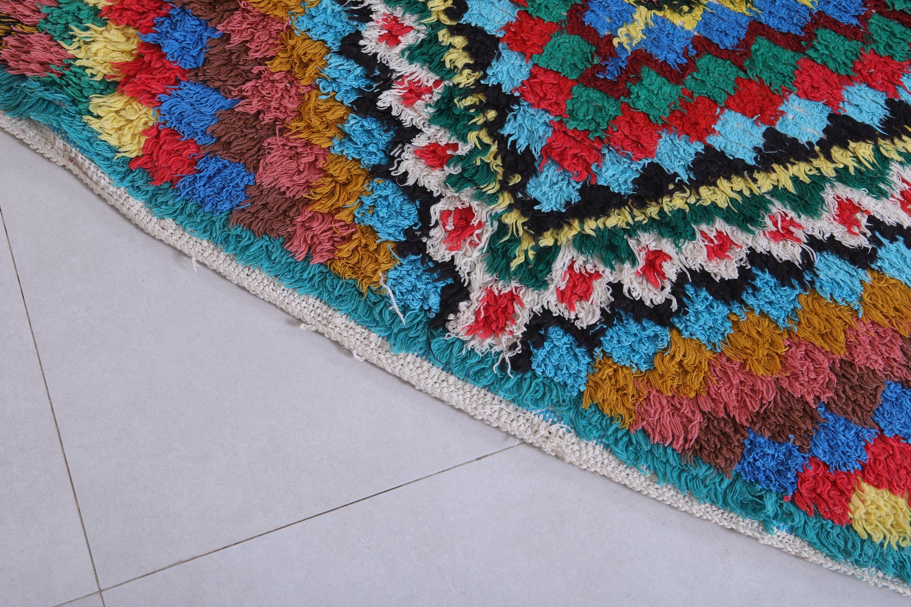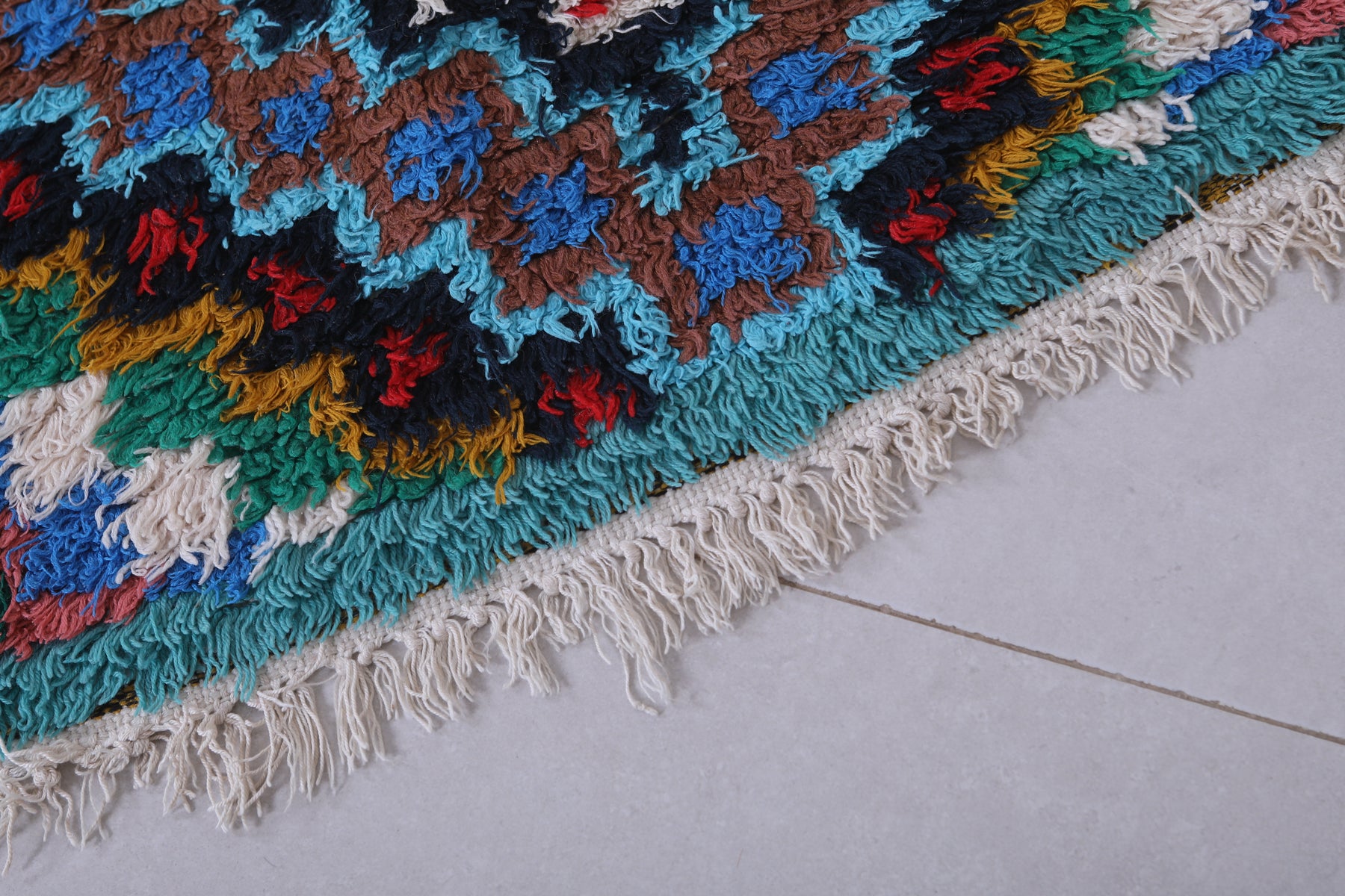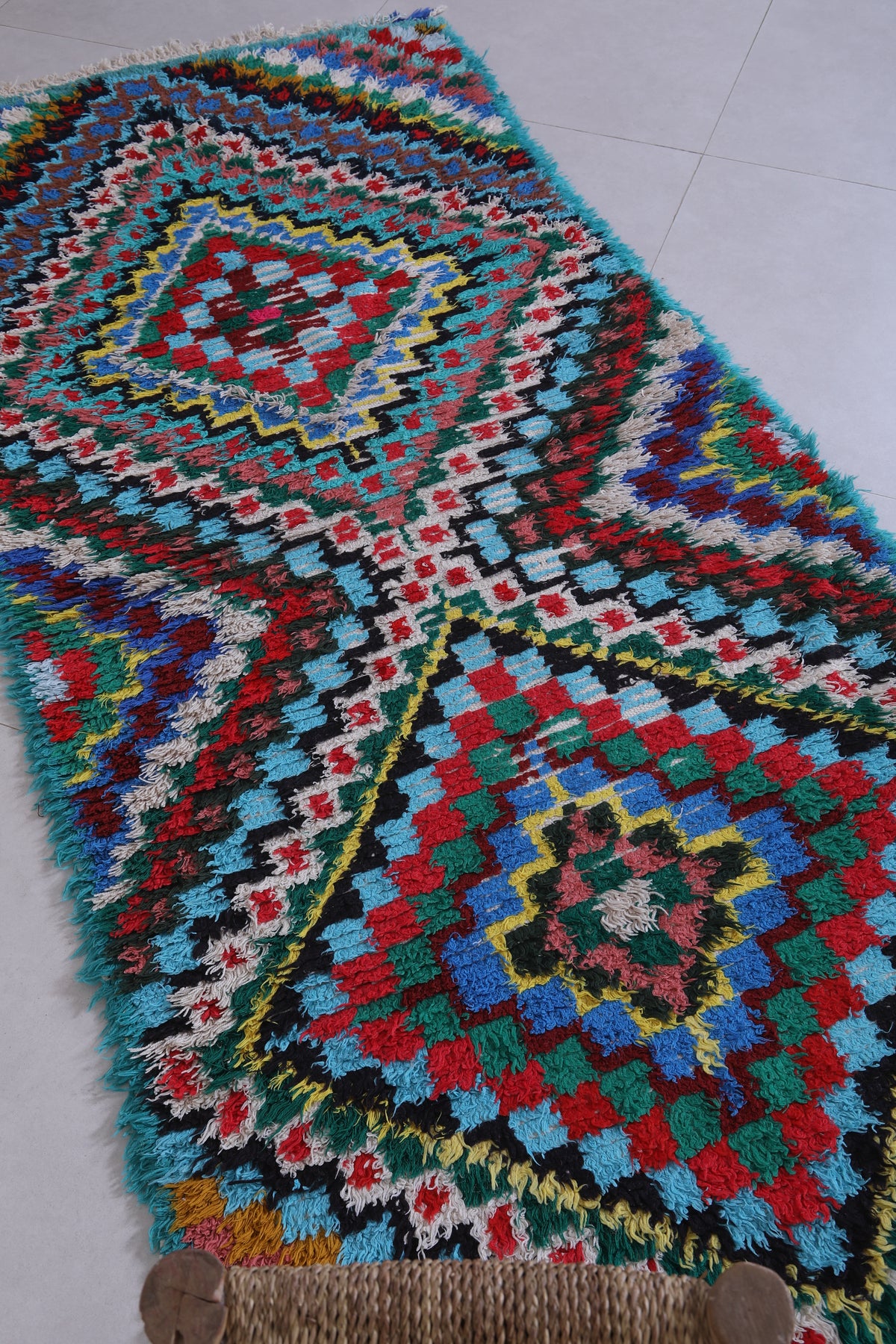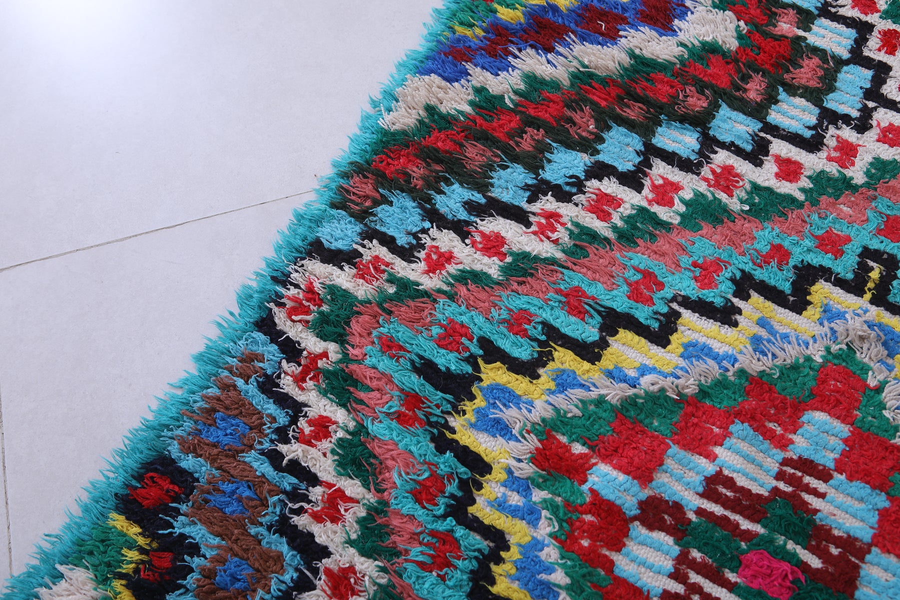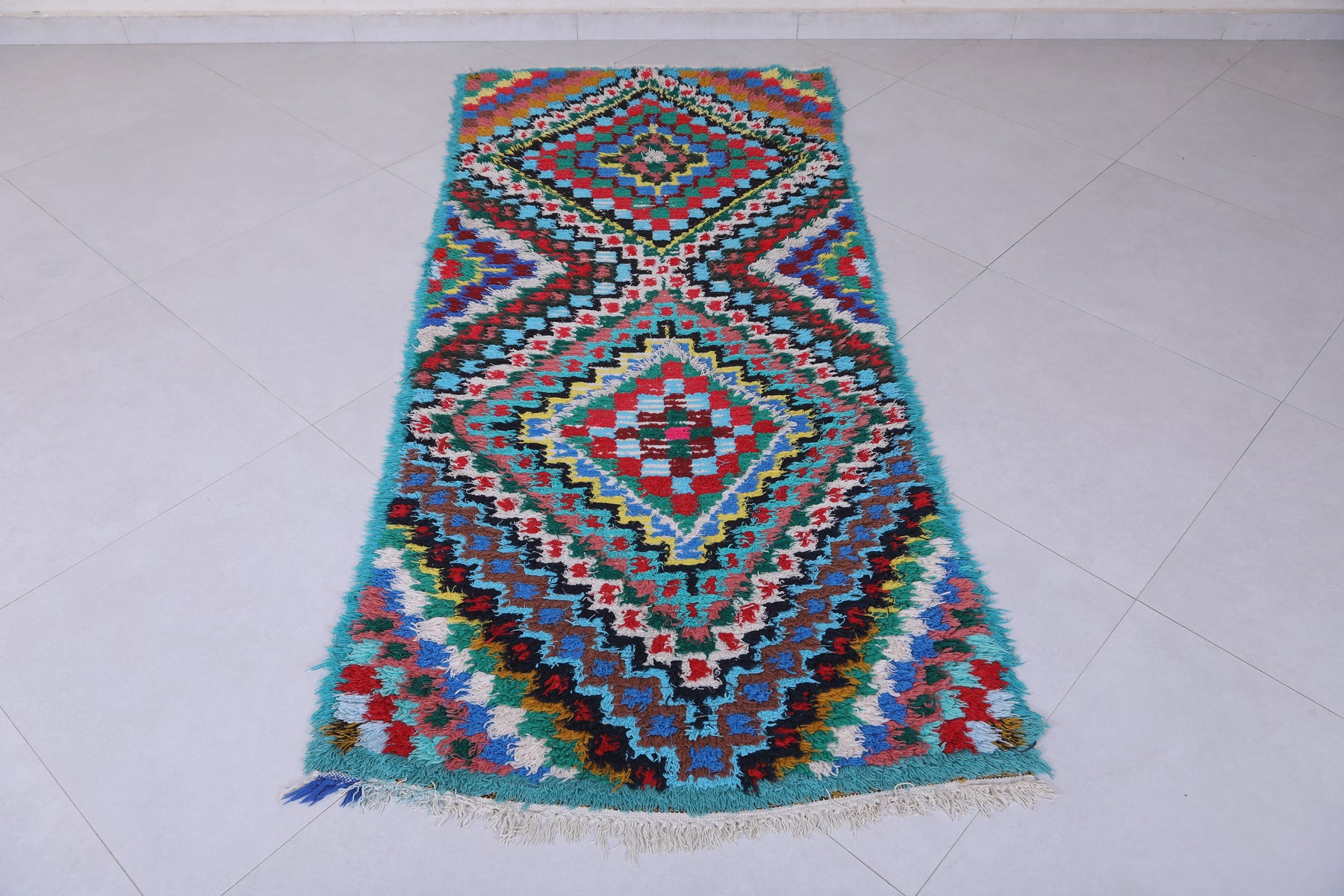 Add vibrant charm to your home with this handcrafted Moroccan Berber rug, featuring a striking multicolor geometric design. At 2.8 x 6.8 ft, this piece blends vivid hues of turquoise, red, green, and yellow, forming intricate diamond and triangle patterns that showcase Moroccan artistry. Perfect for hallways, living spaces, or bedrooms, this rug provides a pop of color while preserving the authenticity of traditional craftsmanship. Elevate your interior with this unique and colorful statement rug.