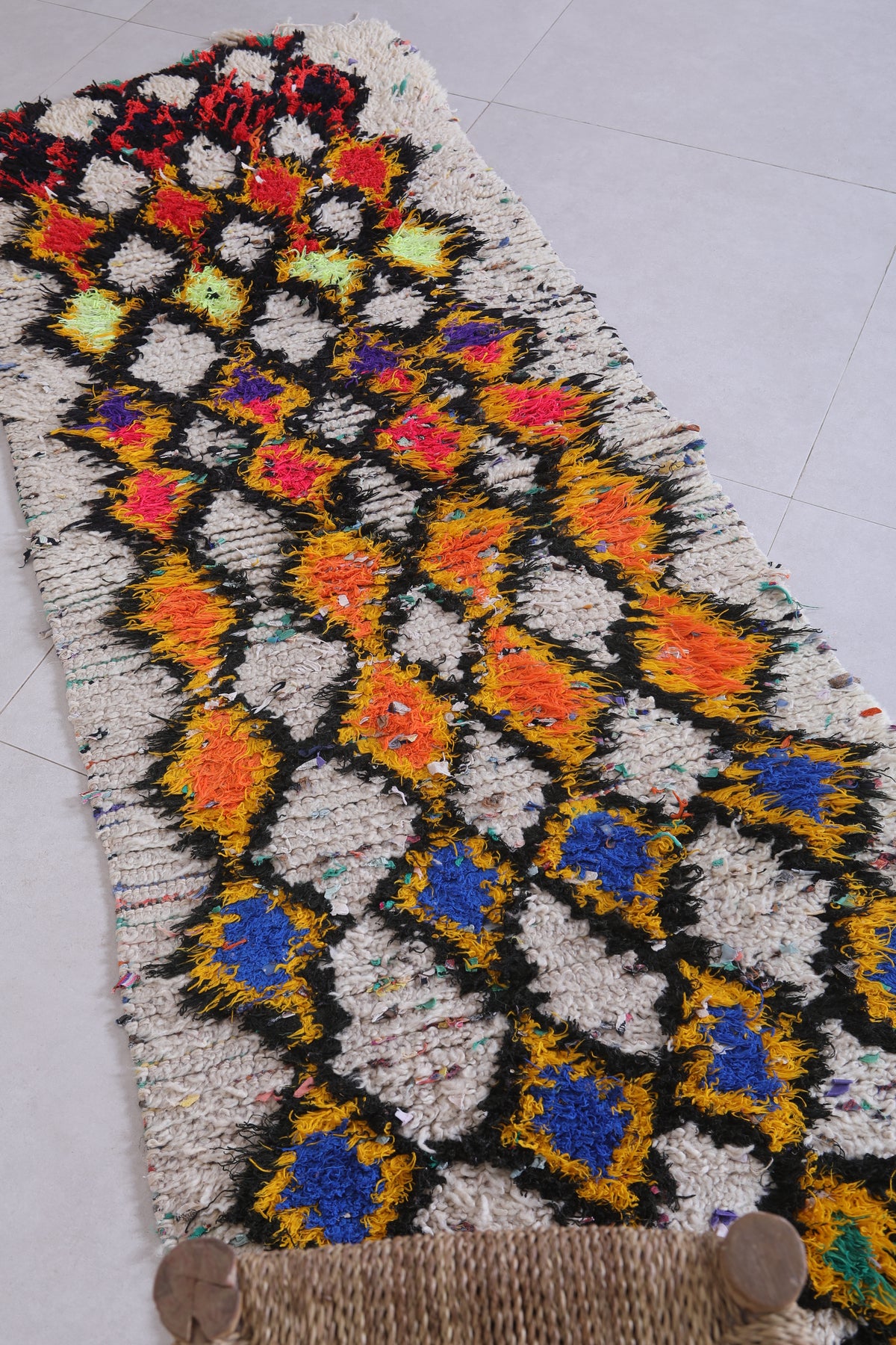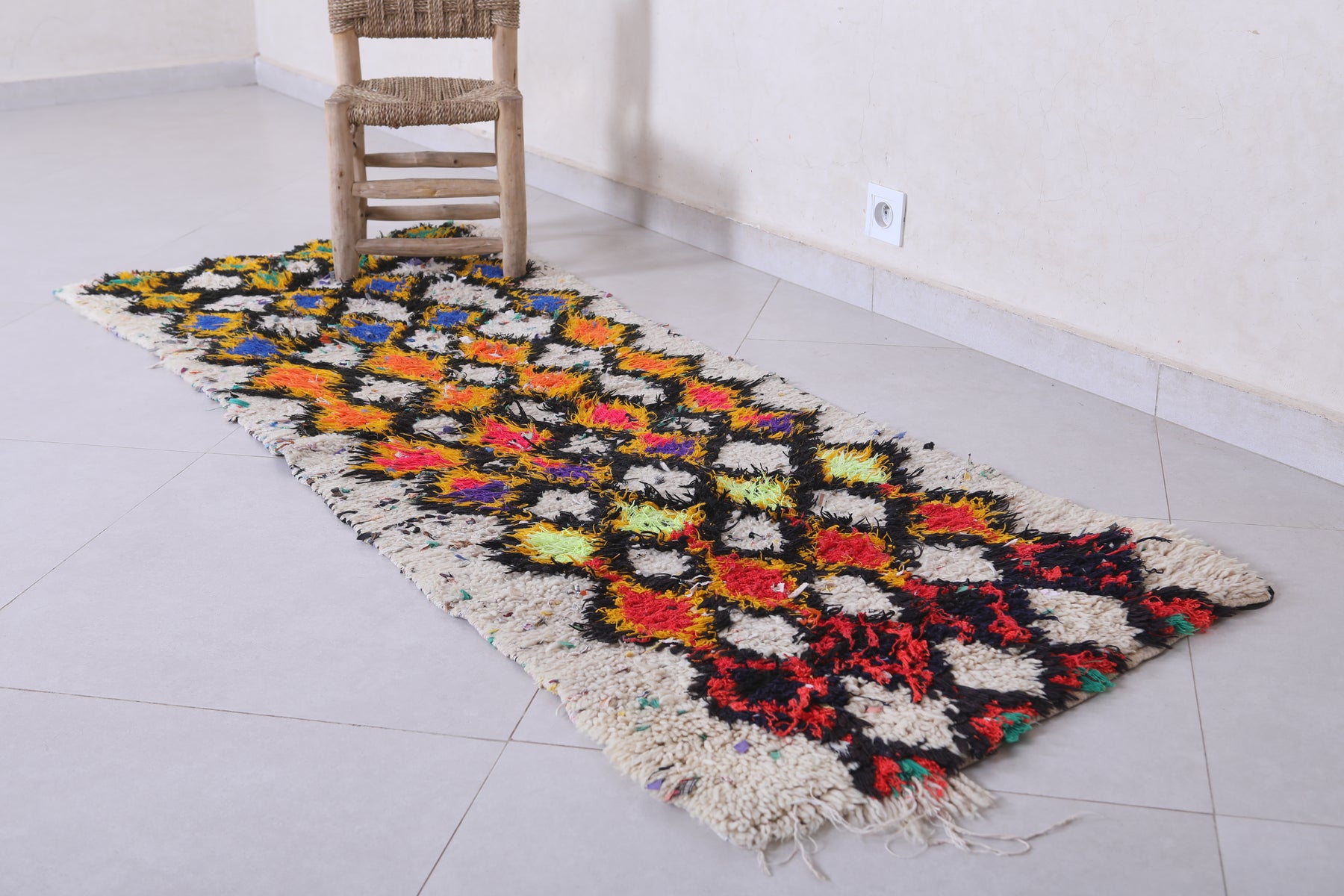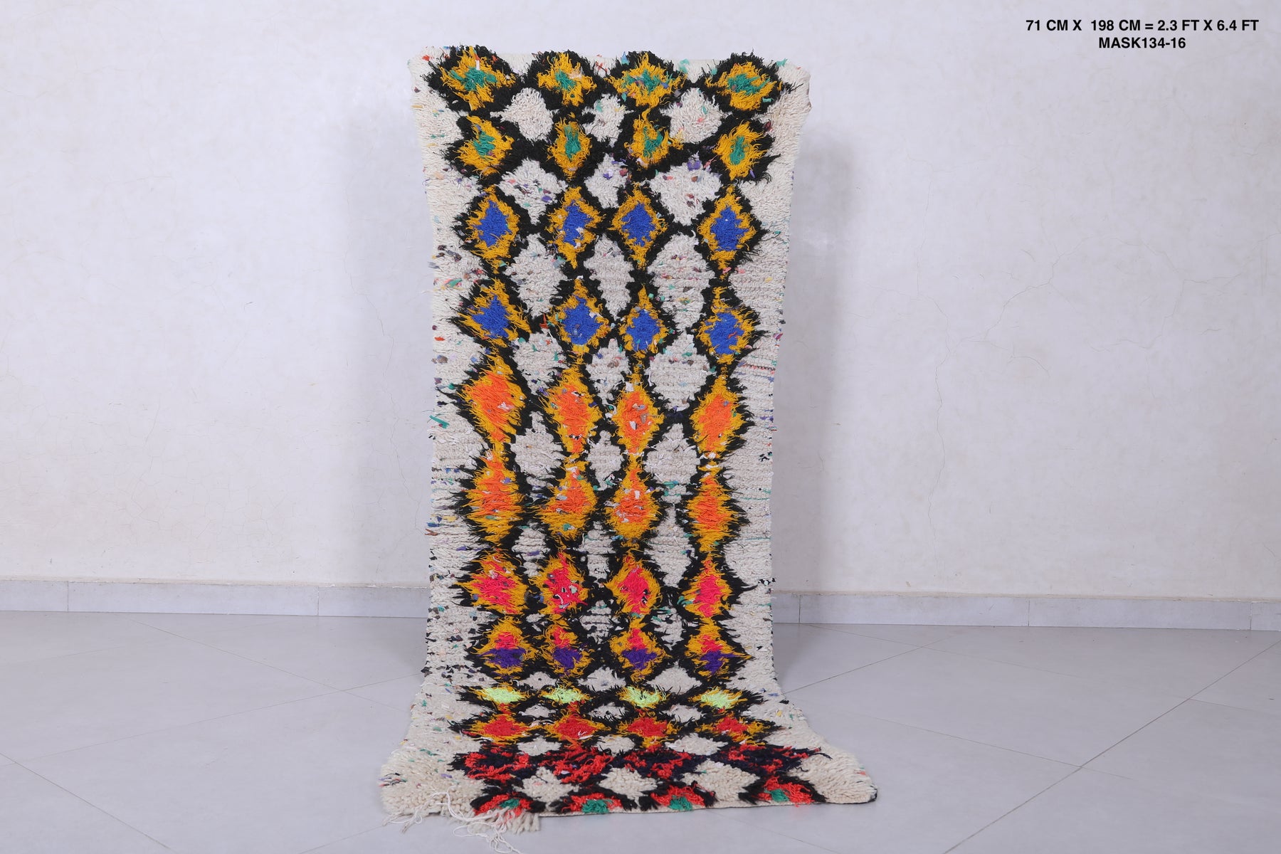 Moroccan Berber Rug – Vibrant Multicolor Diamond Design 2.3 x 6.4 ft - Boucherouite Rugs