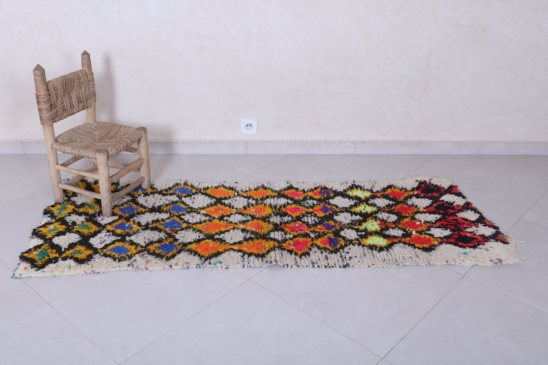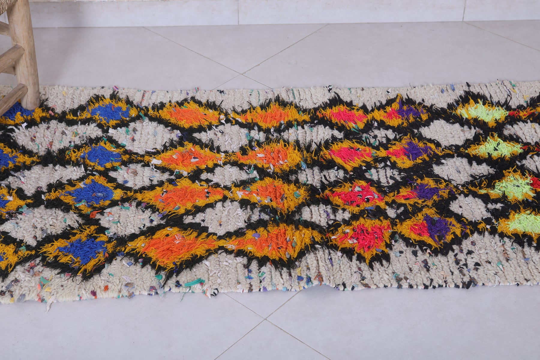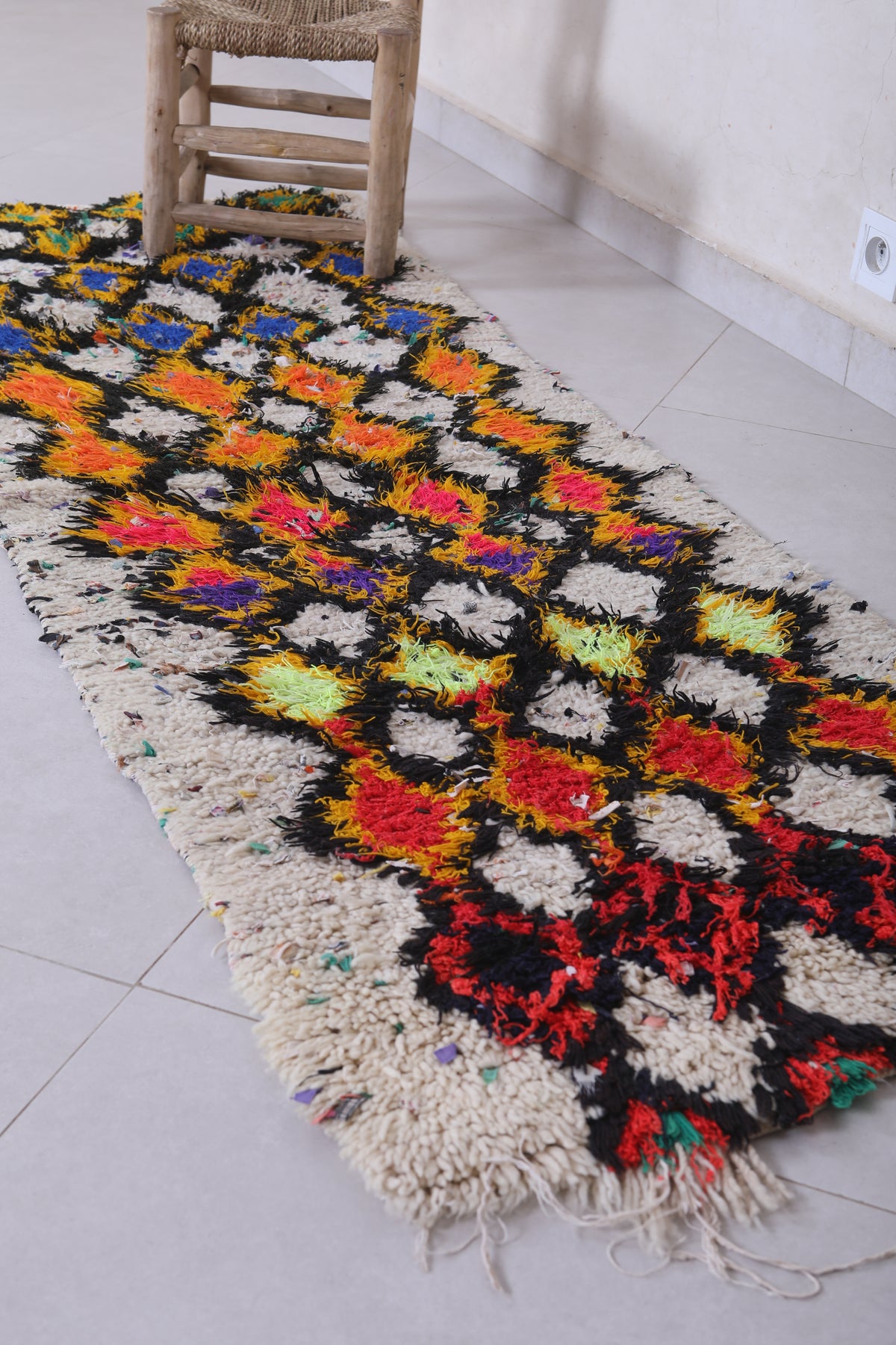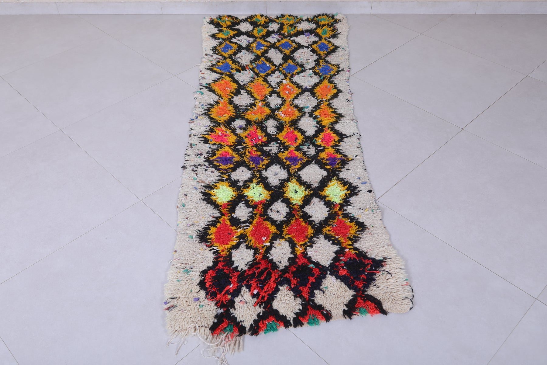 Moroccan Berber Rug – Vibrant Multicolor Diamond Design 2.3 x 6.4 ft - Boucherouite Rugs