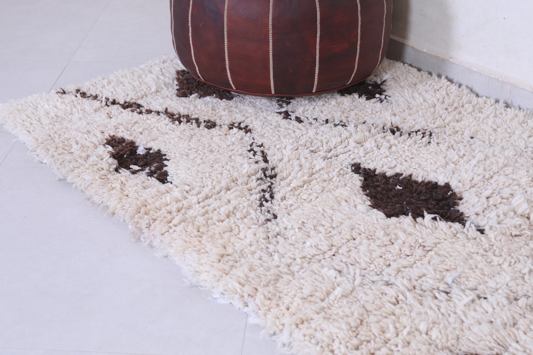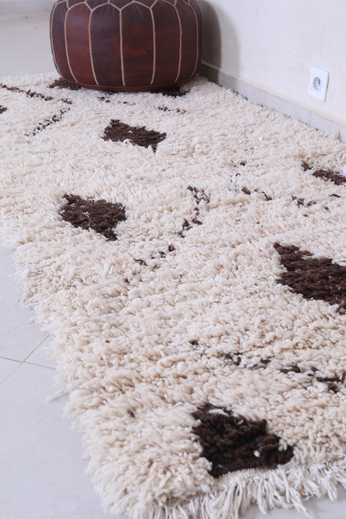 Handmade pink and white wool Moroccan rug - 3.9 ft x 5.6 ft