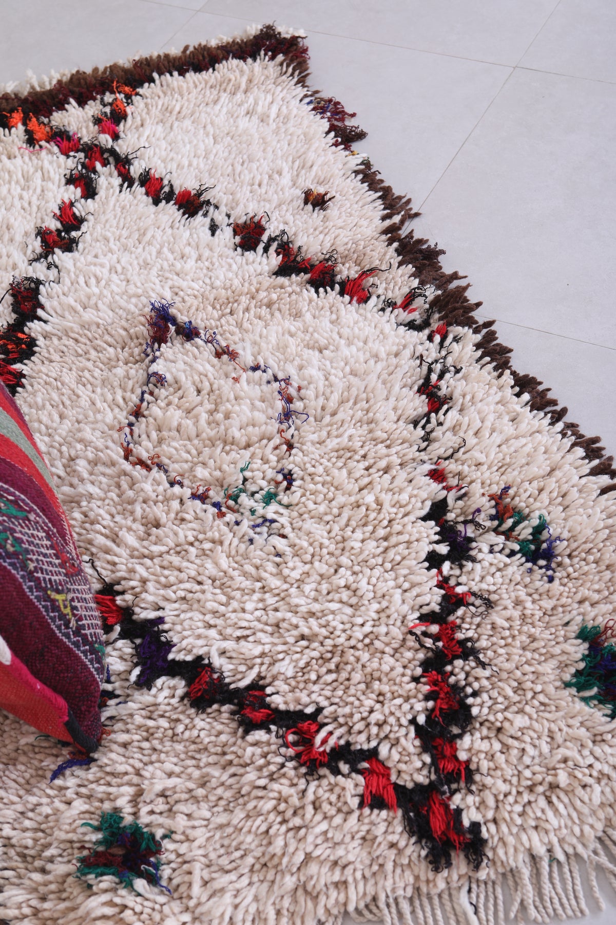 Handmade pink and white wool Moroccan rug - 3.9 ft x 5.6 ft
