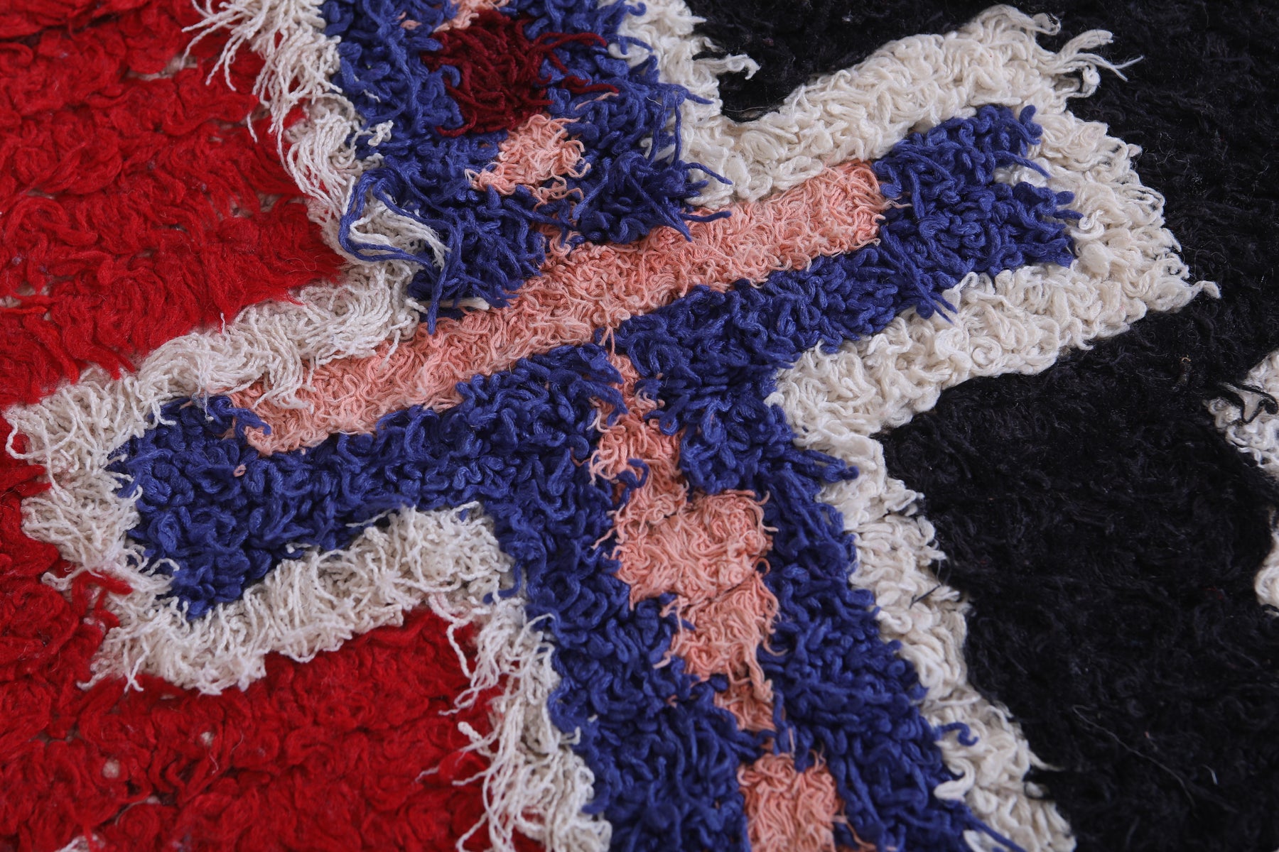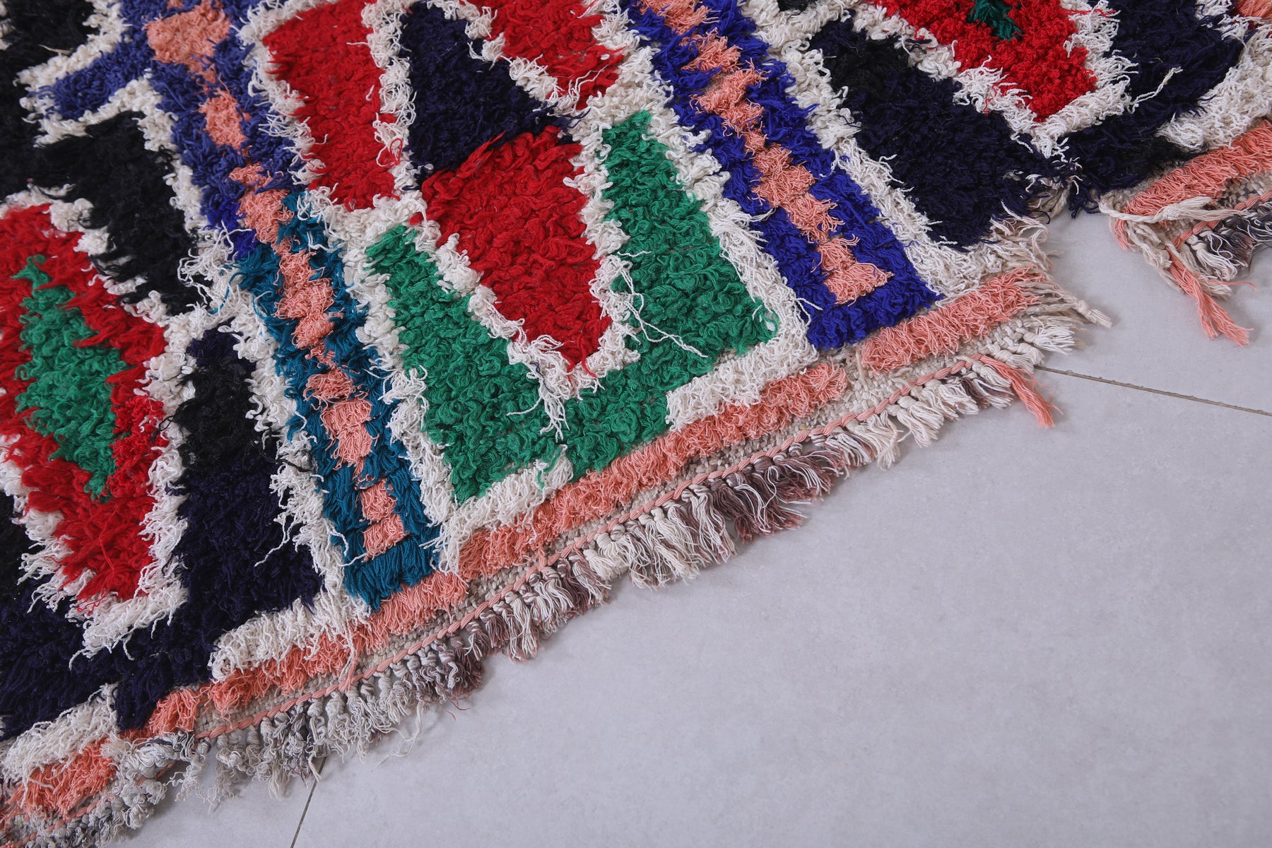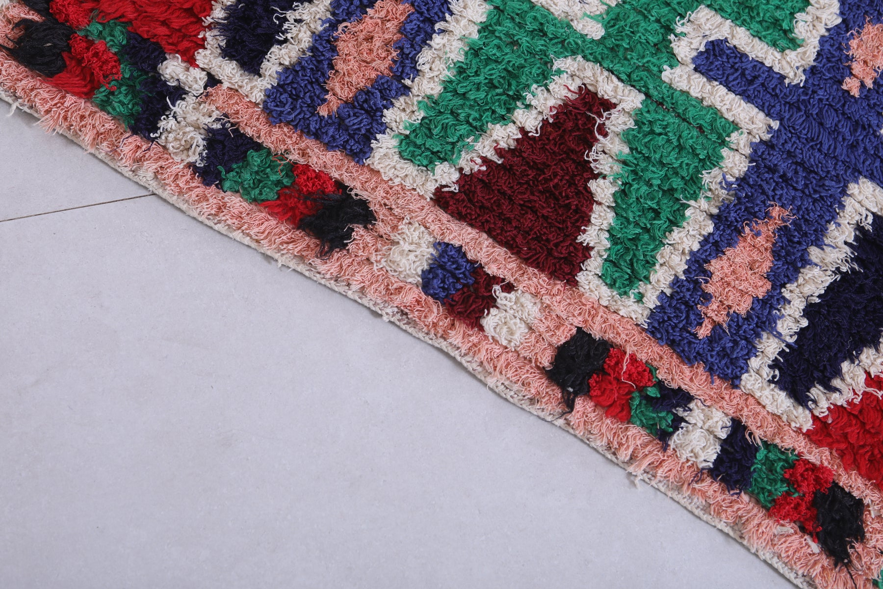Elevate your interior decor with this stunning Moroccan Berber Rug, measuring 3 x 7 feet. Featuring bold geometric patterns and a vibrant palette of red, green, blue, and black, this handcrafted masterpiece adds character and cultural charm to any space. Framed with soft pink and white accents, the intricate design blends traditional Moroccan artistry with modern aesthetics. Perfect for hallways, living areas, or rooms needing a pop of color, this rug ensures both beauty and longevity, making it a perfect investment for your home.